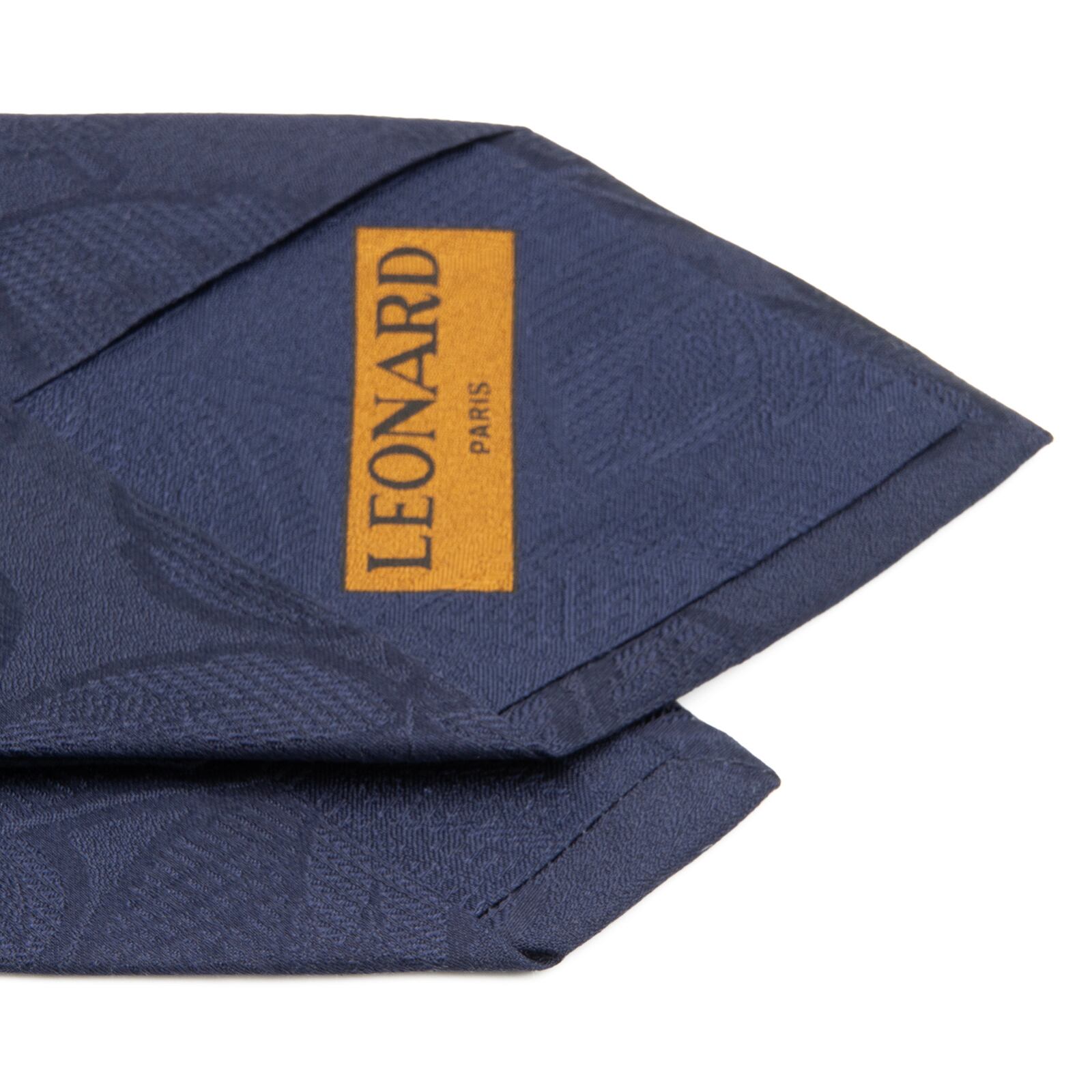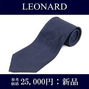 送料無料 レオナール ネクタイ レギュラータイ ジャガード 新品 シルク 青 ネイビーブルー 葉 リーフ シンプル ブランド イタリア製 N756