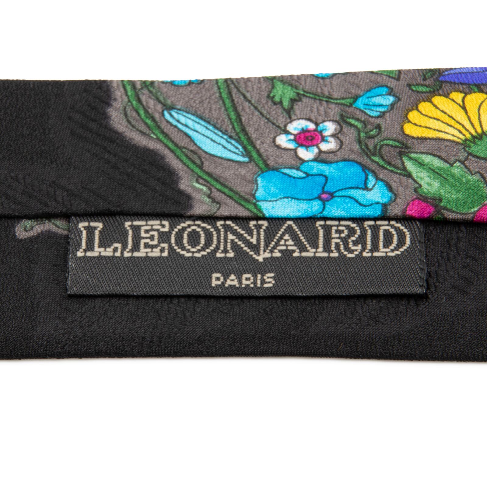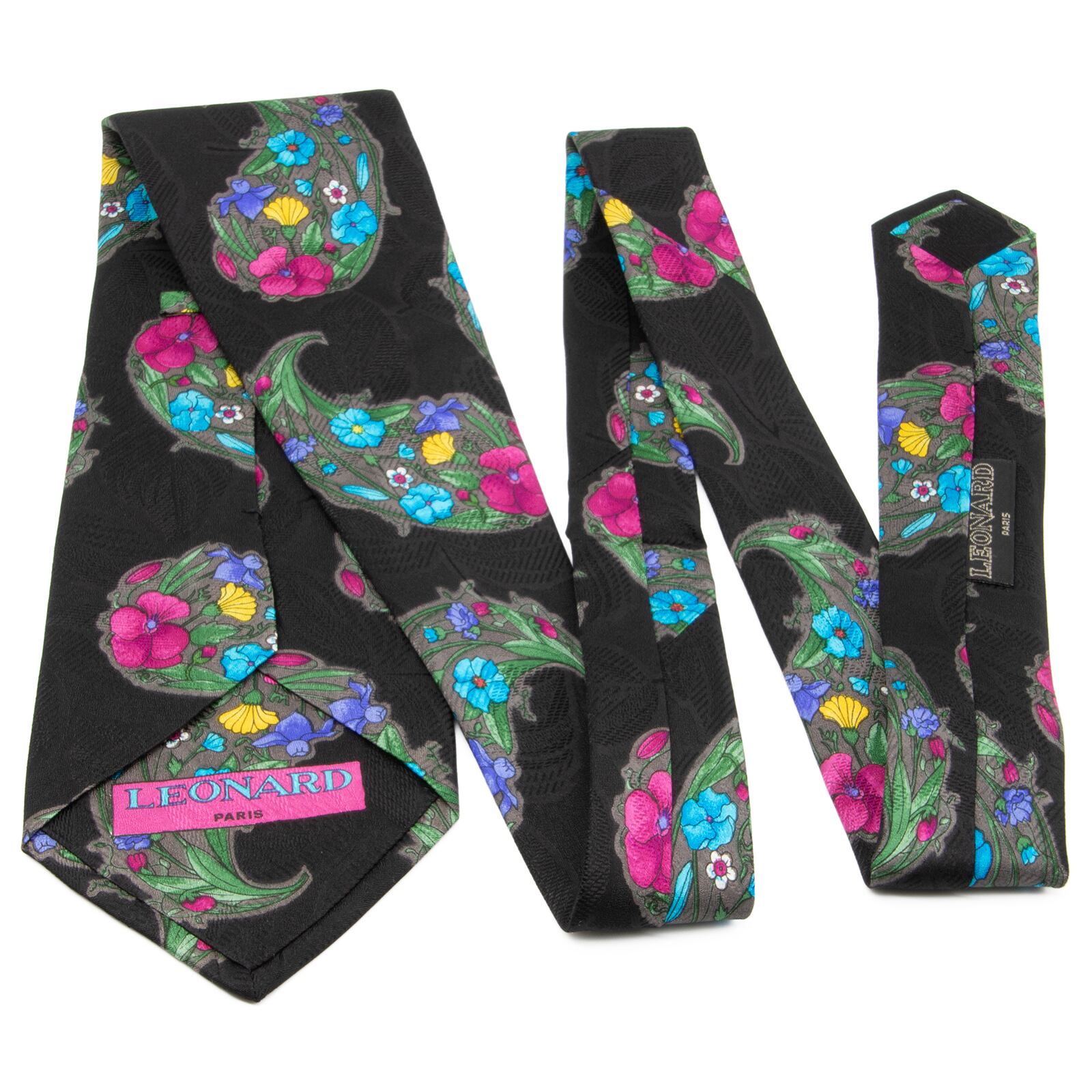 送料無料 レオナール ネクタイ レギュラータイ 新品 シルク 黒 グレー 水色 青紫色 緑 黄色 ペイズリー フラワー ブランド イタリア製 N841