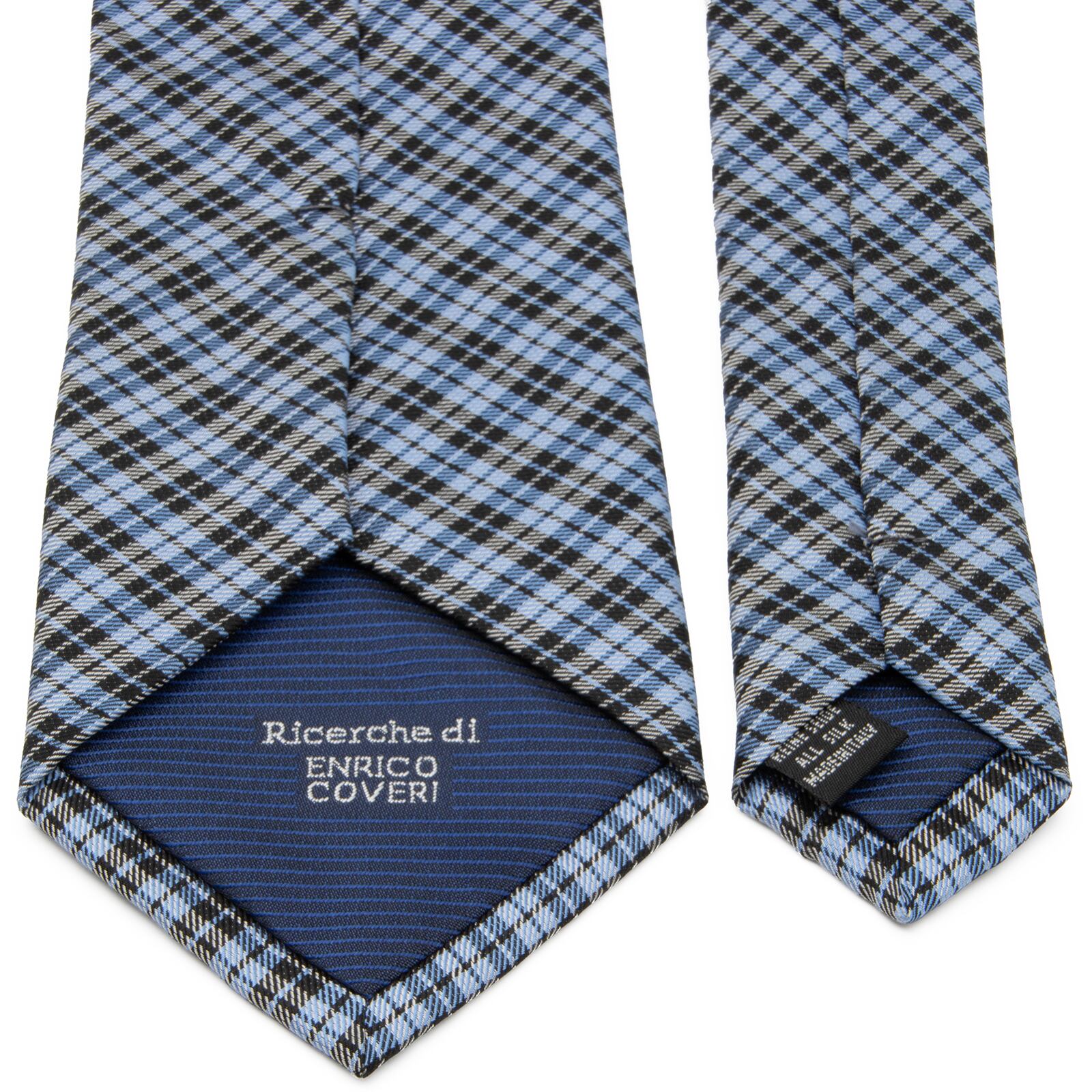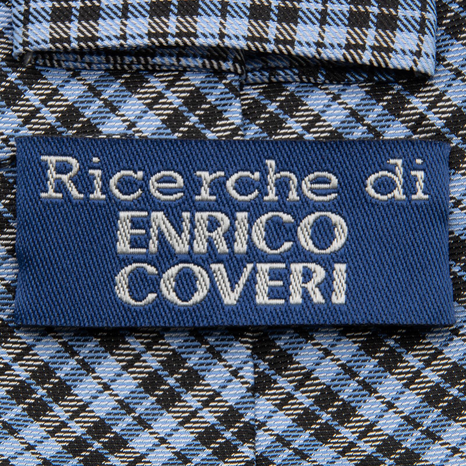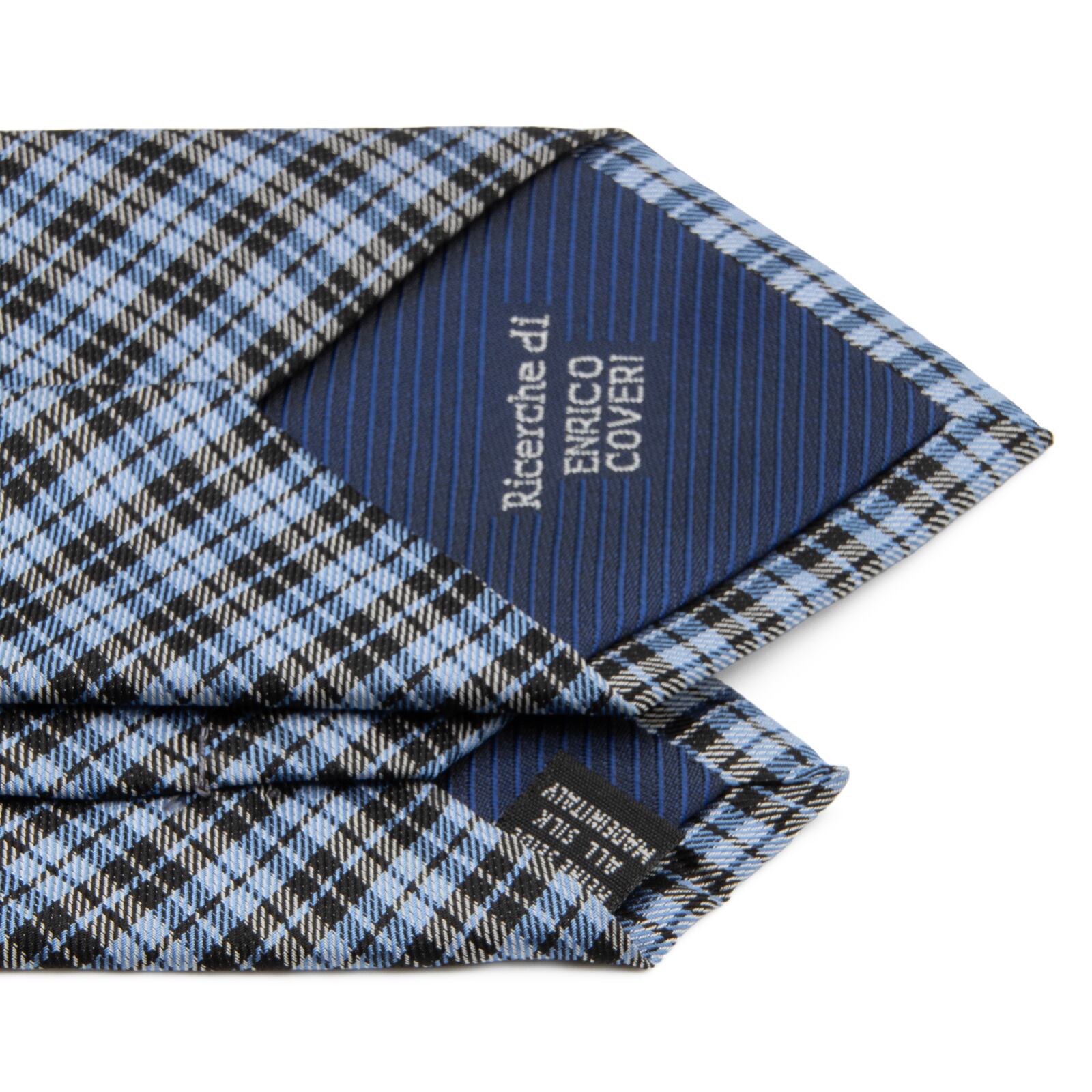 送料無料 エンリココベリ ネクタイ レギュラータイ ジャガード 新品 シルク 青 ブルー 水色 黒 白 チェック 格子 ブランド イタリア製 N864