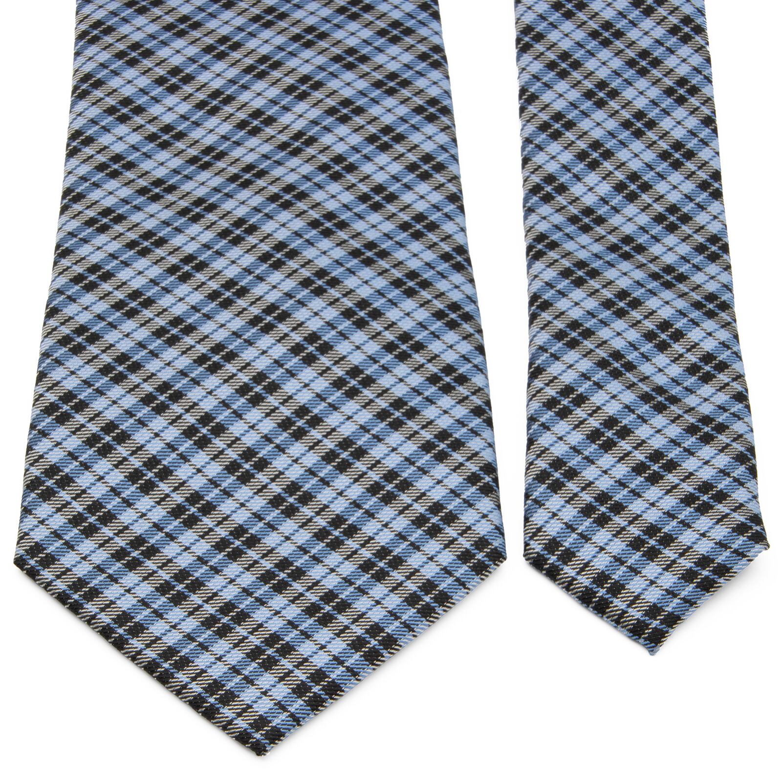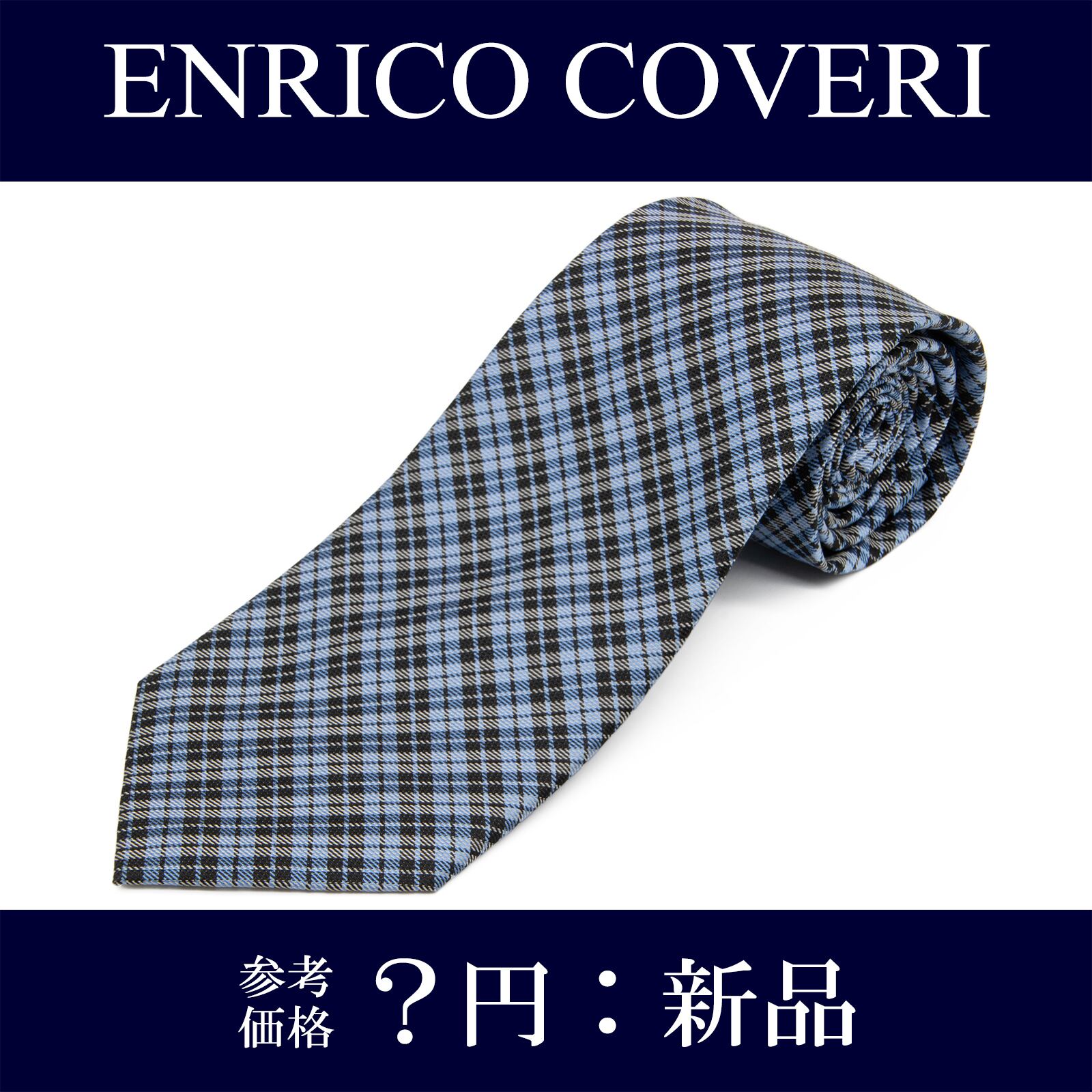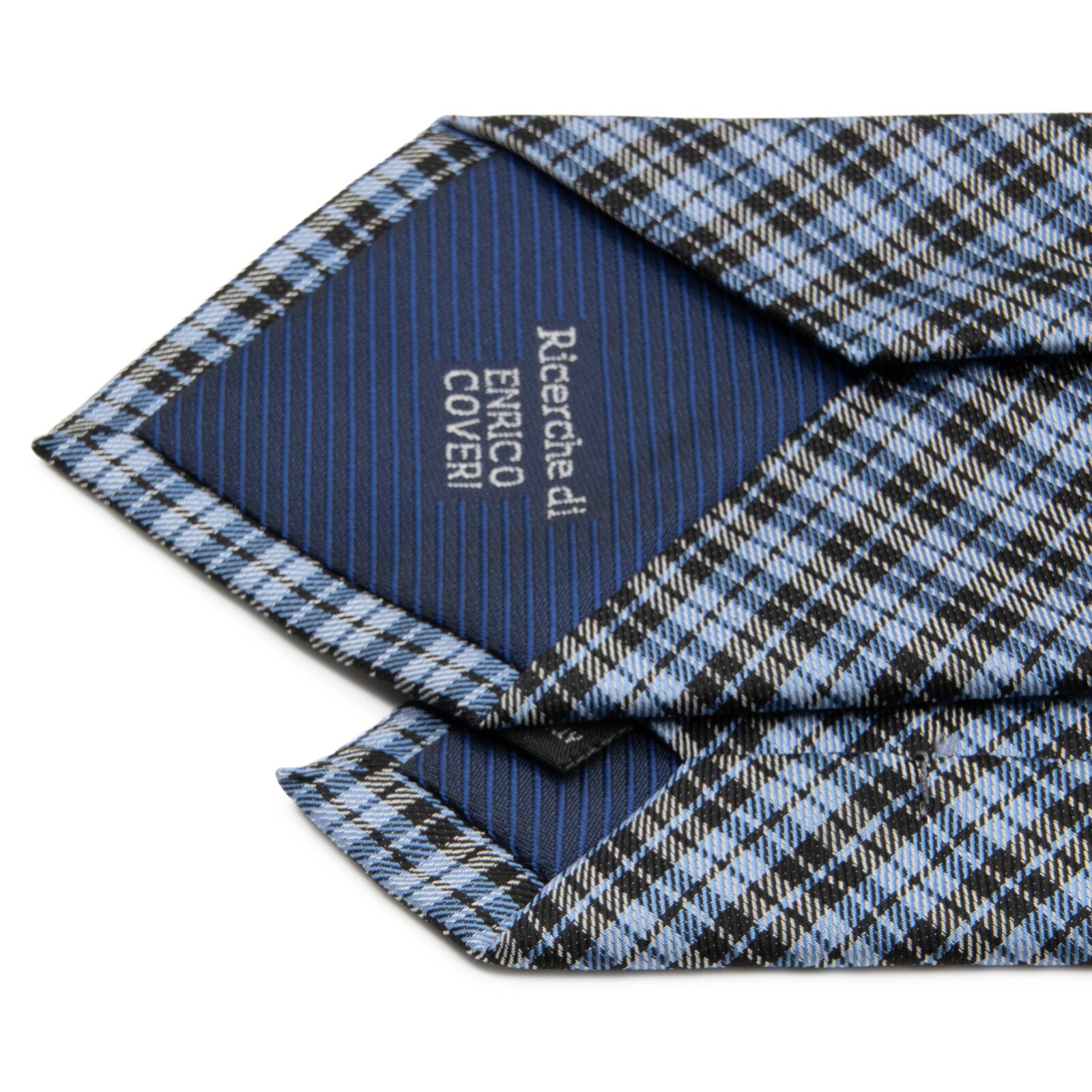 送料無料 エンリココベリ ネクタイ レギュラータイ ジャガード 新品 シルク 青 ブルー 水色 黒 白 チェック 格子 ブランド イタリア製 N864