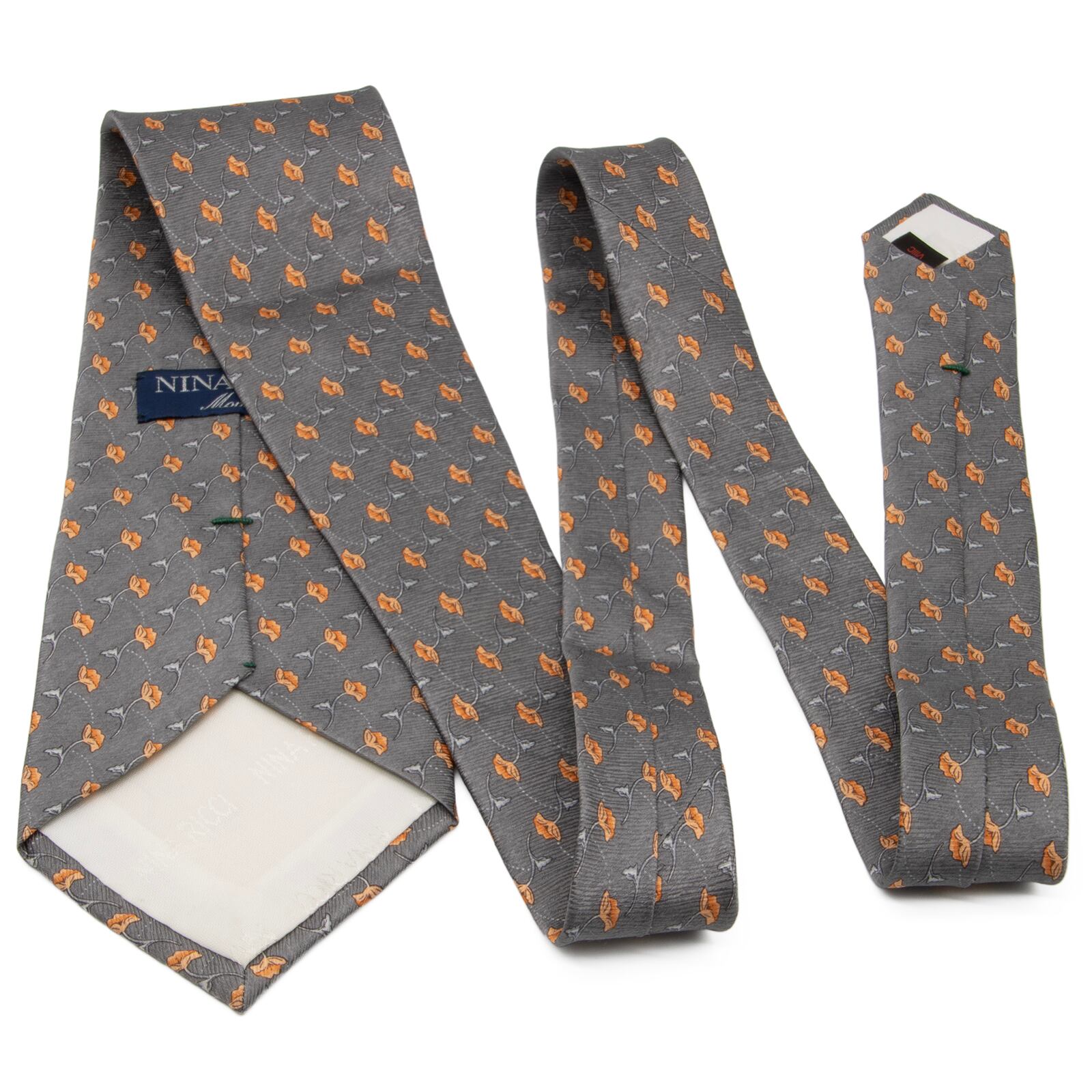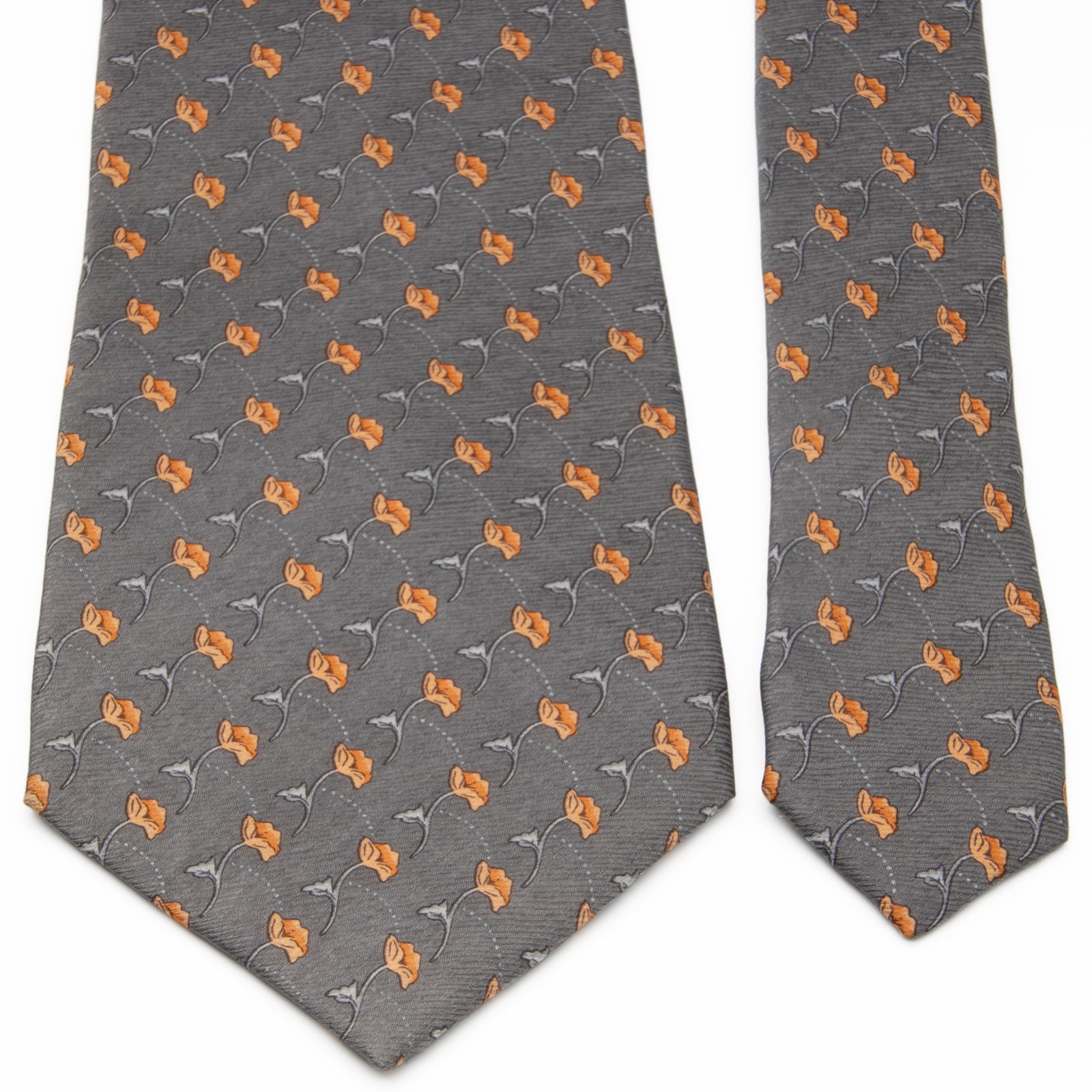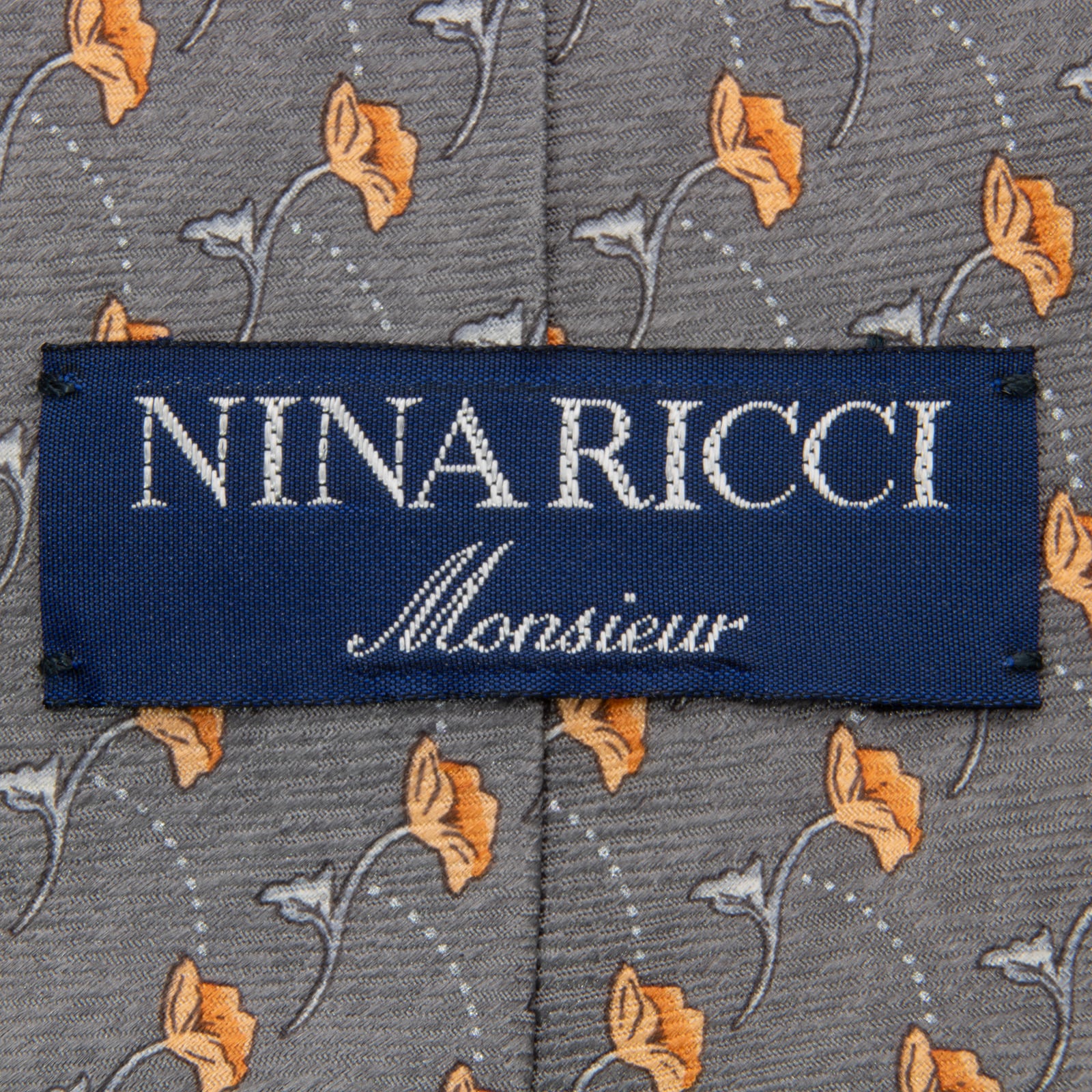 送料無料 ニナリッチ ネクタイ レギュラータイ 新品 シルク グレー 橙 オレンジ ビジネス カジュアル 花 フラワー ブランド おしゃれ N875