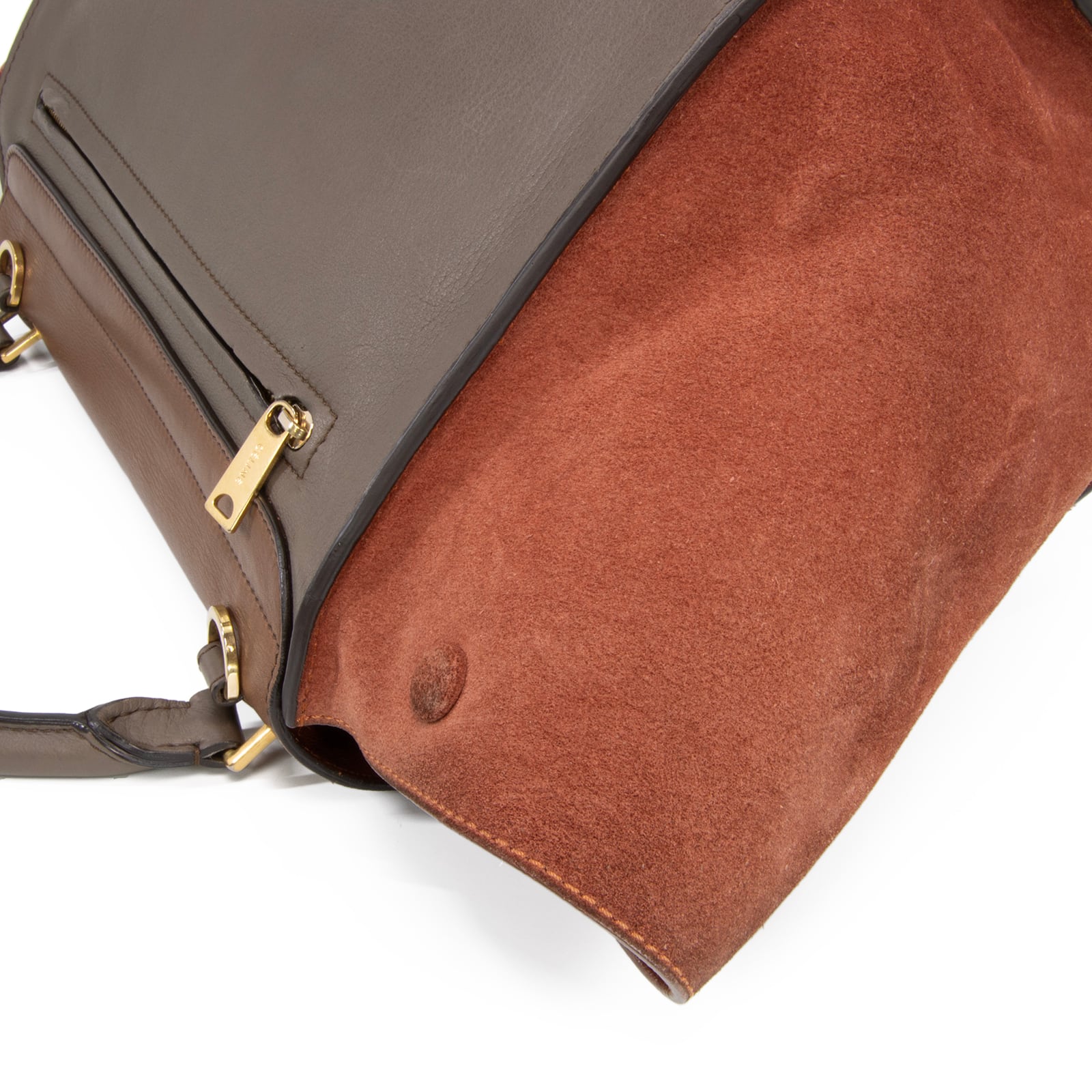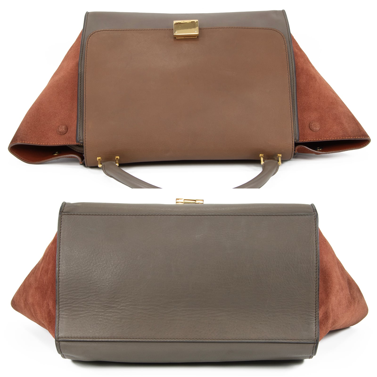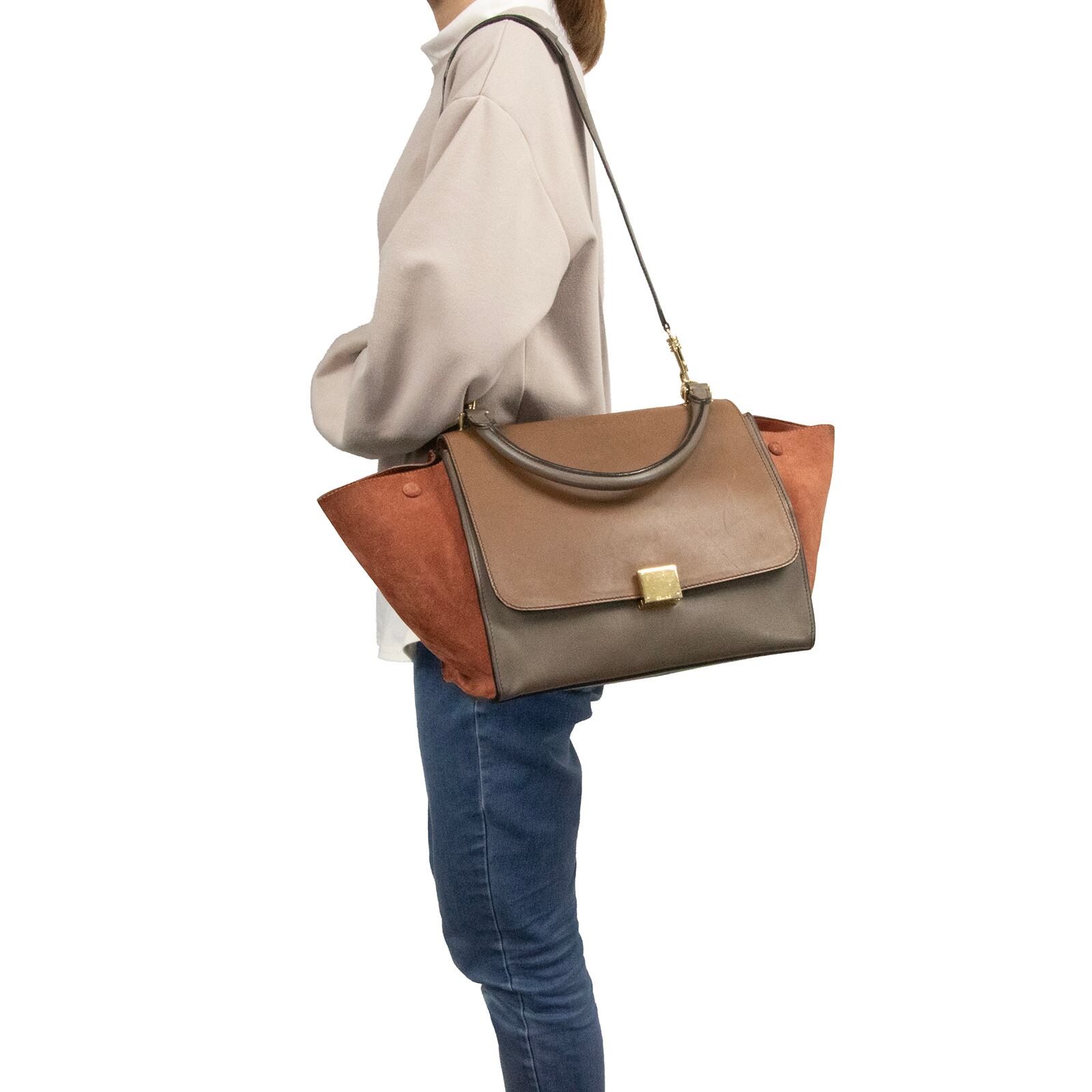 本物 送料無料 セリーヌ ショルダーバッグ ハンドバッグ レディース トラペーズ ミディアム 茶色 ブラウン グレー 肩掛け ロゴ バック L182