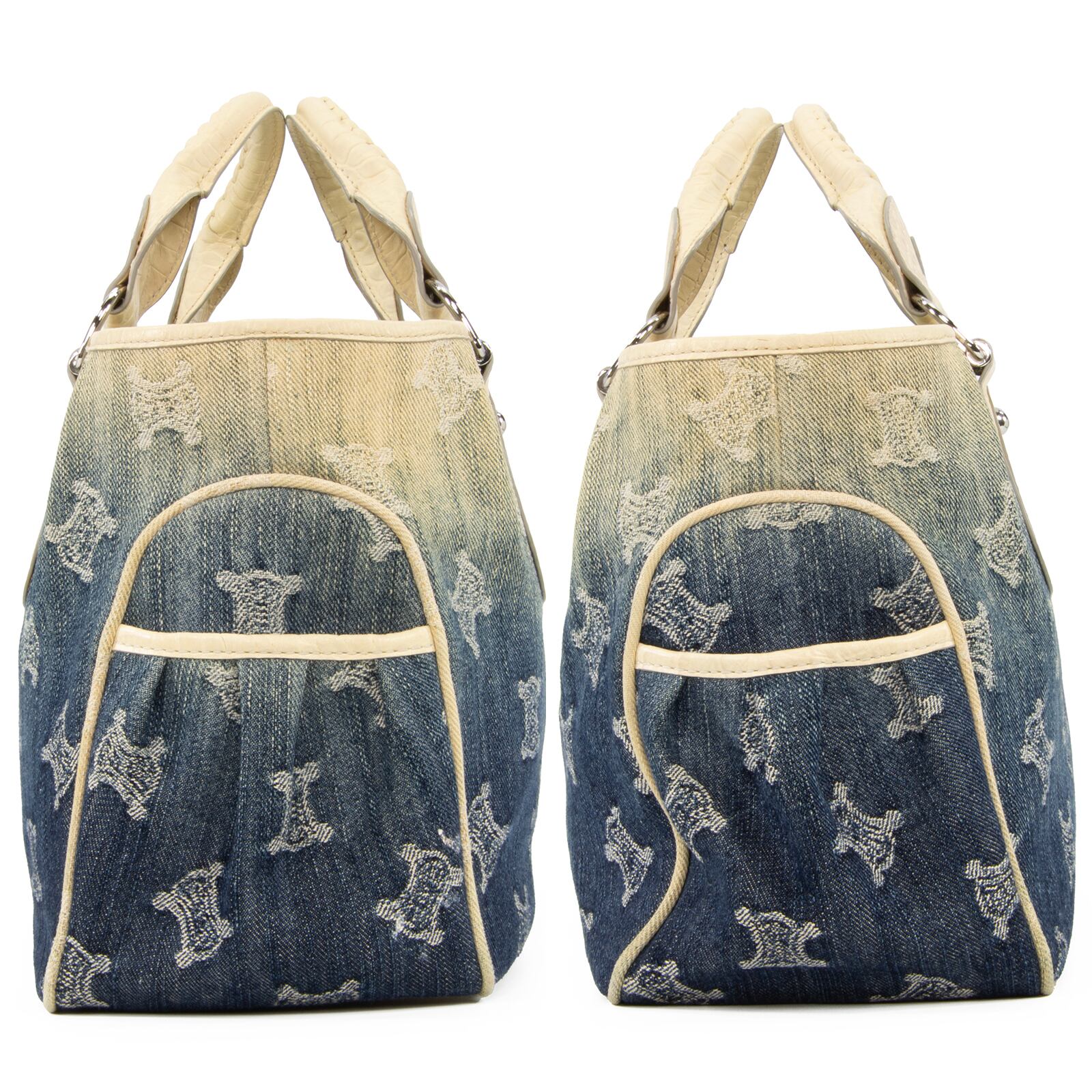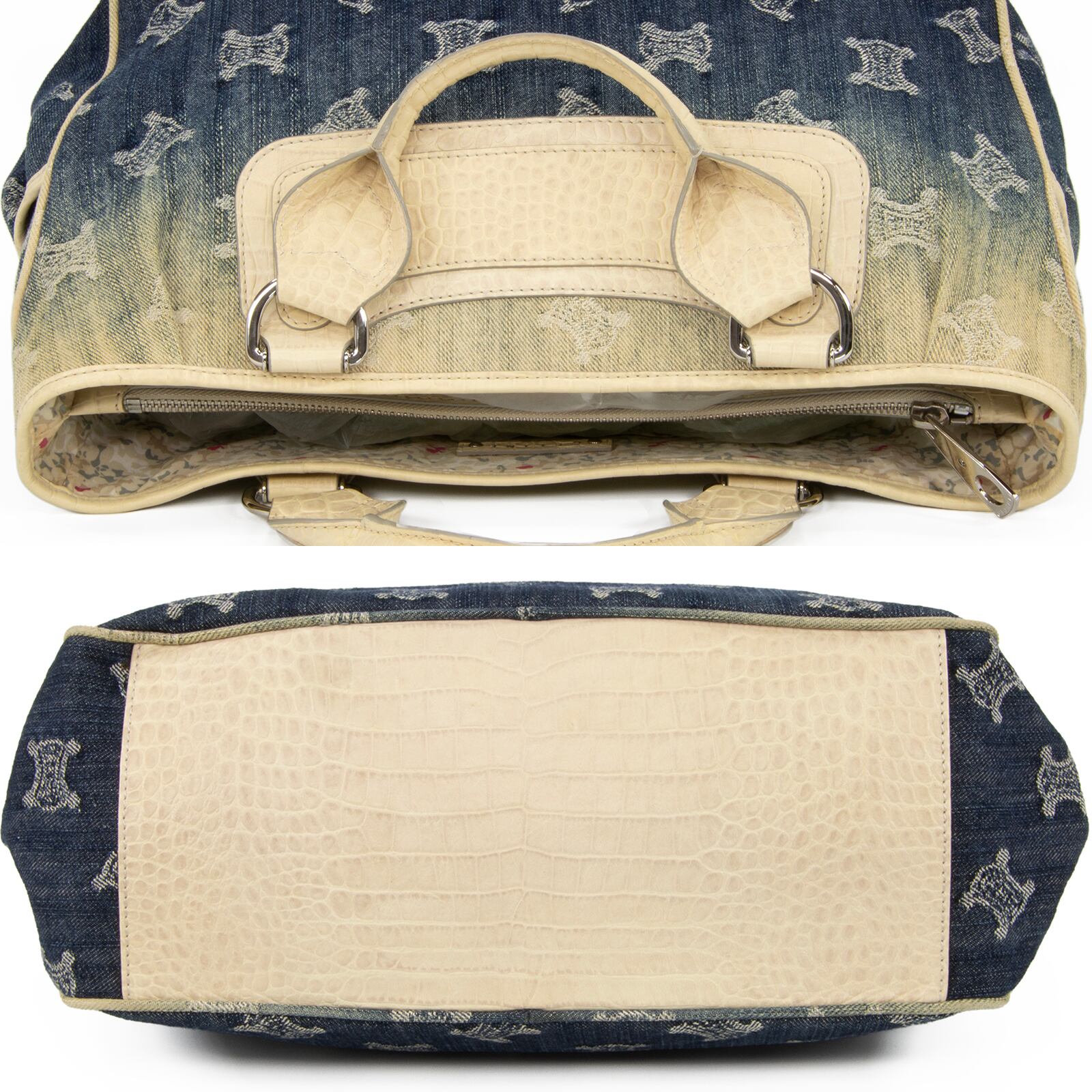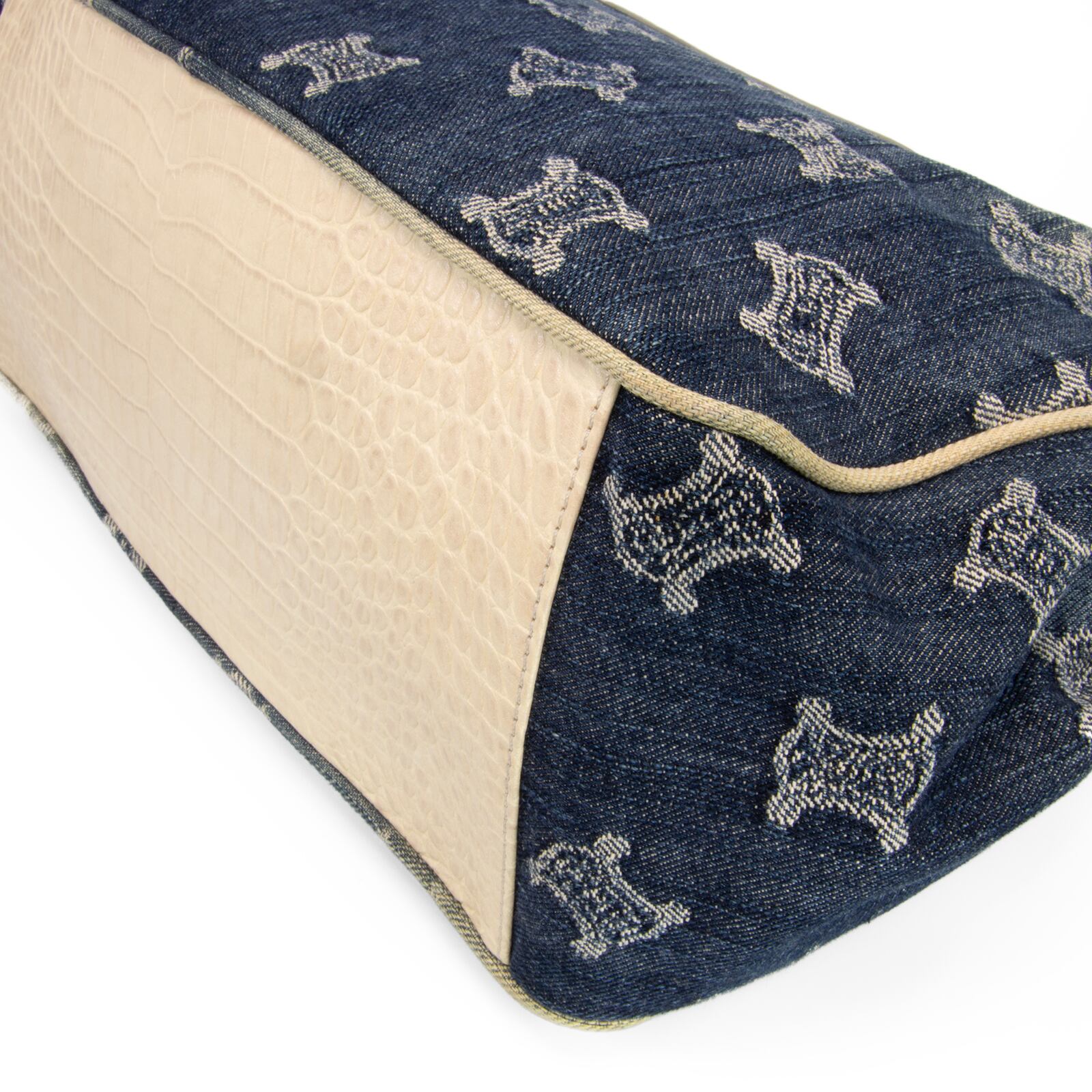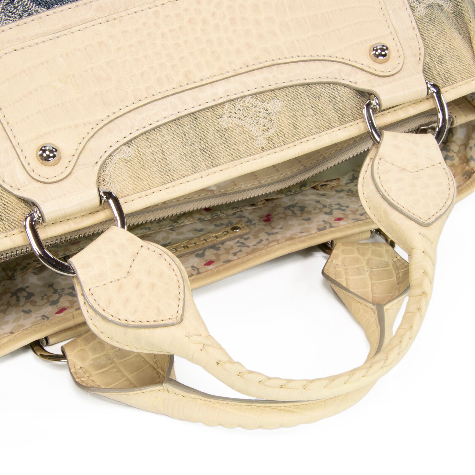 本物 送料無料 セリーヌ ハンドバッグ レディース デニム クロコダイル型押しレザー ブギーバッグ パリマカダム ネイビーブルー ロゴ E394