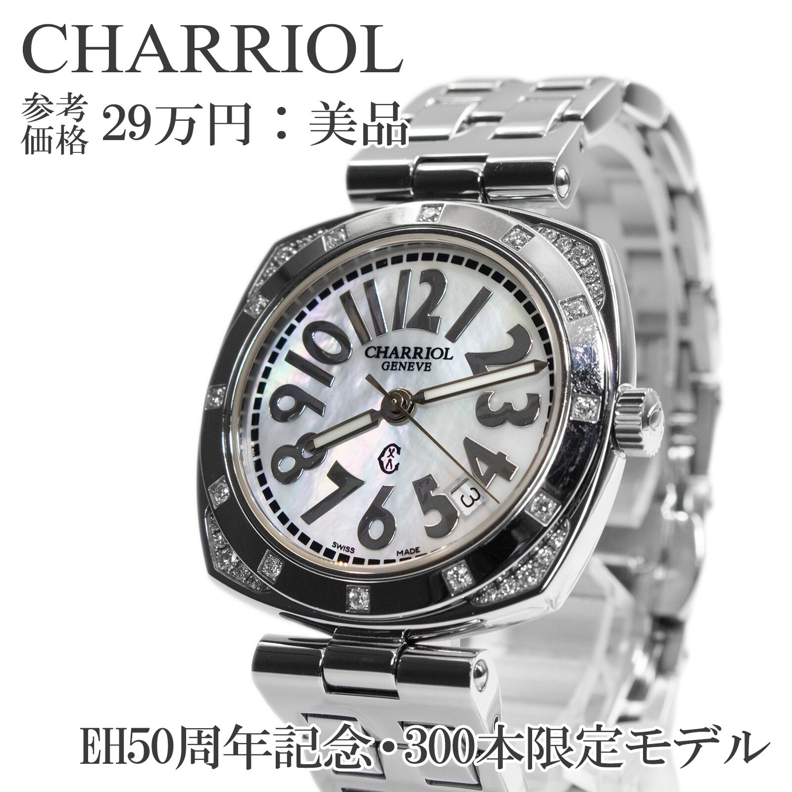 送料無料 シャリオール 腕時計 メンズ レディース EH50周年記念 300本限定 白 珍しい シェル盤 ダイヤモンド Cロゴ ブランド 綺麗 X223