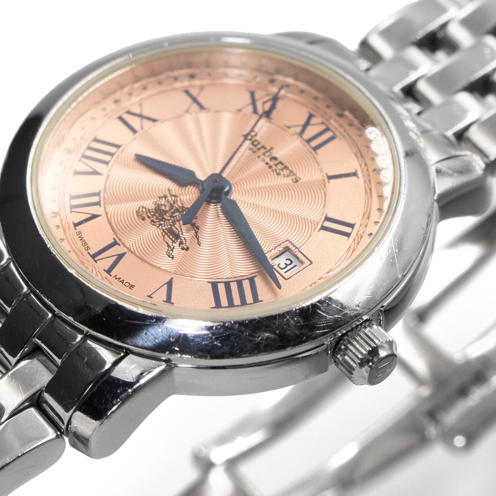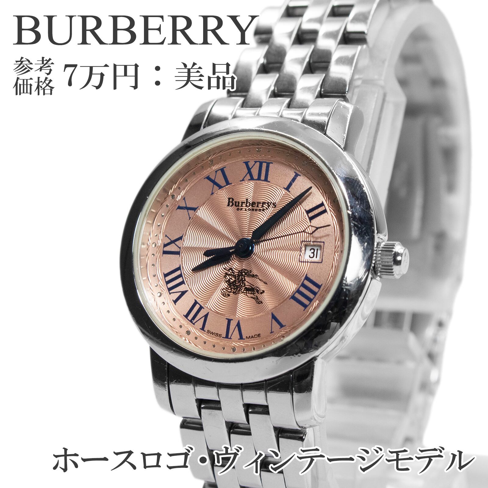 送料無料 バーバリー 腕時計 クォーツ レディース メタリック ピンクベージュ ヴィンテージ ホースロゴ マーク 珍しい スイス製 綺麗 X226