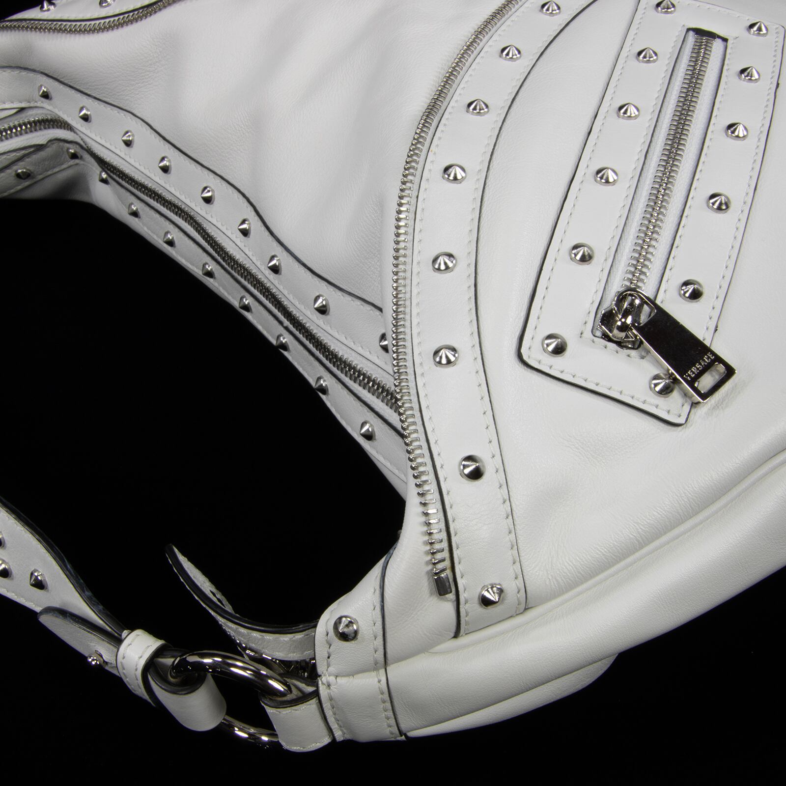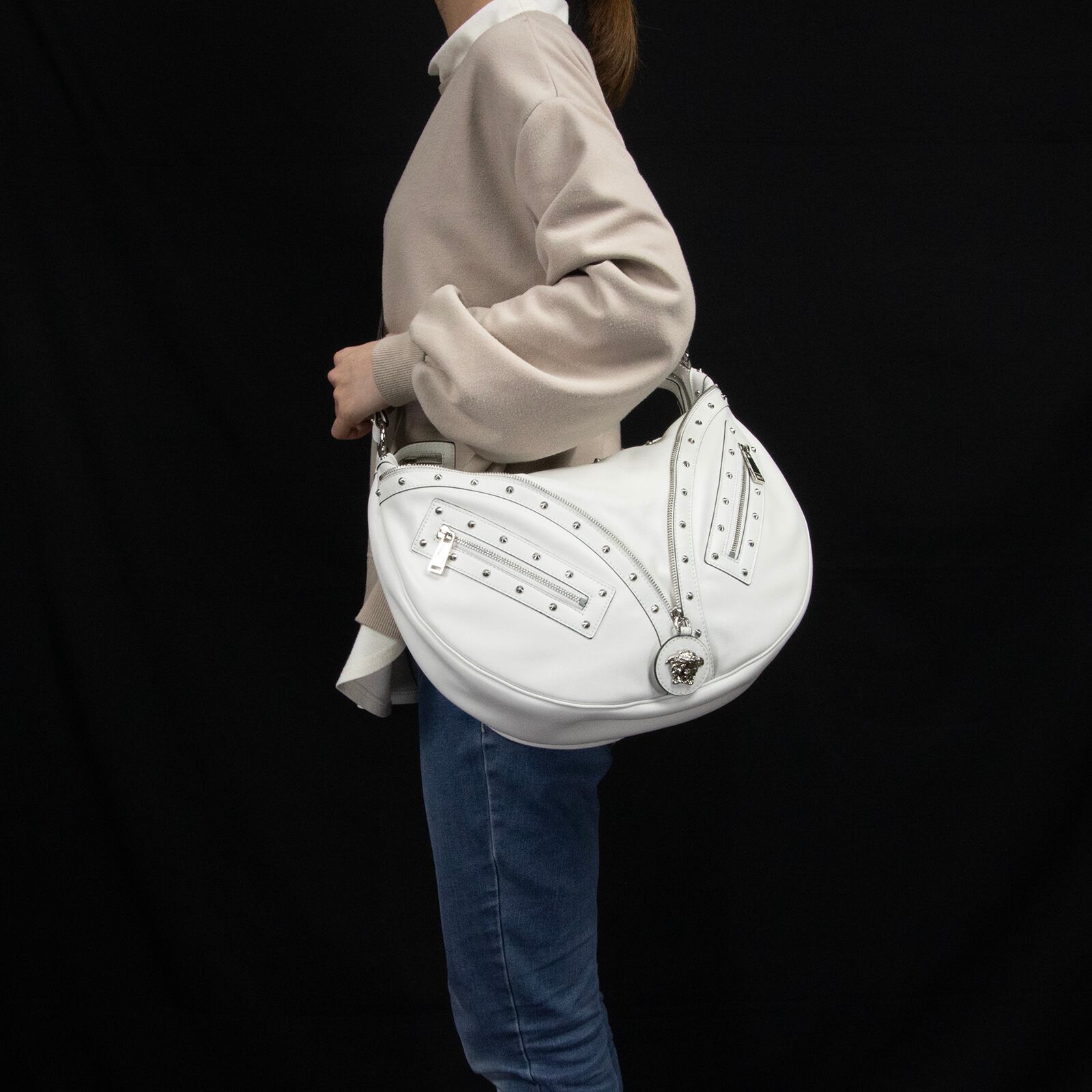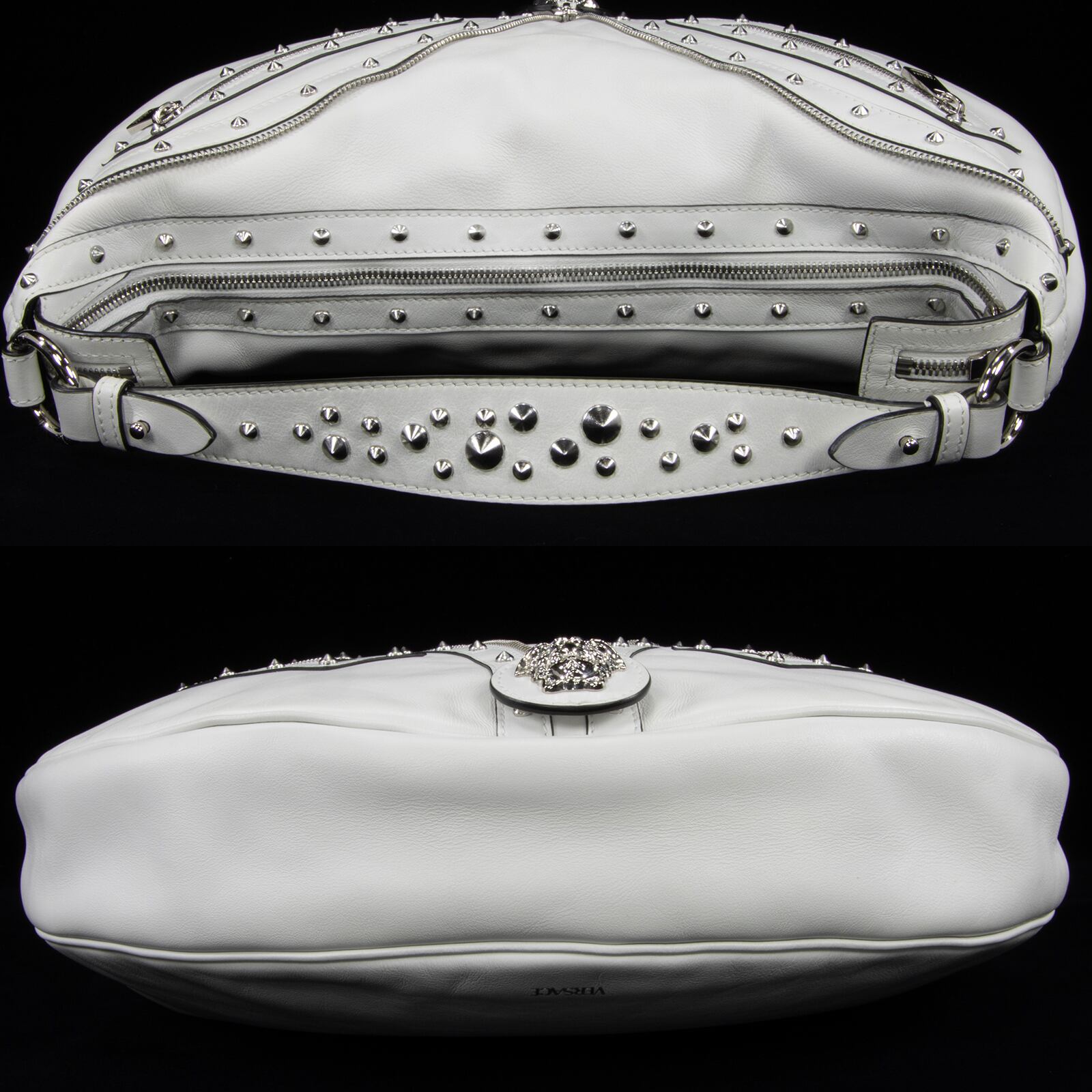 本物 送料無料 ヴェルサーチェ ハンドバッグ ショルダーバッグ レディース 2023年限定 メドゥーサ ホーボー 白 肩掛け ロゴ スタッズ F255