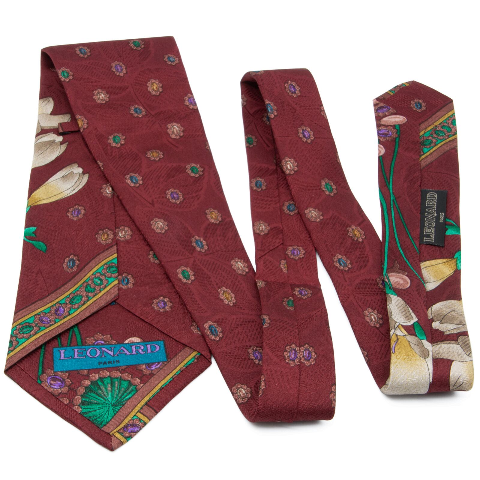 送料無料 レオナール ネクタイ レギュラータイ 新品 シルク 赤 ボルドー 緑 黄色 ピンク 紫 パネル柄 花 マーク ブランド イタリア製 N734