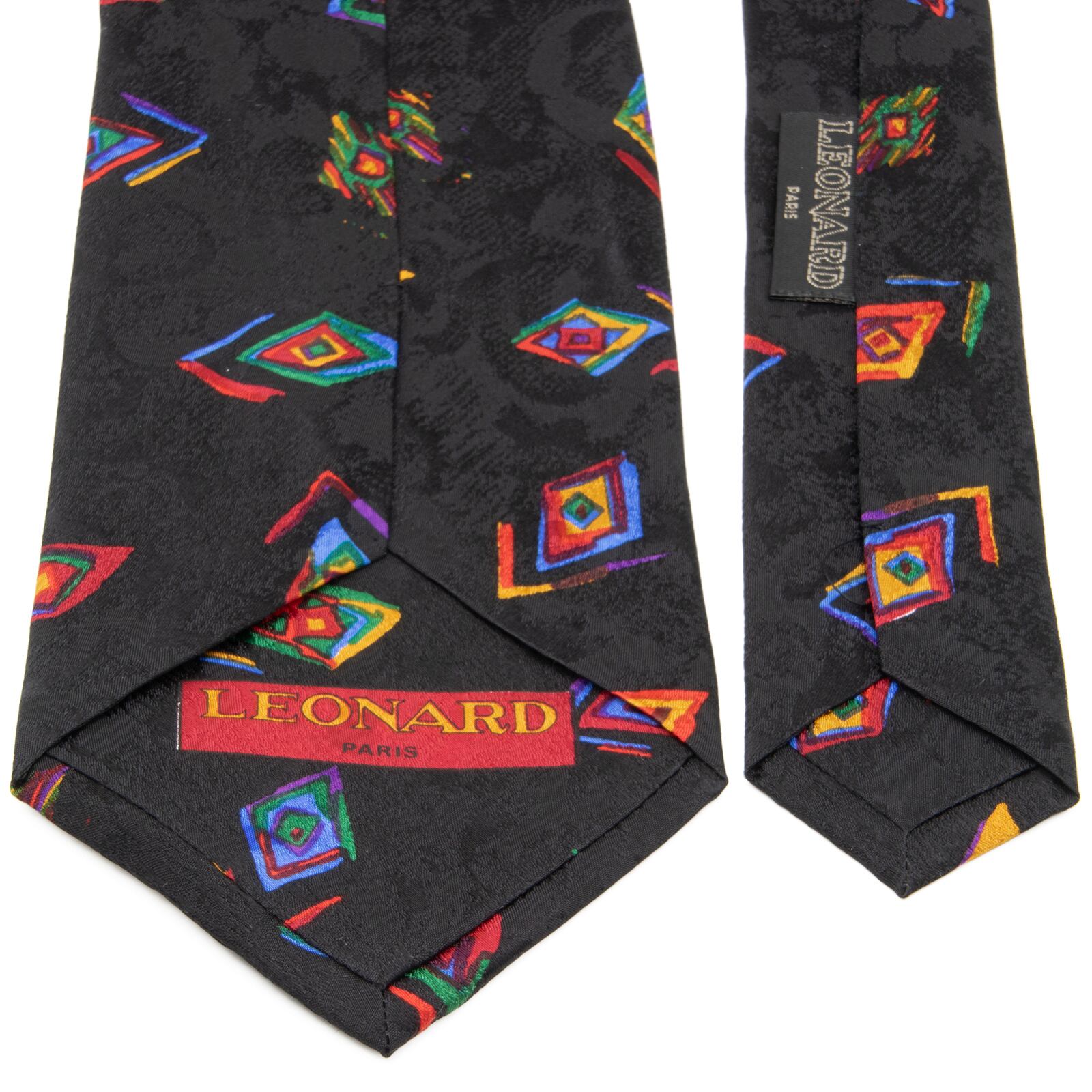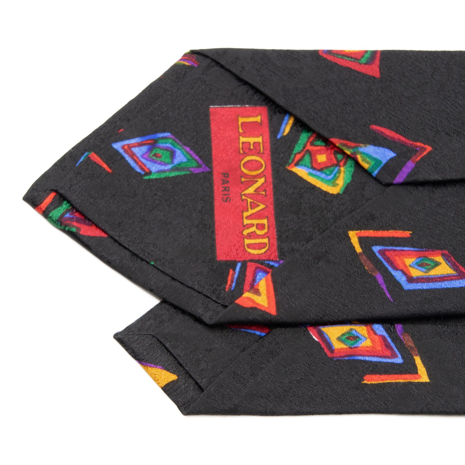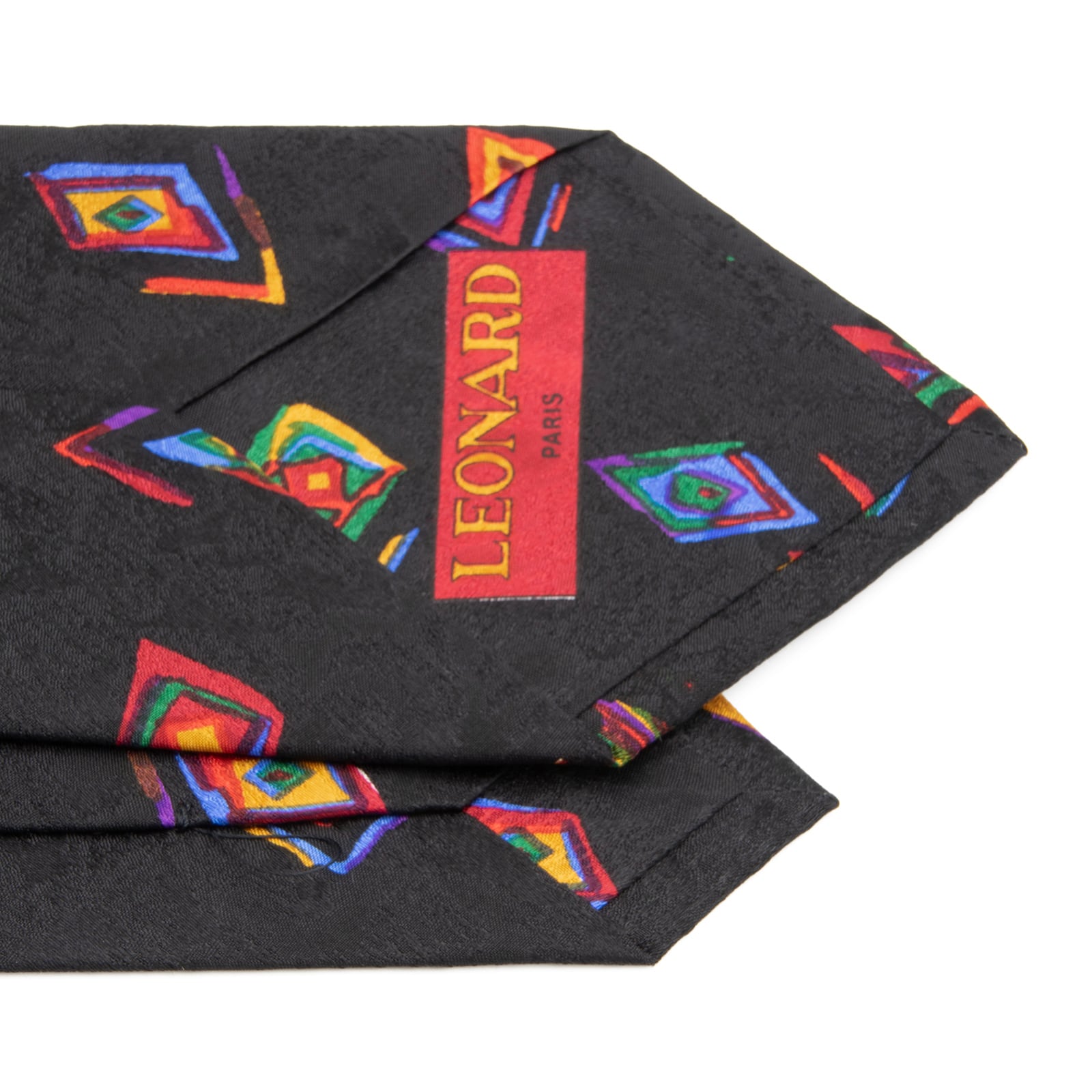 送料無料 レオナール ネクタイ レギュラータイ 新品 シルク 黒 赤 青 緑 紫 四角 ひし形 ダイヤ型 幾何学模様 ブランド イタリア製 N753