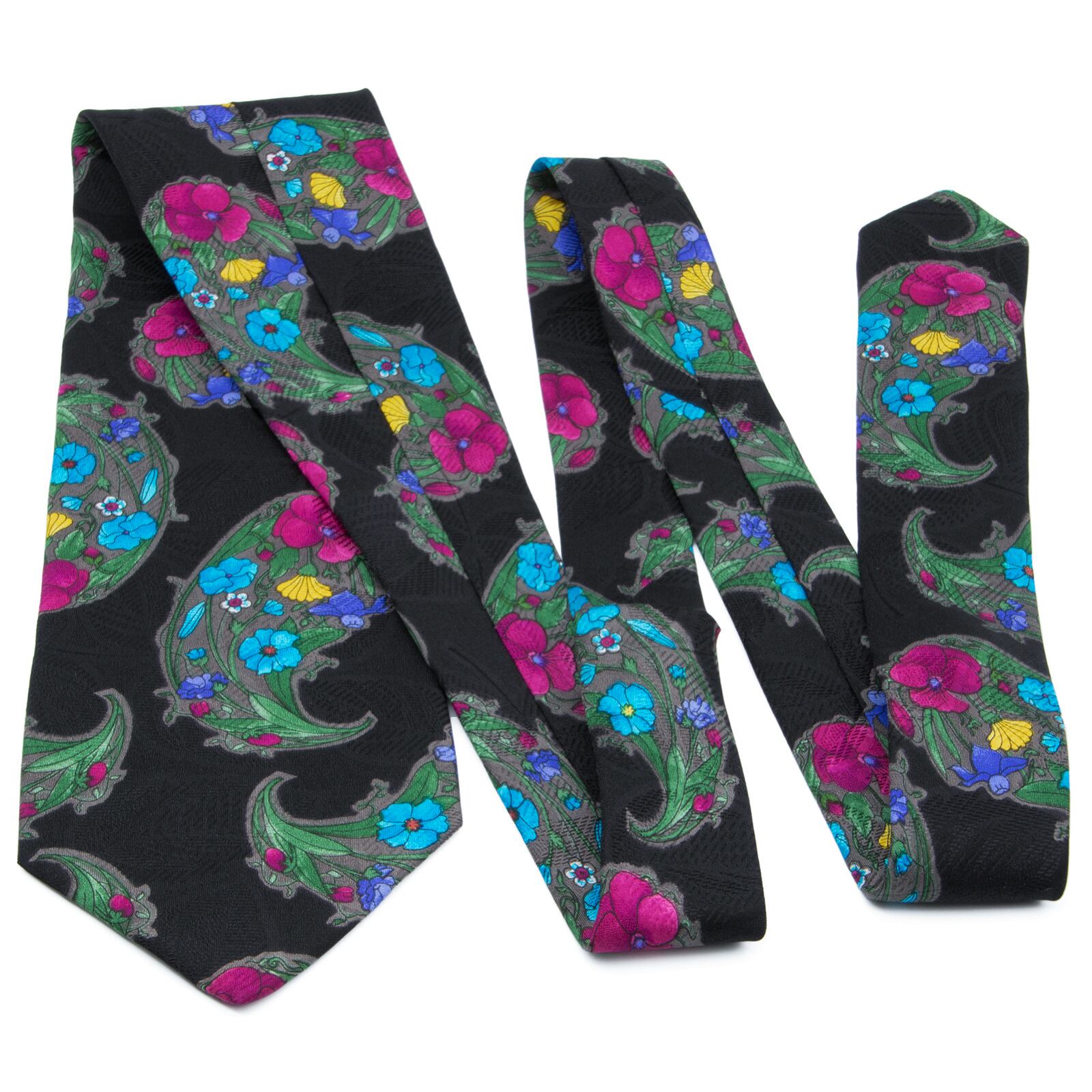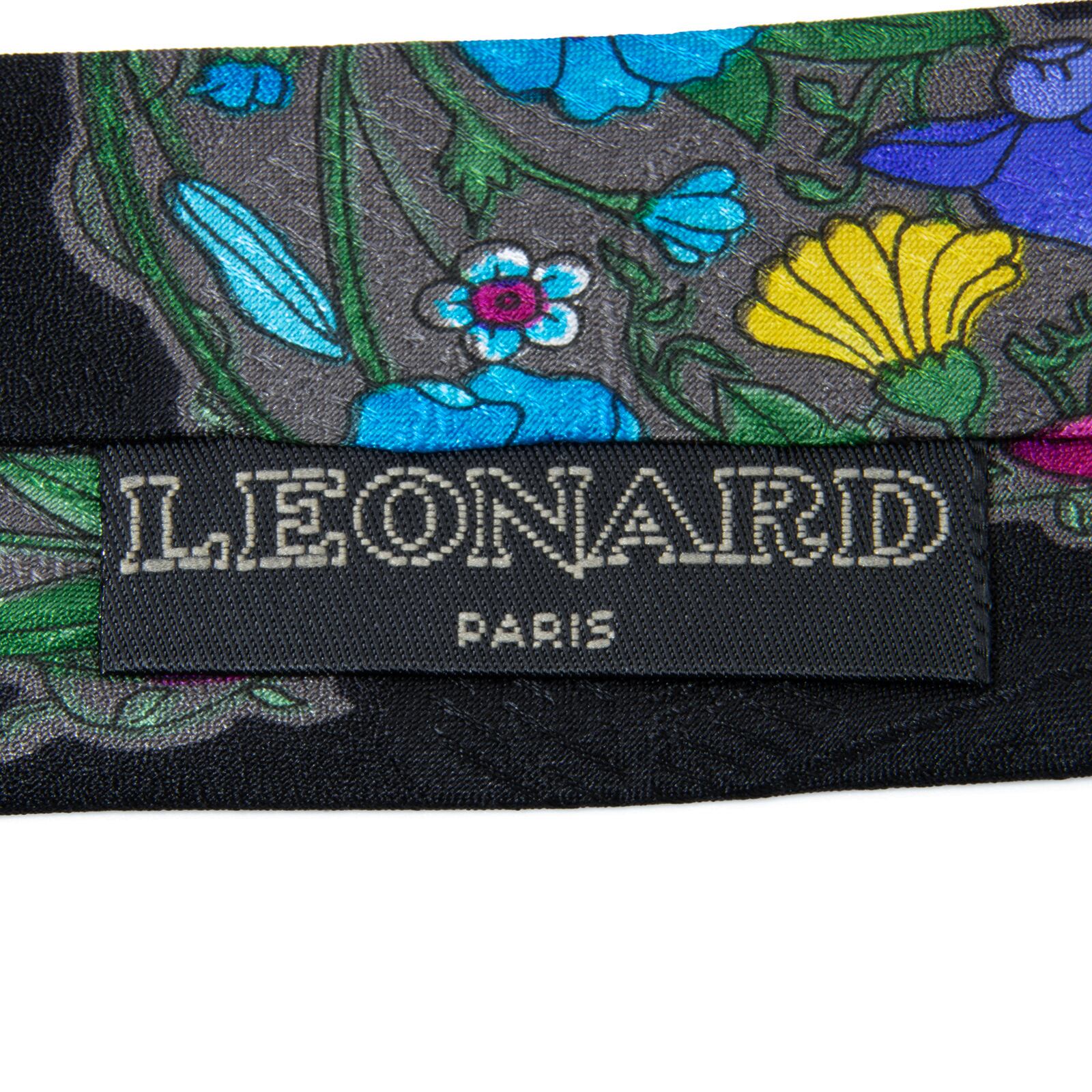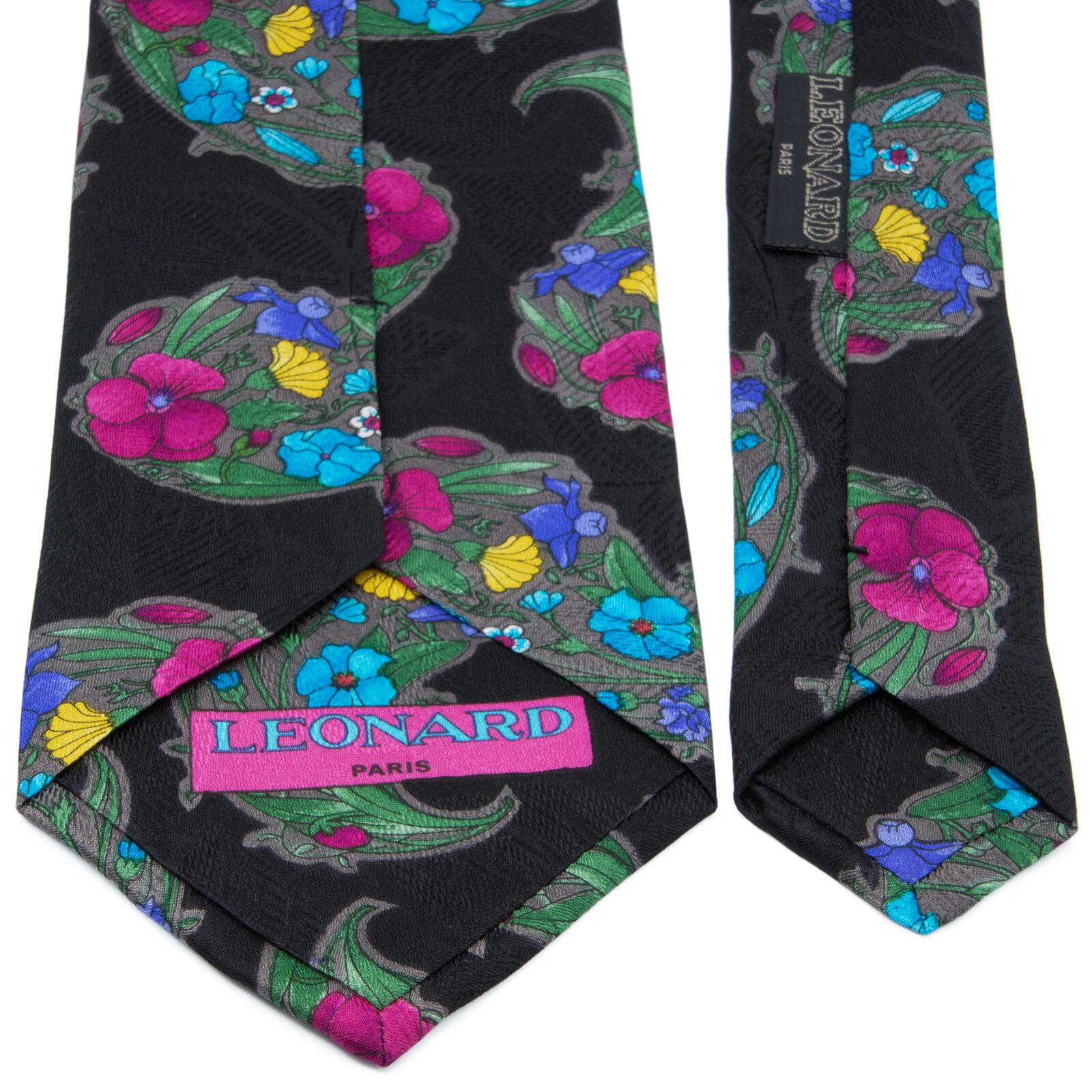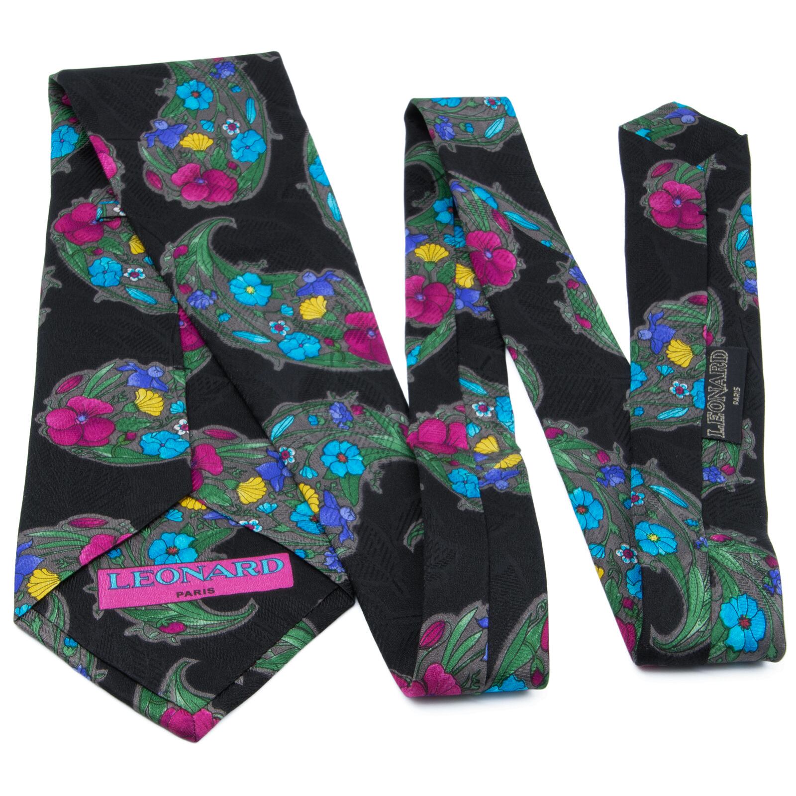 送料無料 レオナール ネクタイ レギュラータイ 新品 シルク 黒 グレー 水色 紫 緑 黄色 青紫 ペイズリー 花 葉 ブランド イタリア製 N758