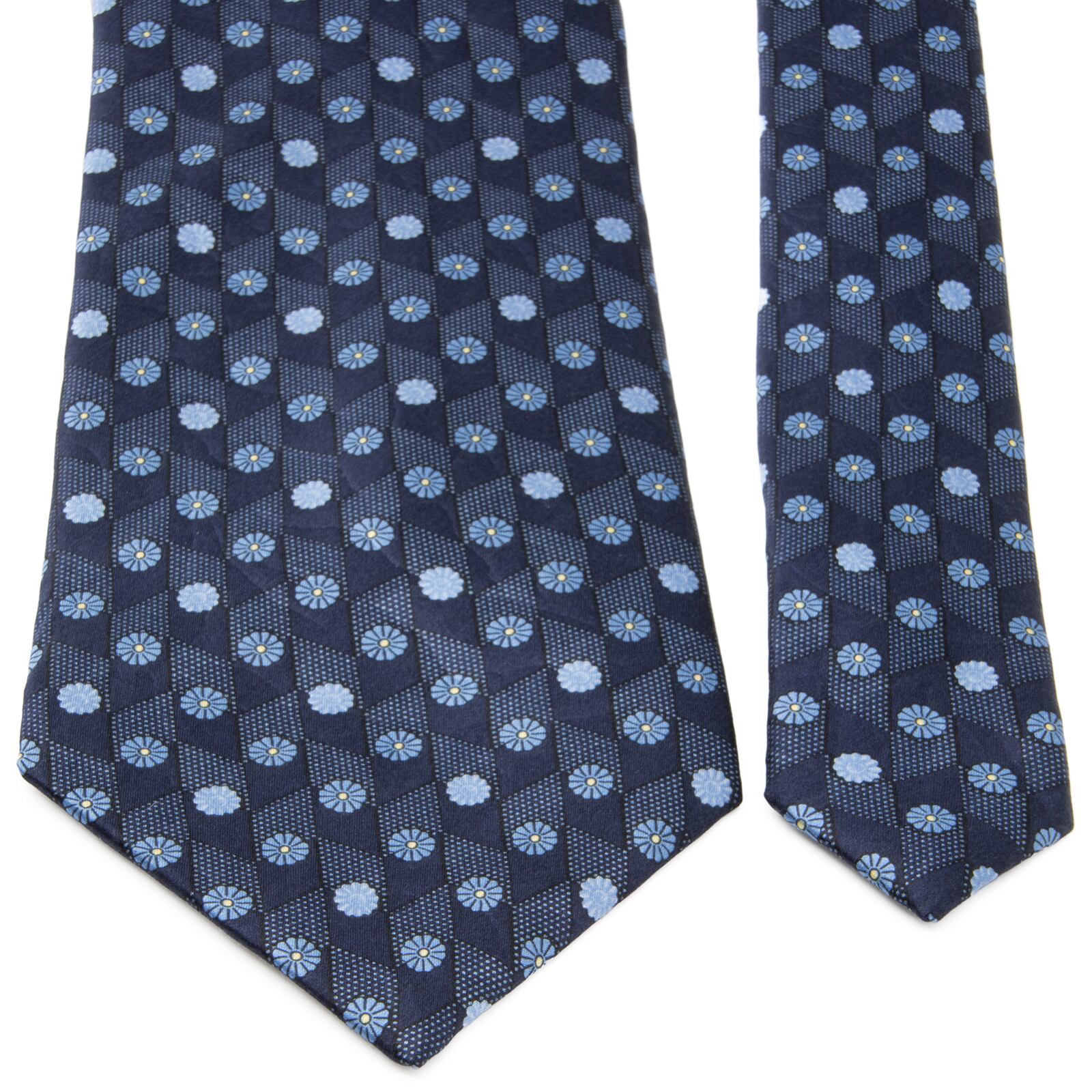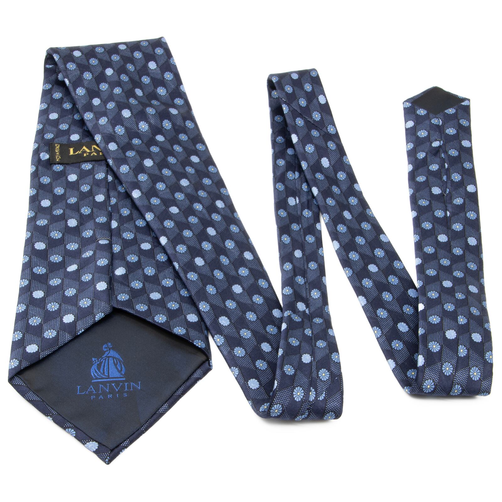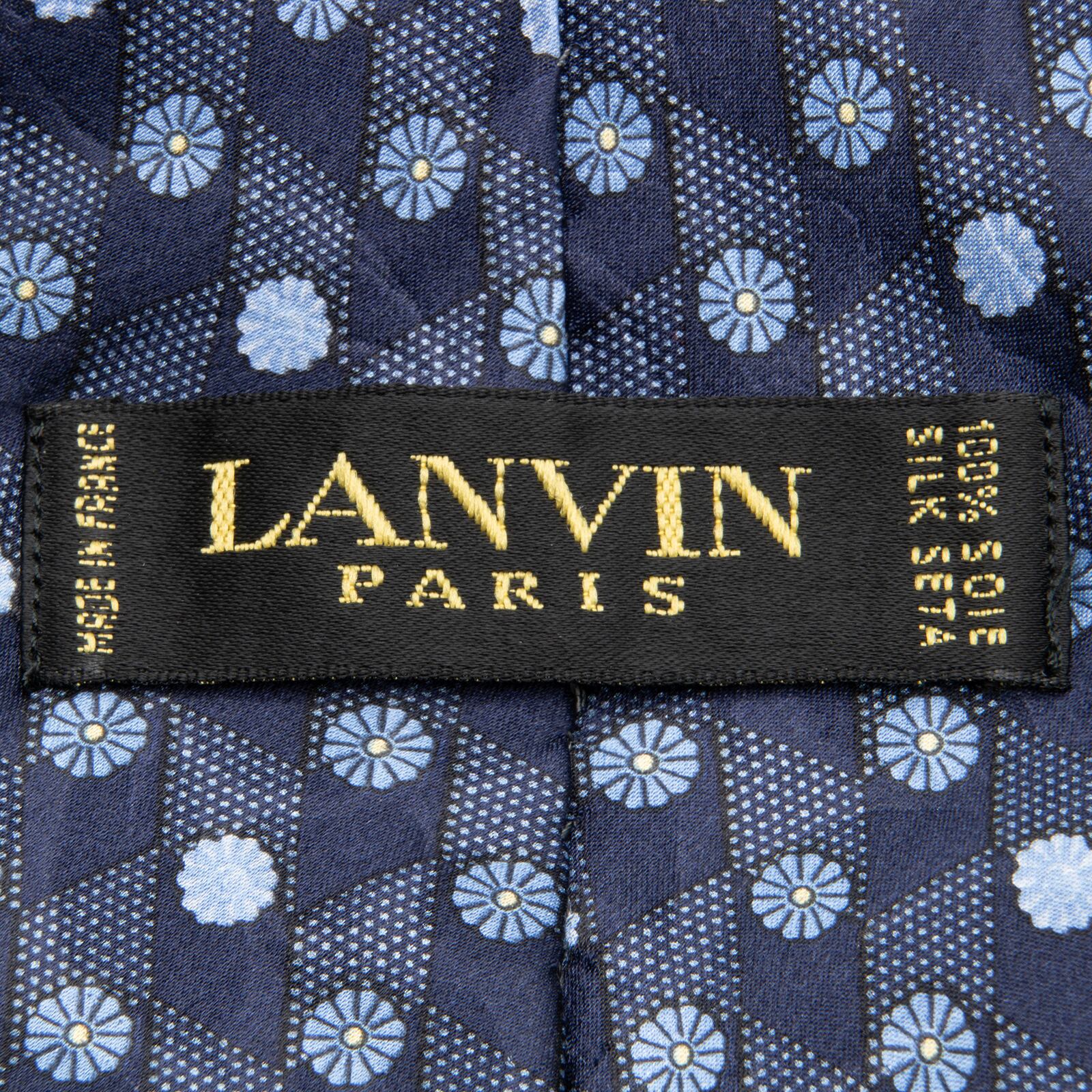 送料無料 ランバン ネクタイ 新品同様 シルク ネイビーブルー 水色 黄色 ビジネス 花 フラワー 菊 四角 マーク ブランド フランス製 N836