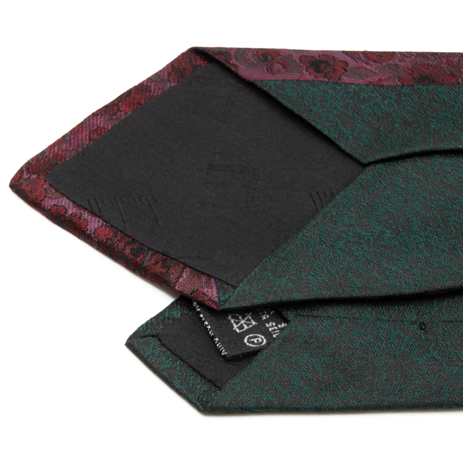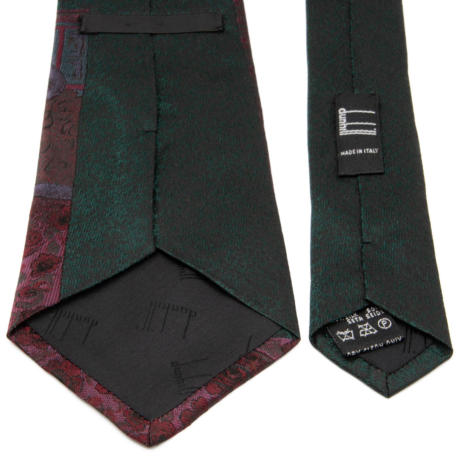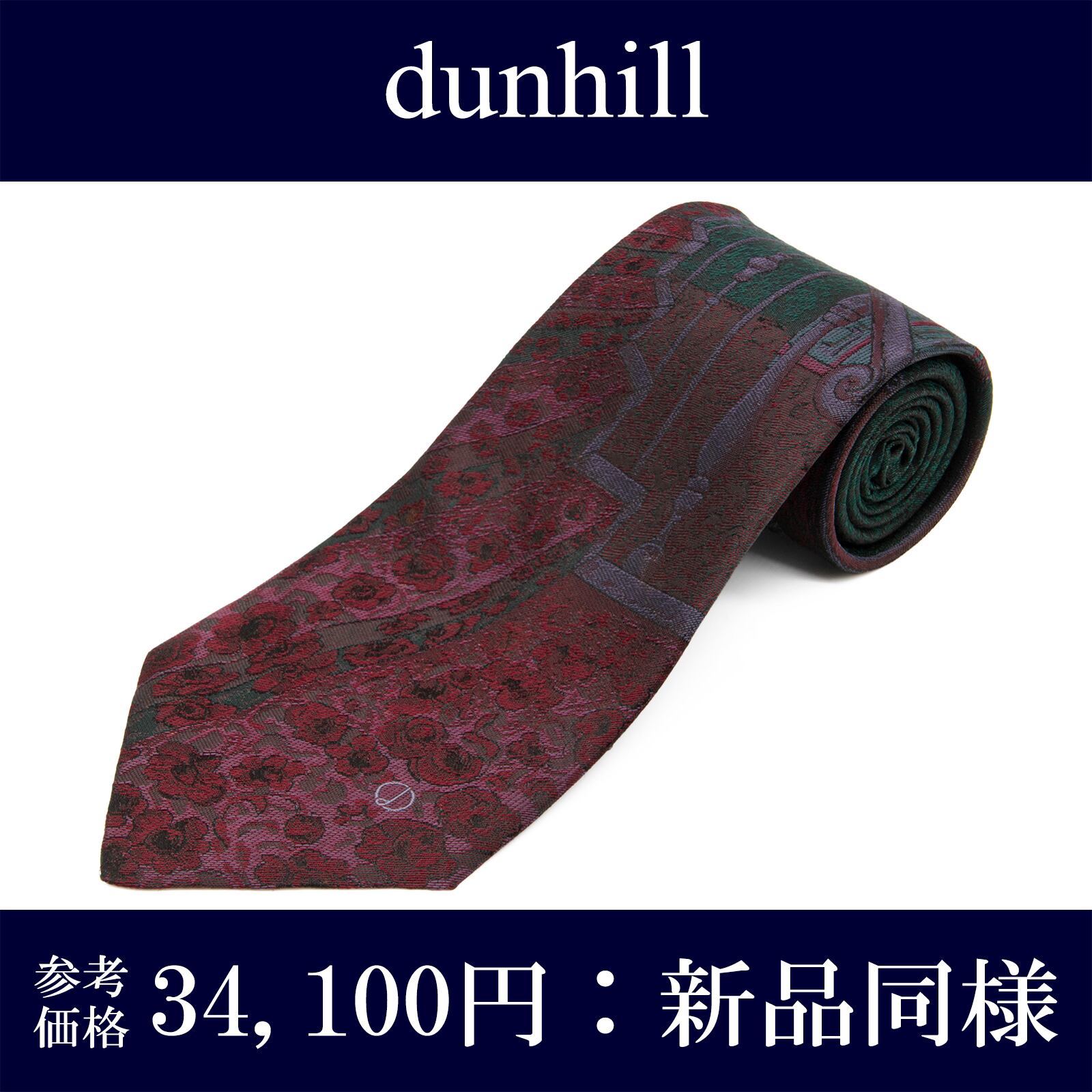 送料無料 ダンヒル ネクタイ ジャガード 新品同様 シルク 緑 バーガンディー 紫 パネル柄 西洋 階段 花 バラ ロゴ 珍しい イタリア製 N876
