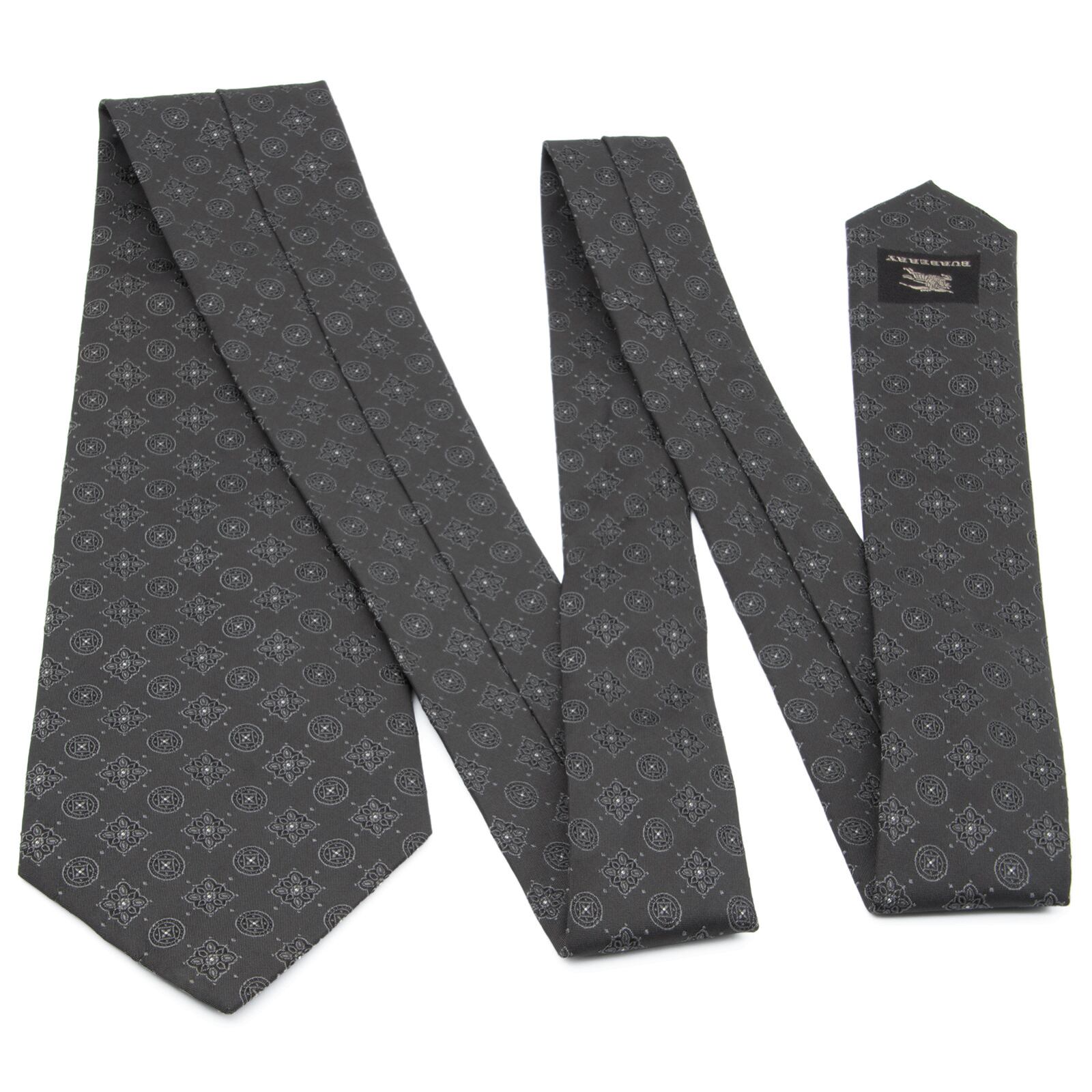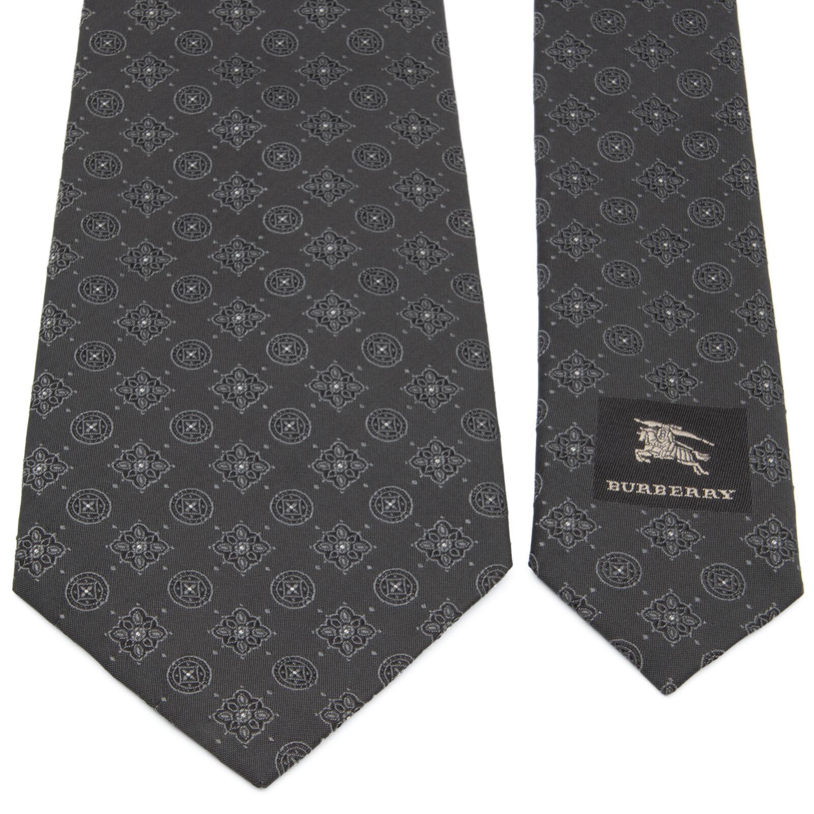 送料無料 バーバリー ネクタイ レギュラータイ ジャガード 新品同様 シルク グレー 花 円 サークル ドット 光沢 おしゃれ イタリア製 N932