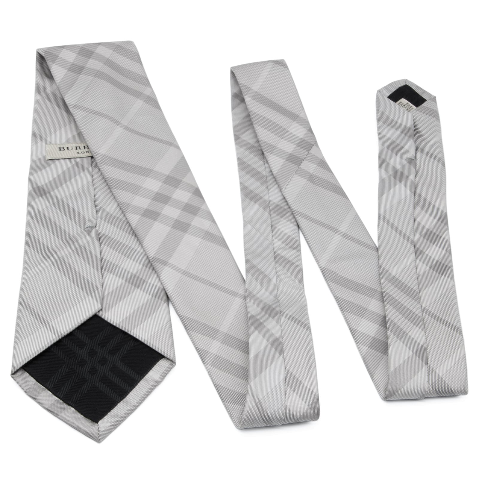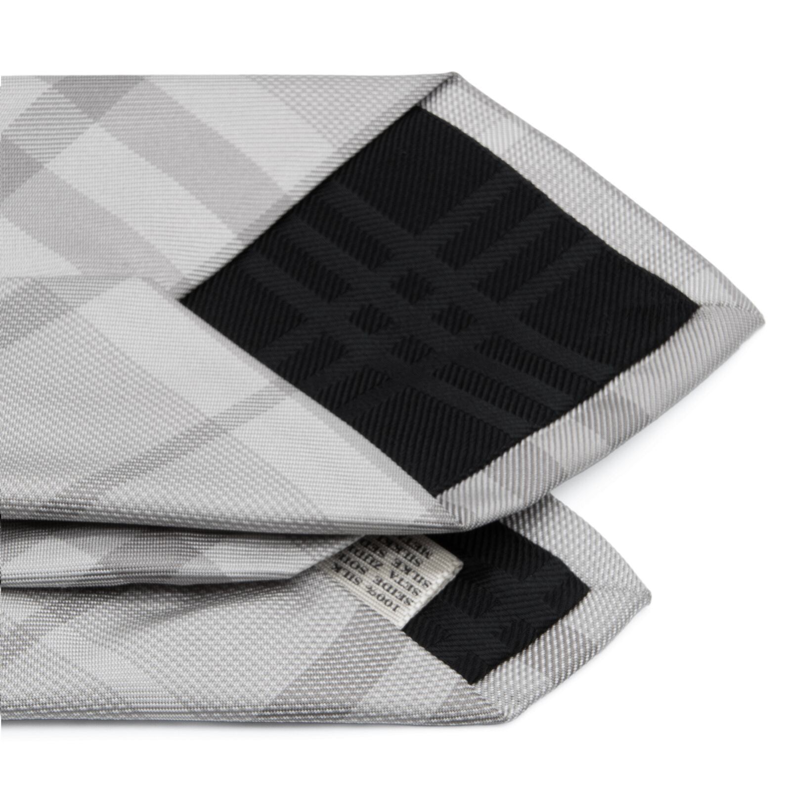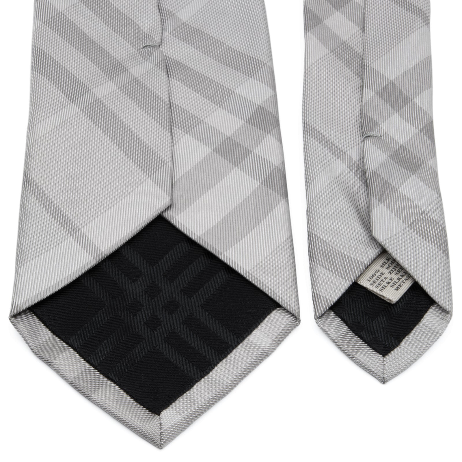 送料無料 バーバリー ネクタイ レギュラータイ ジャガード 新品同様 シルク 灰色 グレー チェック モノトーン 珍しい イングランド製 N935
