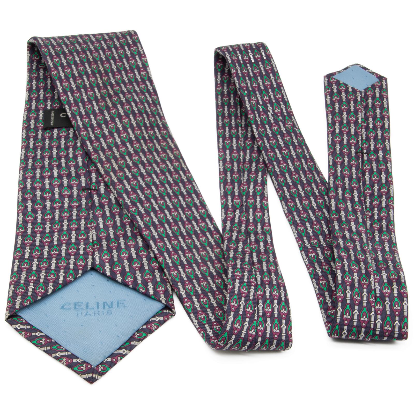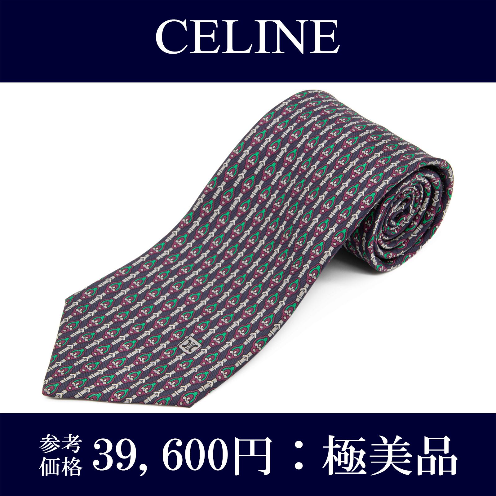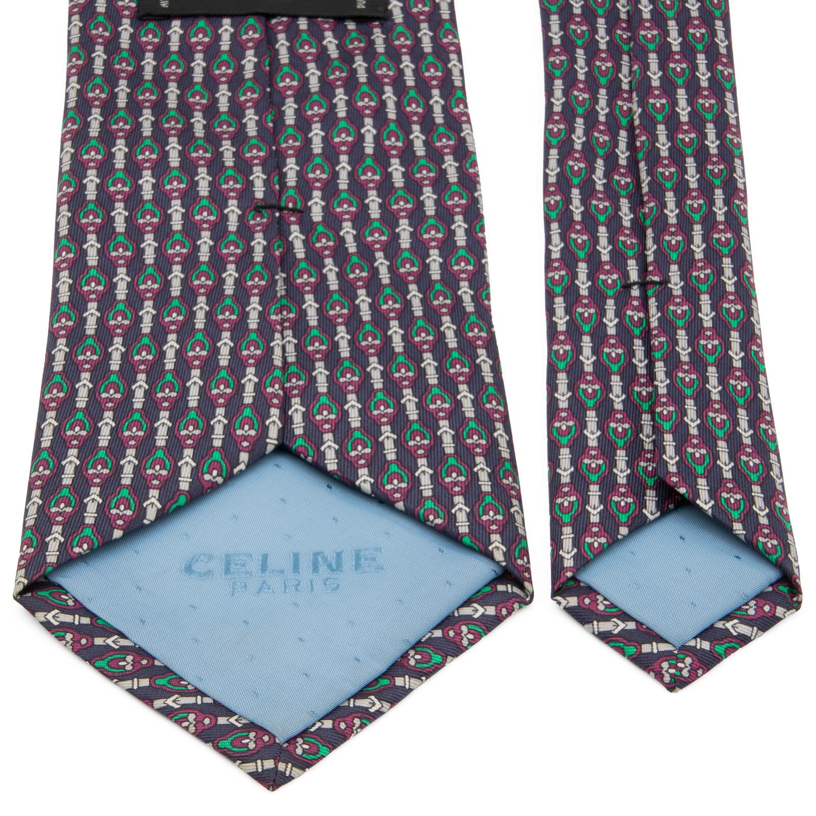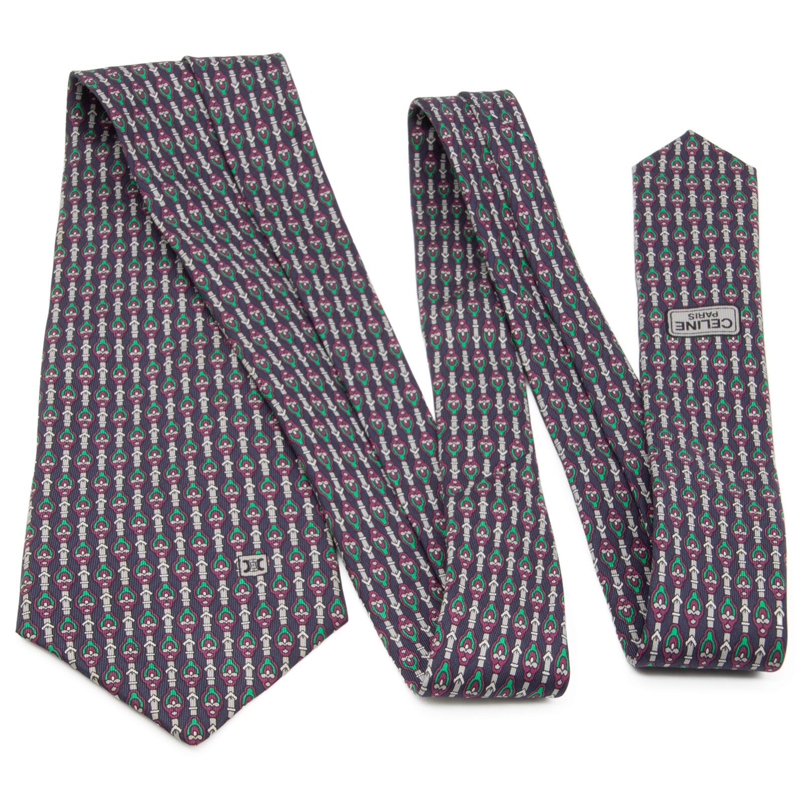 送料無料 セリーヌ ネクタイ レギュラータイ シルク ネイビーブルー 赤 グレー 緑 マカダムロゴ マーク 人気 珍しい スペイン製 綺麗 N948