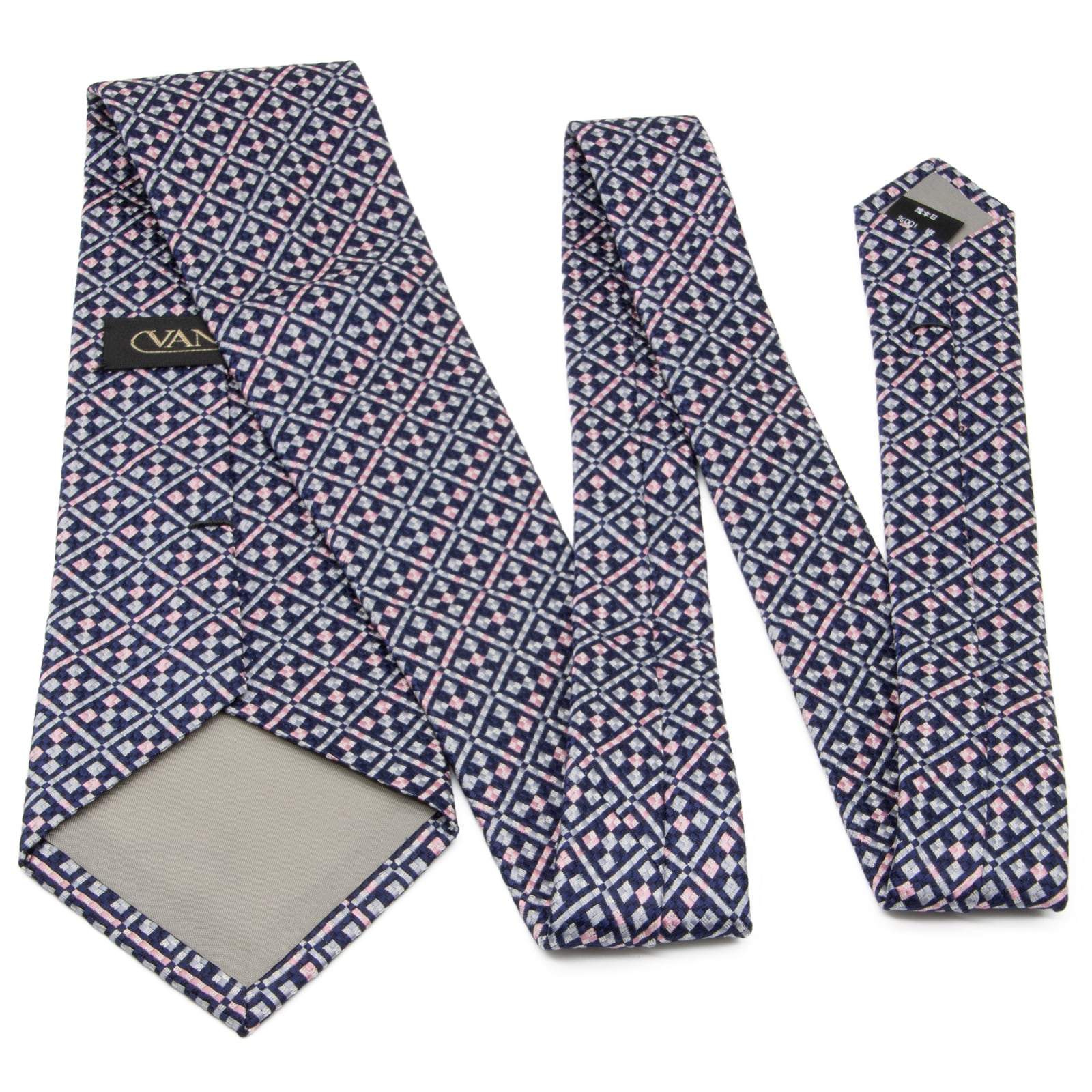 送料無料 ヴァノー ネクタイ ジャガードタイ 新品 シルク ピンク シルバー ネイビーブルー ビジネス ひし形 ダイヤモンド 光沢 珍しい P045