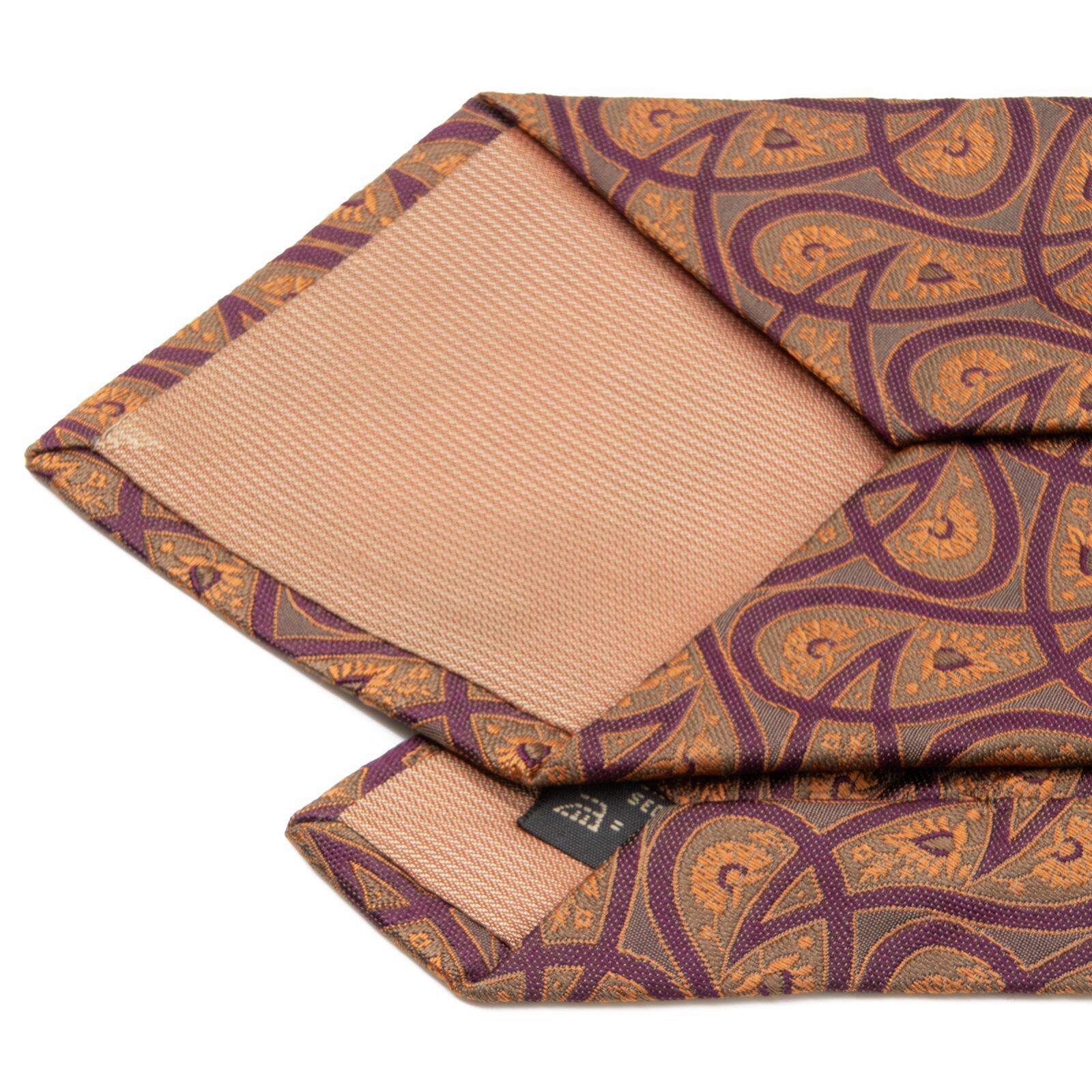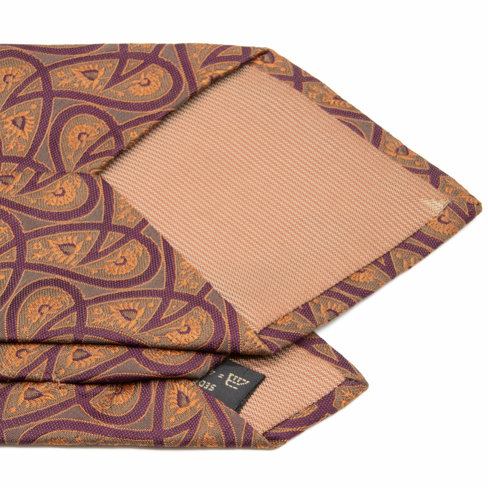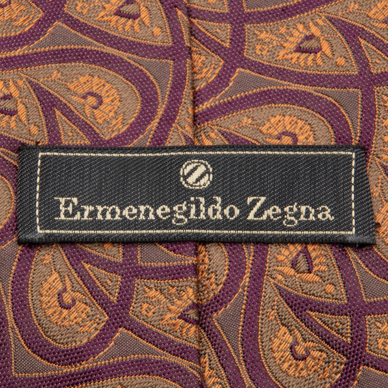 送料無料 ゼニア ネクタイ ジャガードタイ シルク オレンジ 紫 グレー ビジネス ペイズリー 光沢 マーク ブランド 珍しい イタリア製 P063