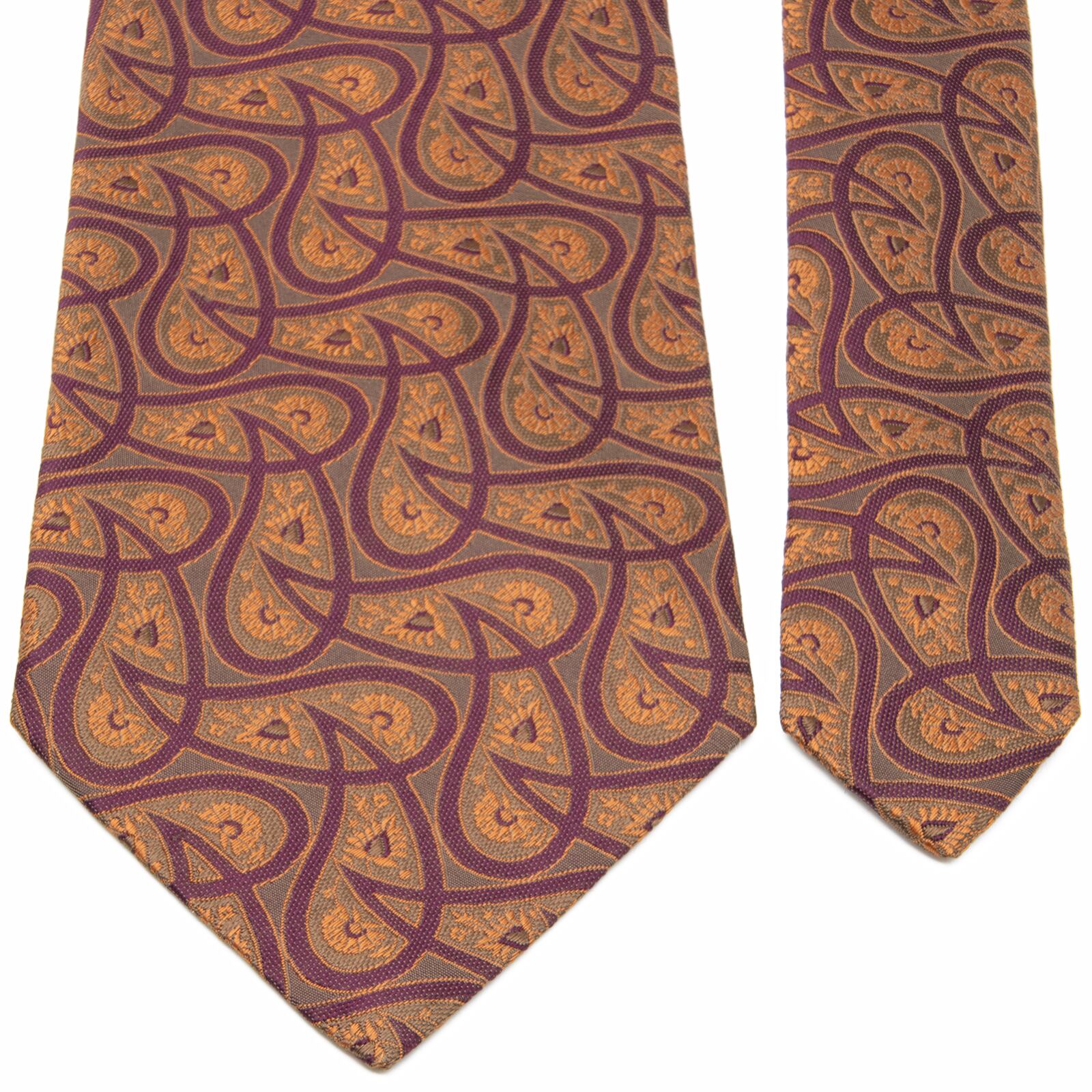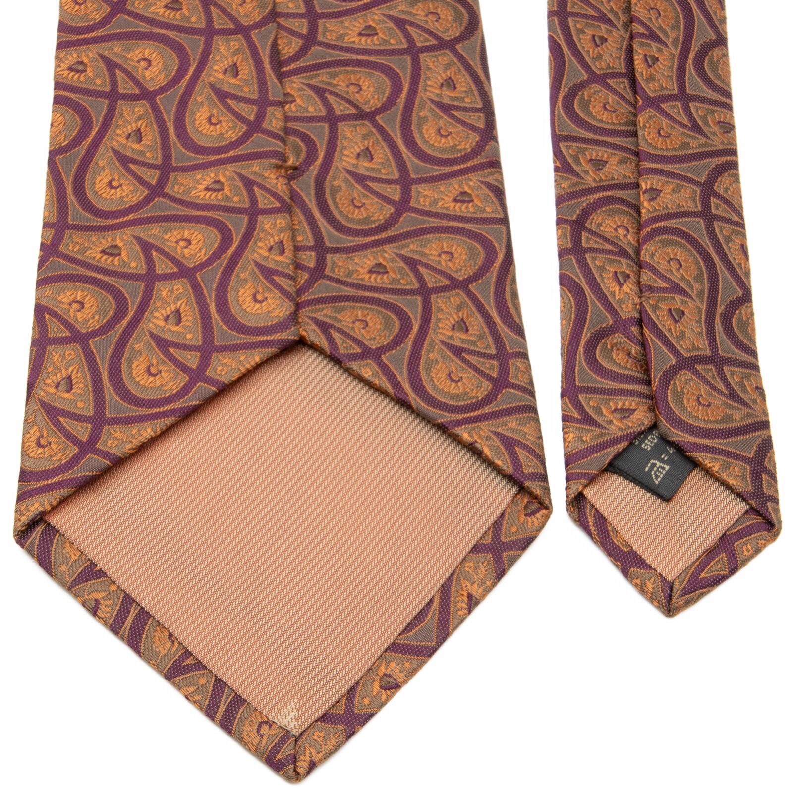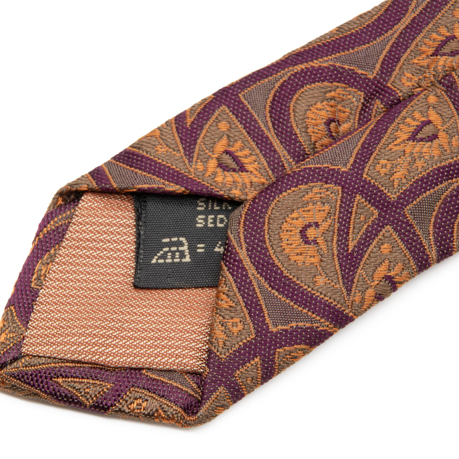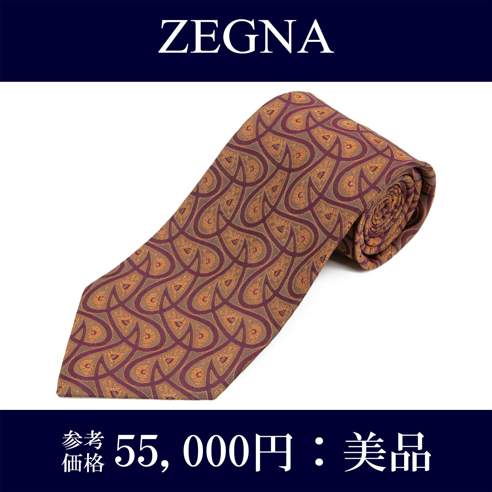 送料無料 ゼニア ネクタイ ジャガードタイ シルク オレンジ 紫 グレー ビジネス ペイズリー 光沢 マーク ブランド 珍しい イタリア製 P063