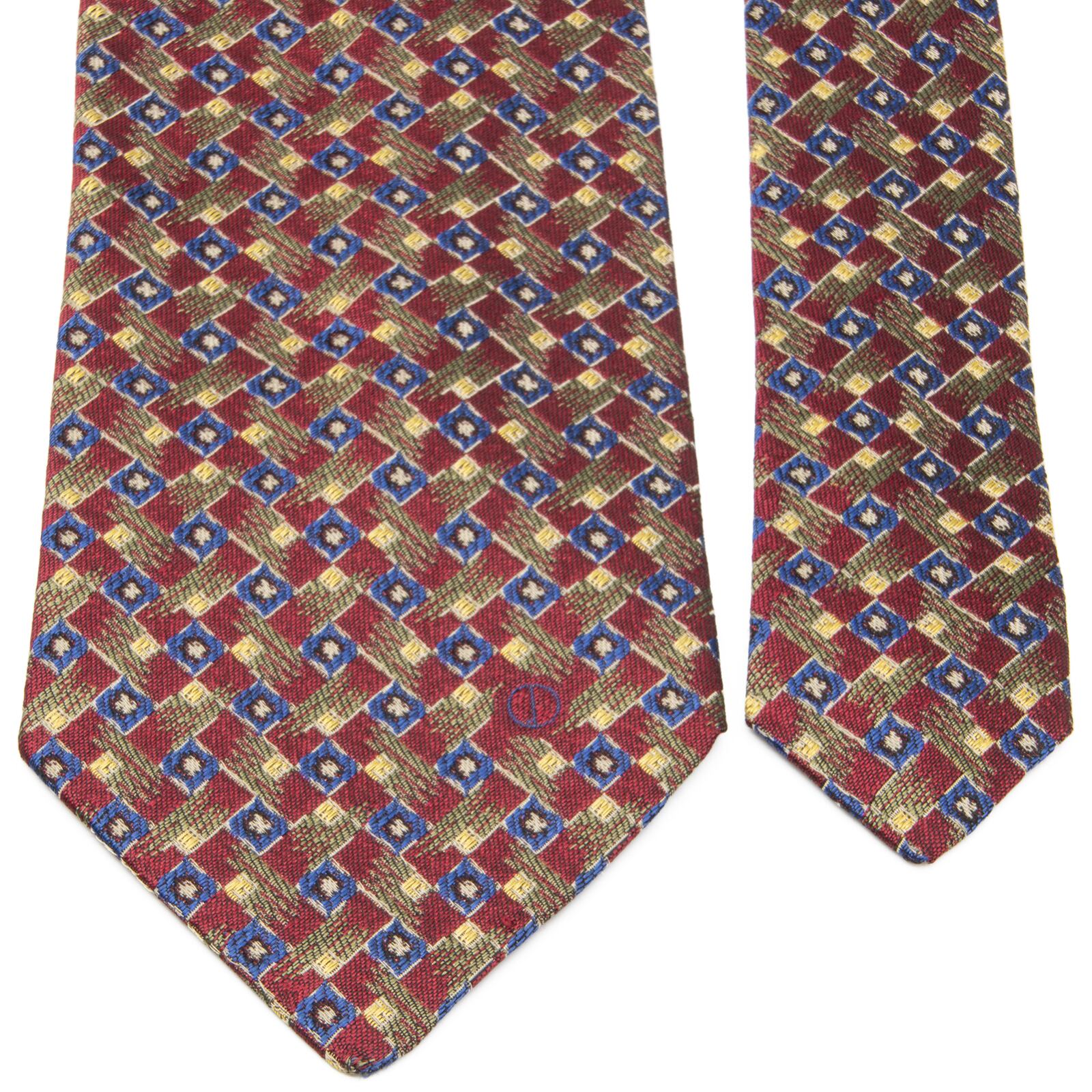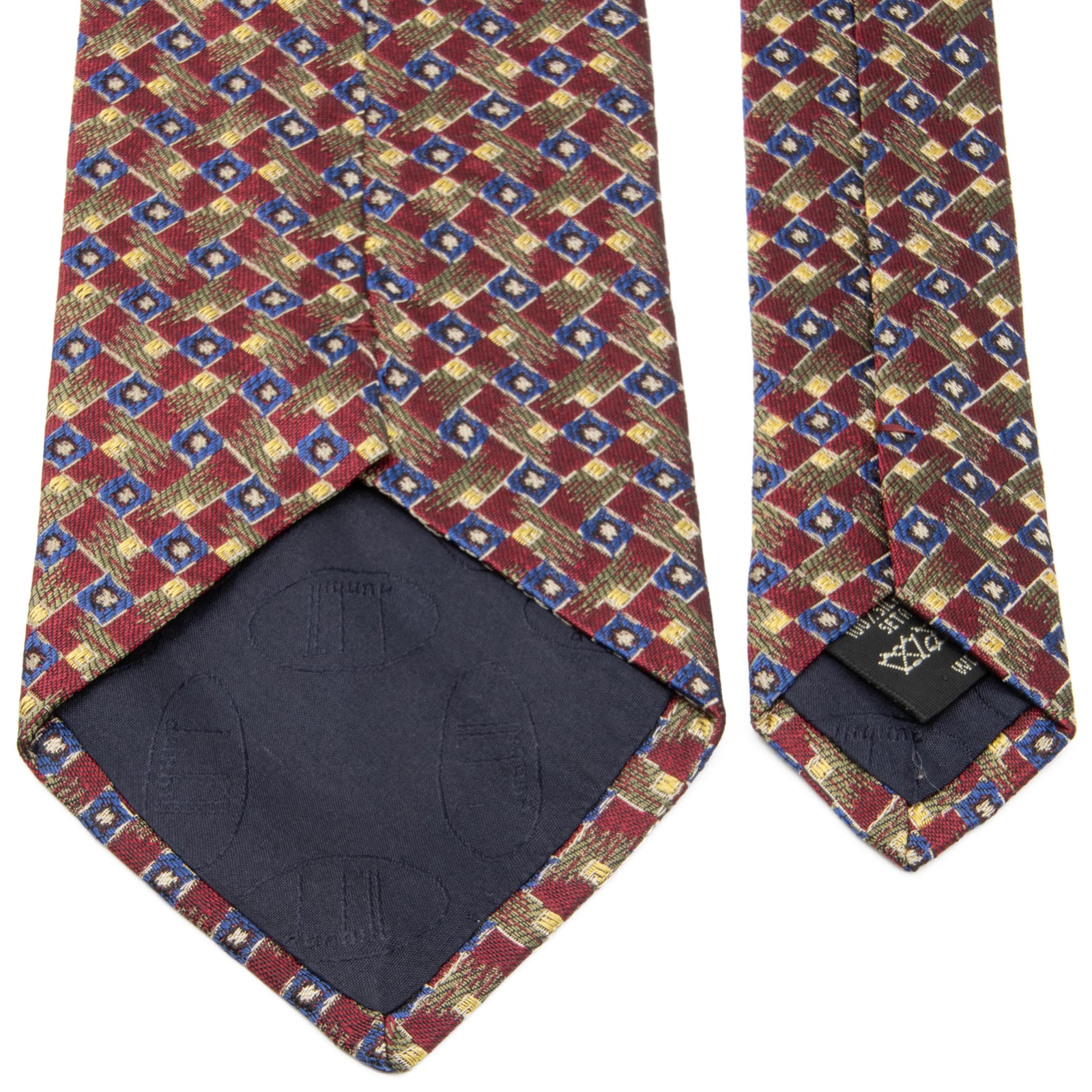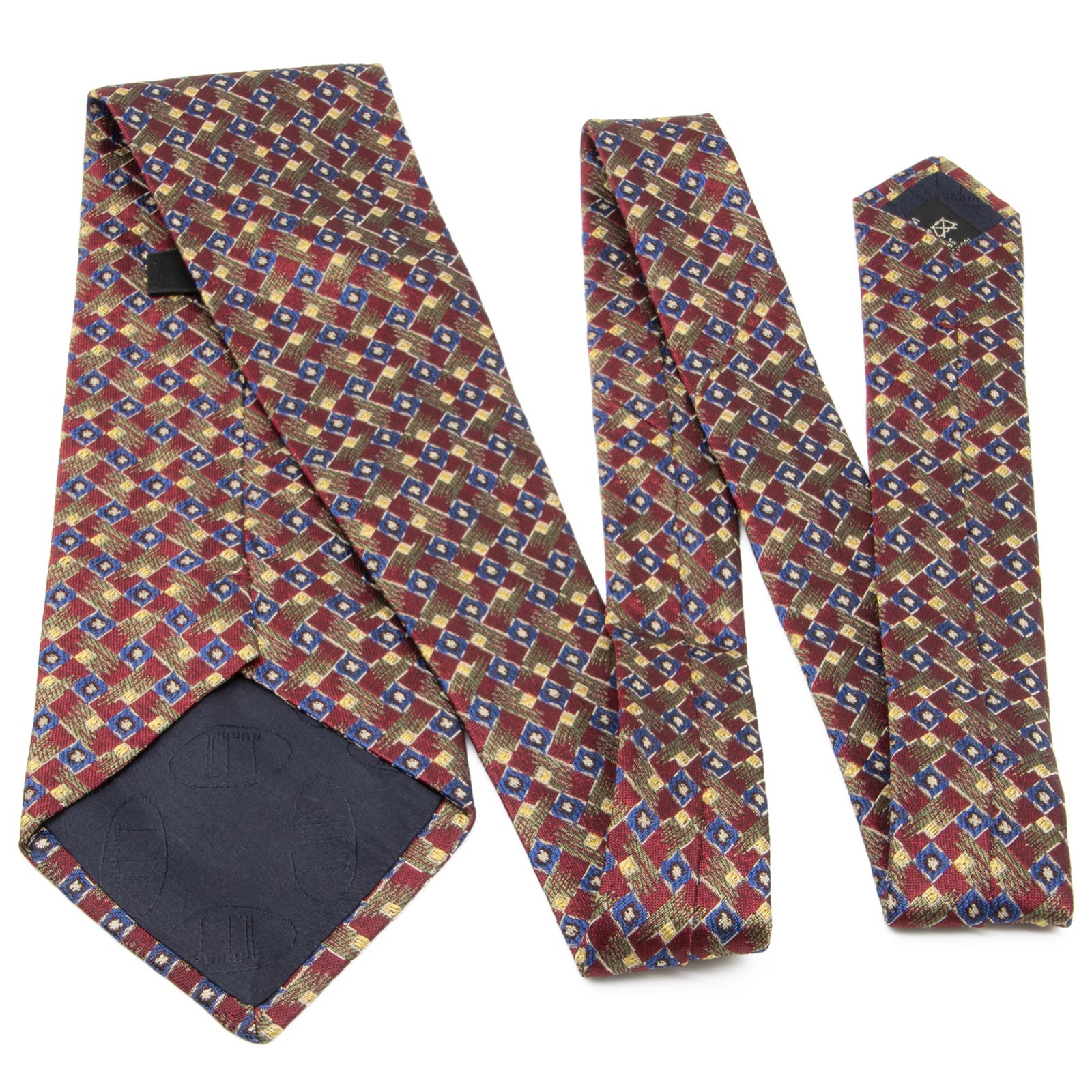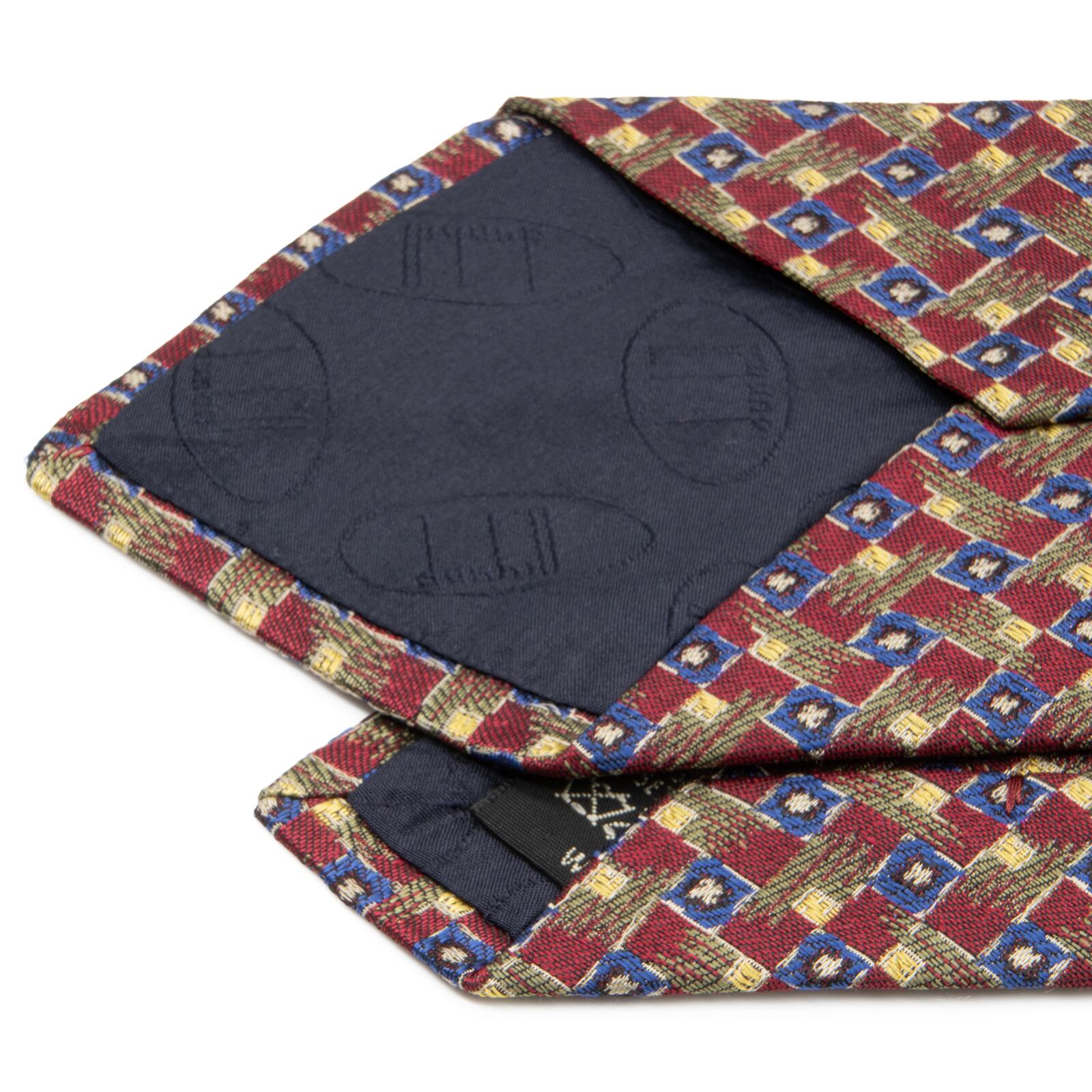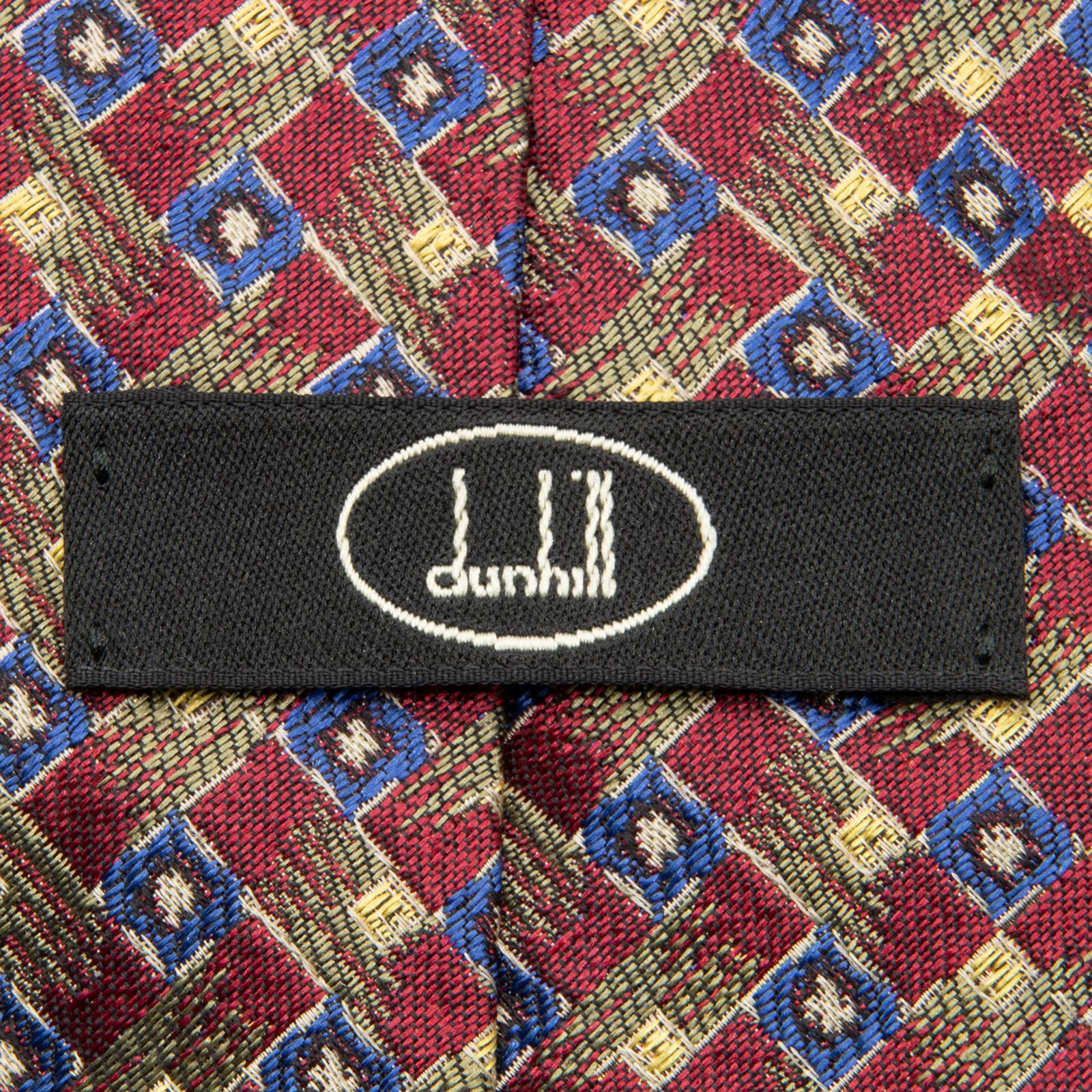 送料無料 ダンヒル ネクタイ 新品同様 ジャガードタイ シルク 赤 レッド 青 ブルー 緑 黄色 ビジネス マーク 珍しい イギリス製 綺麗 P067