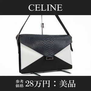 本物 送料無料 セリーヌ ショルダーバッグ レディース パイソン ダイヤモンド グレー 白 黒 蛇の革 肩掛け パーティー ロゴ 鞄 バック L188