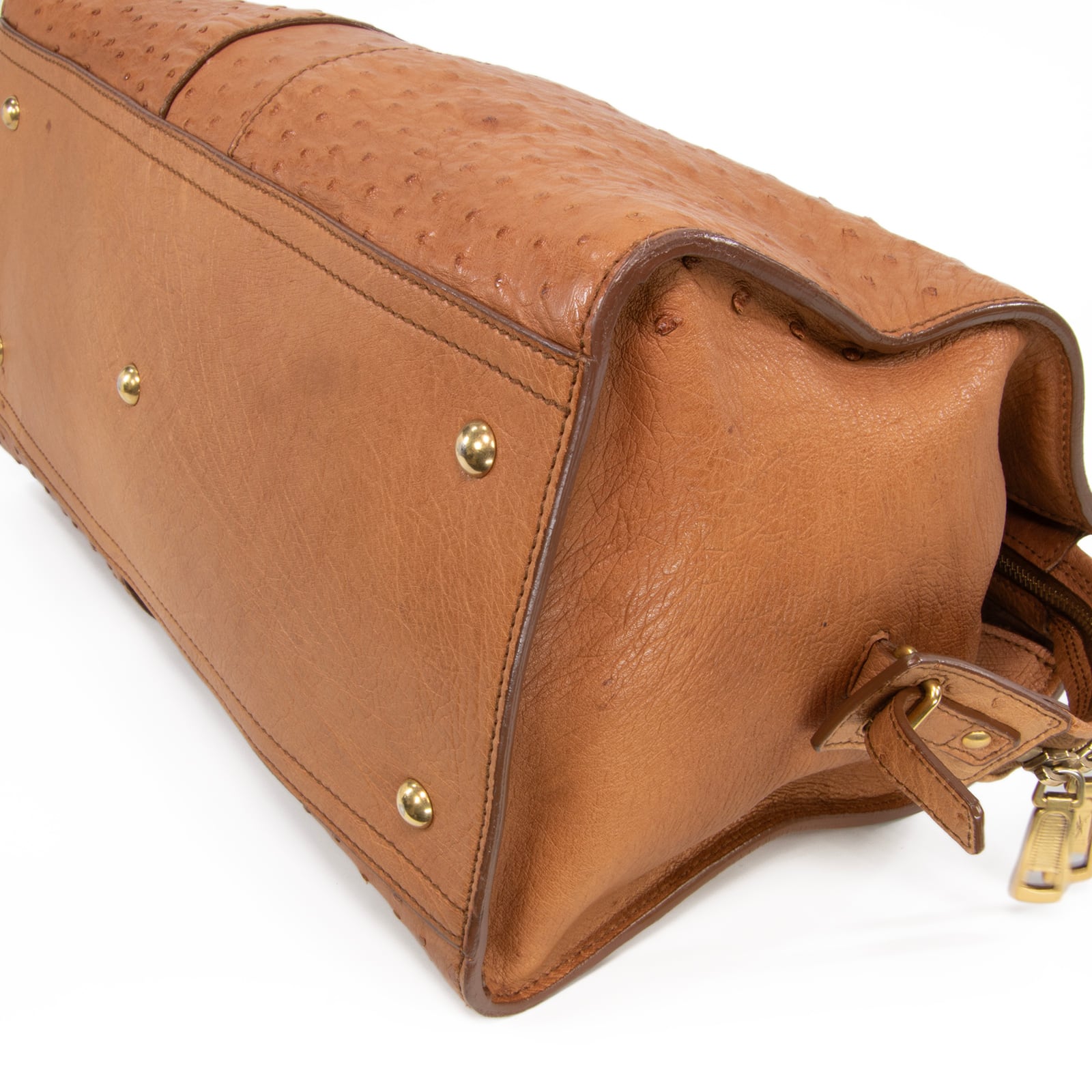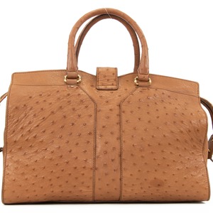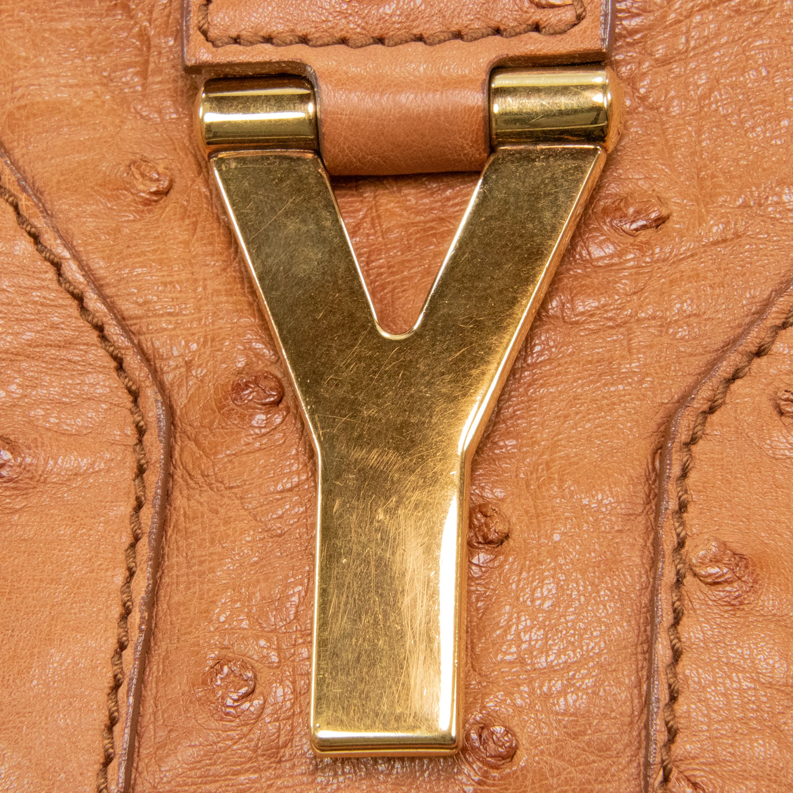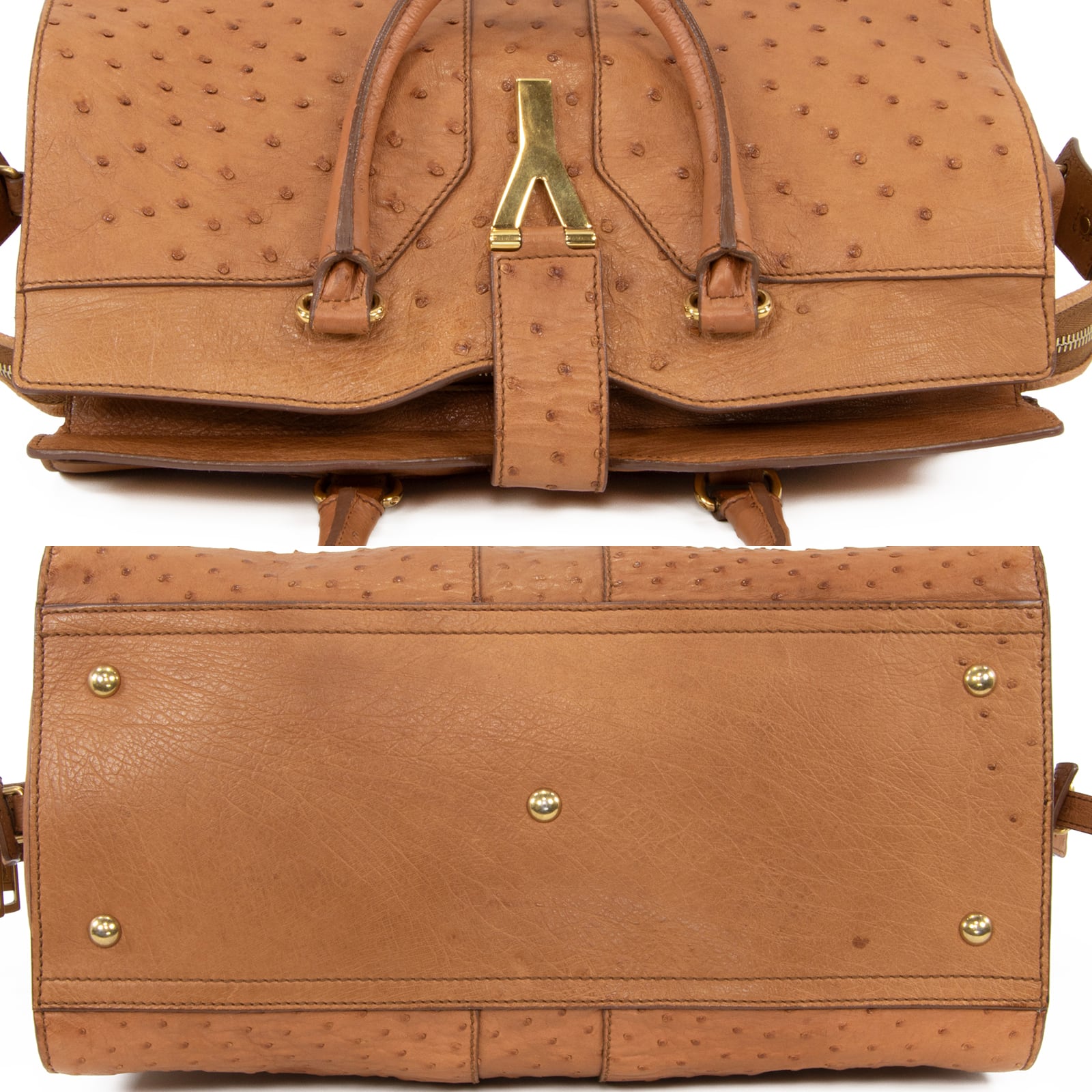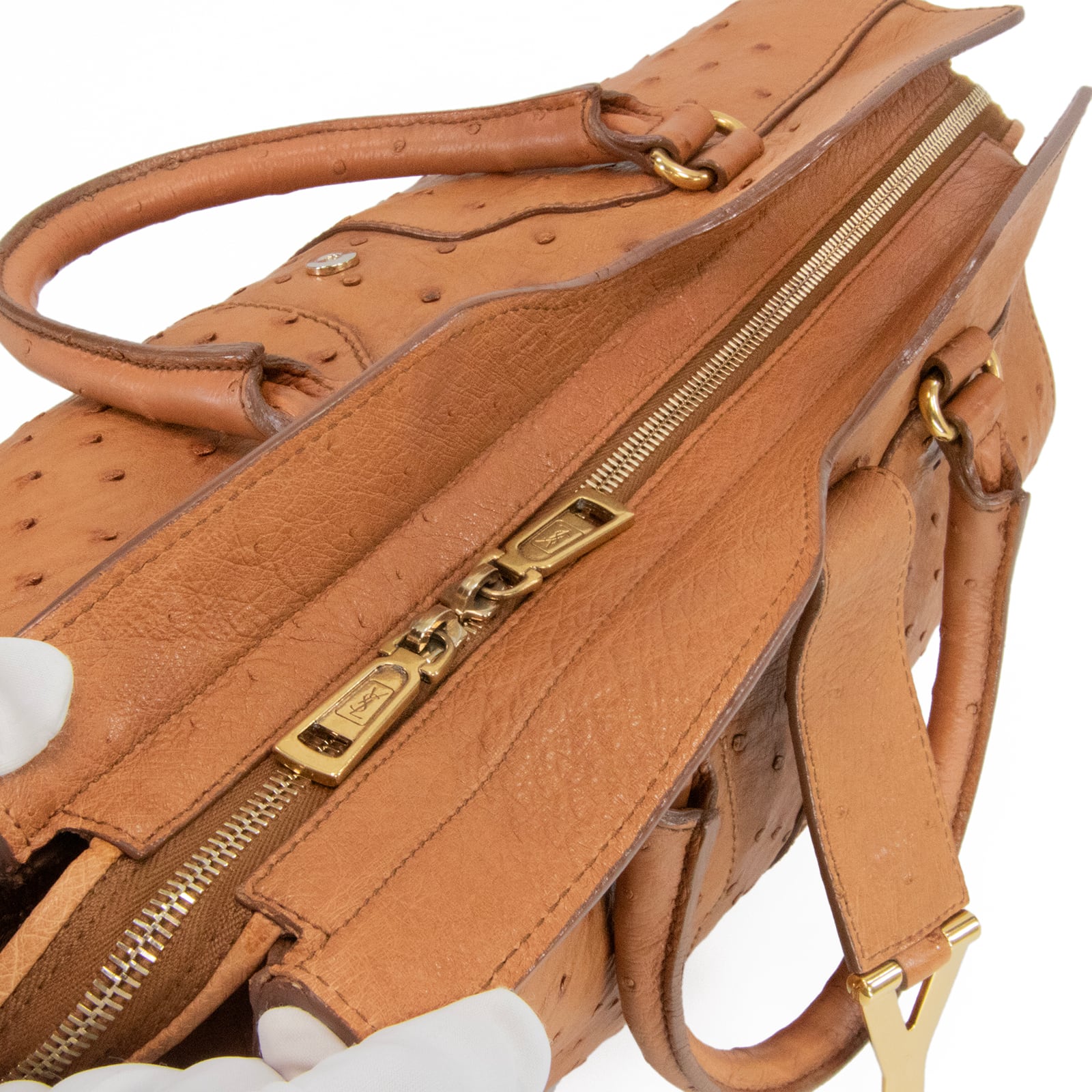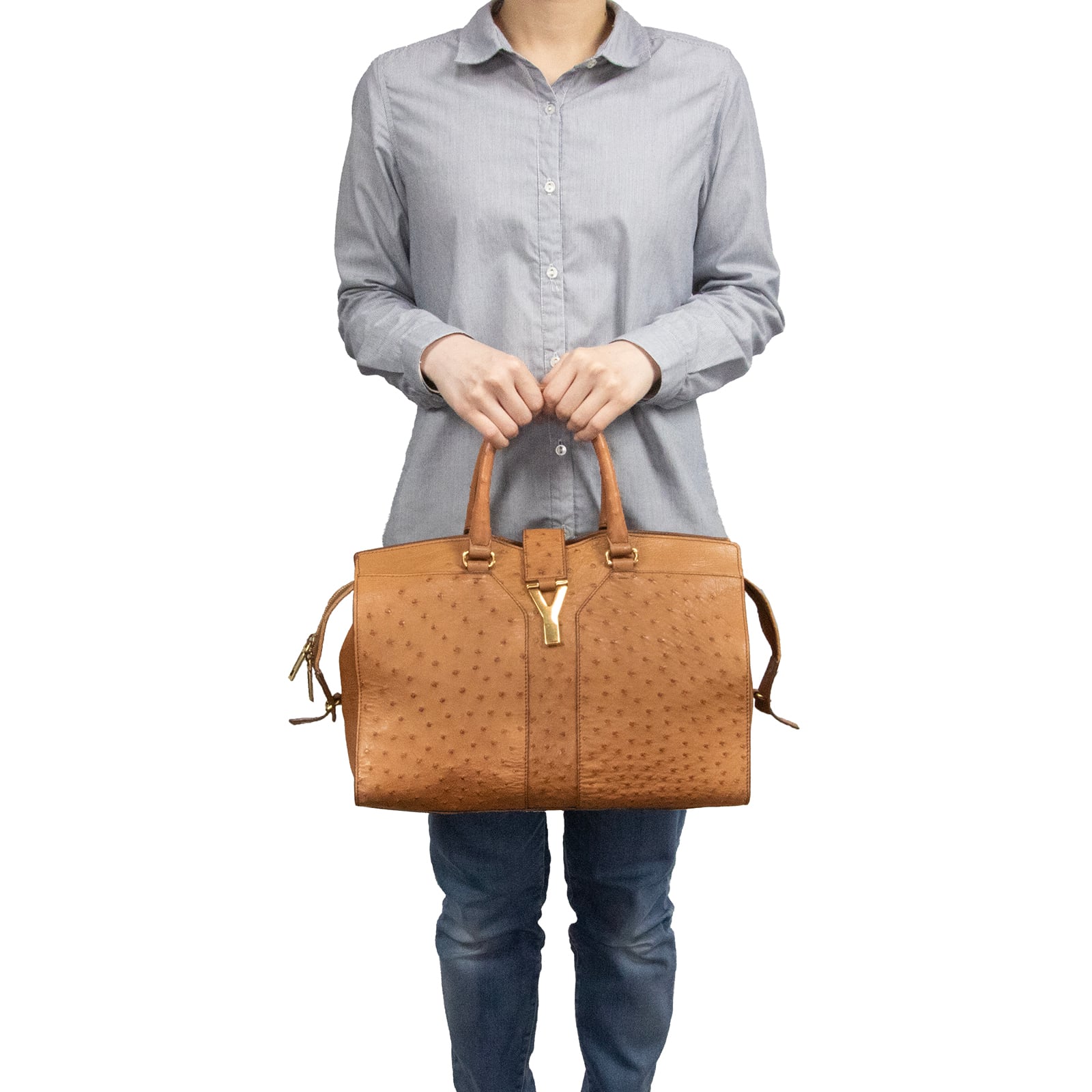 本物 送料無料 サンローラン ハンドバッグ メンズ レディース オーストリッチ カバス シック ラージ 茶色 YSLロゴ マーク 鞄 バック I235