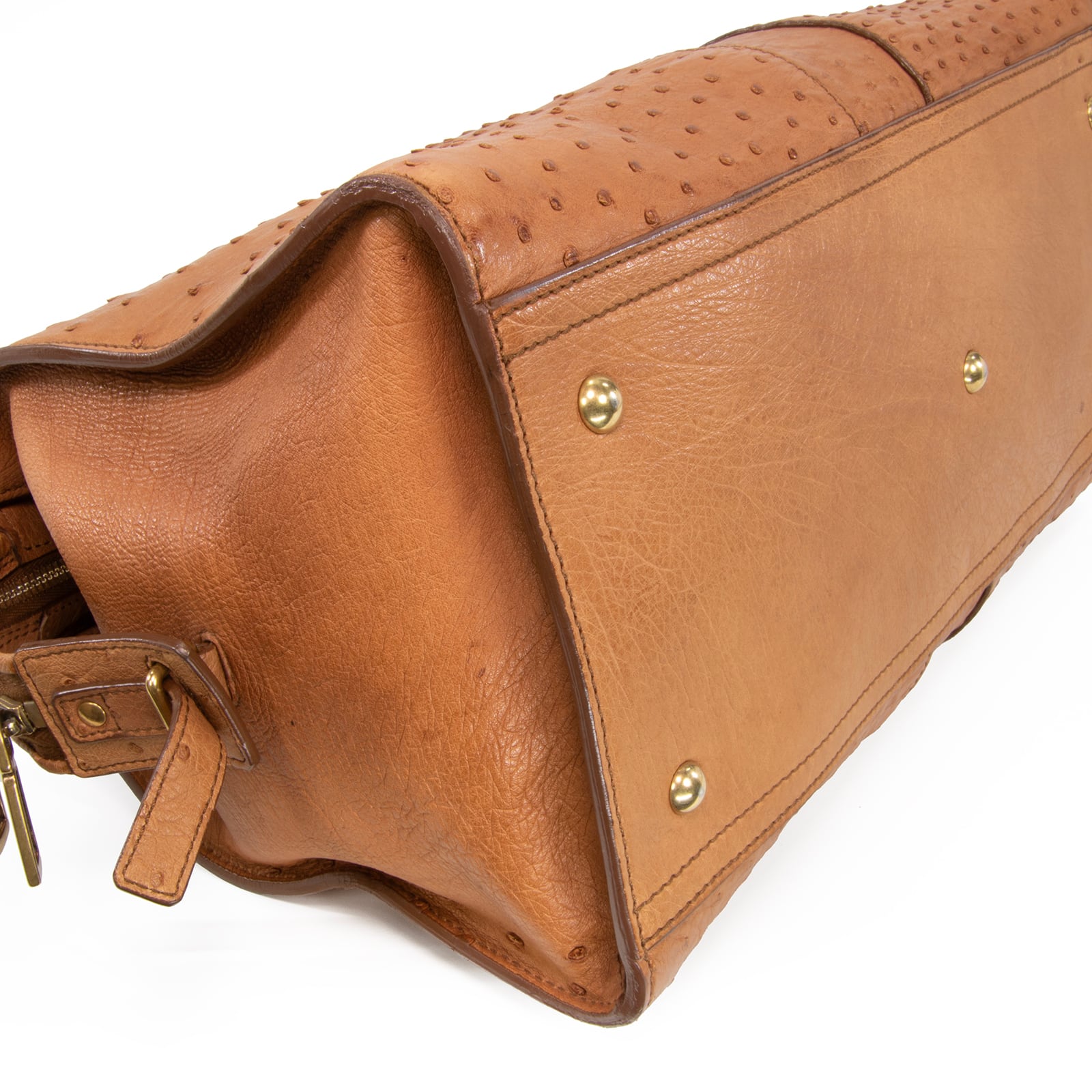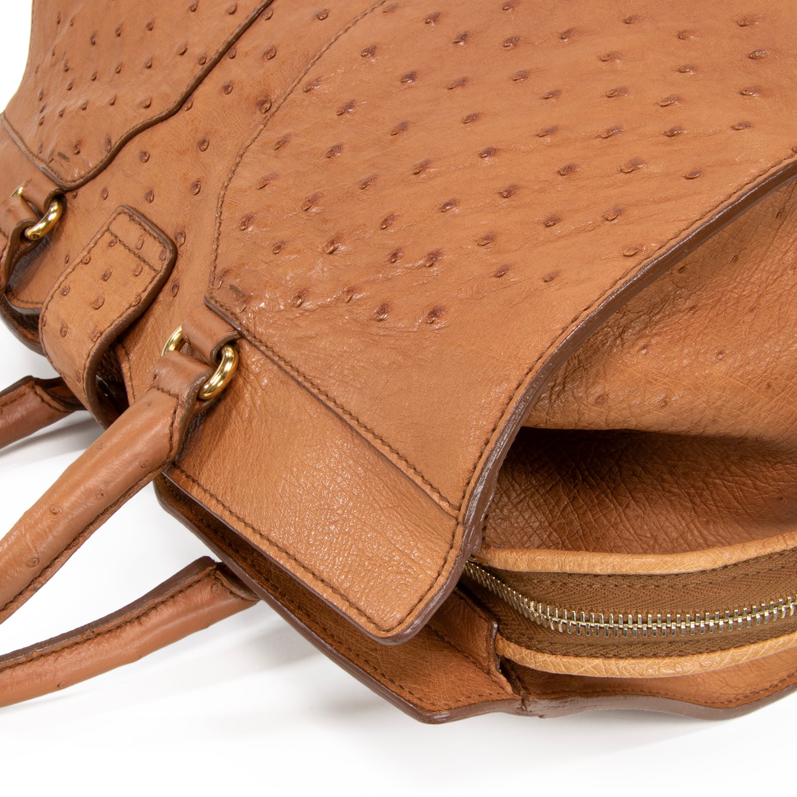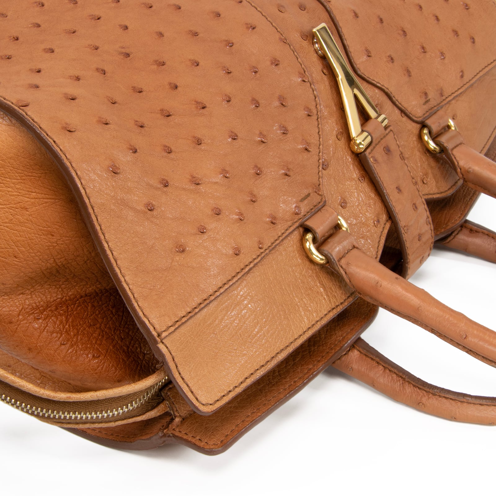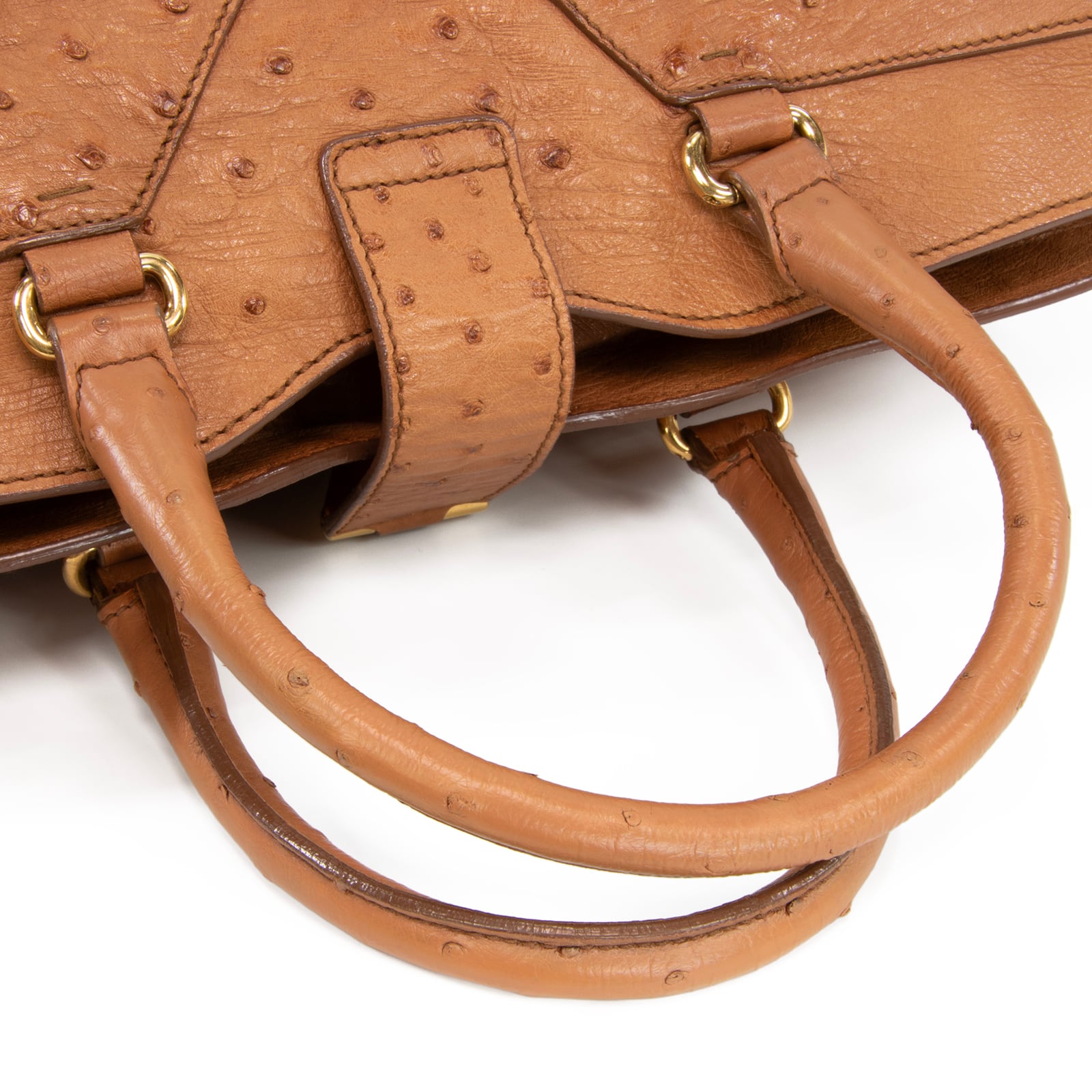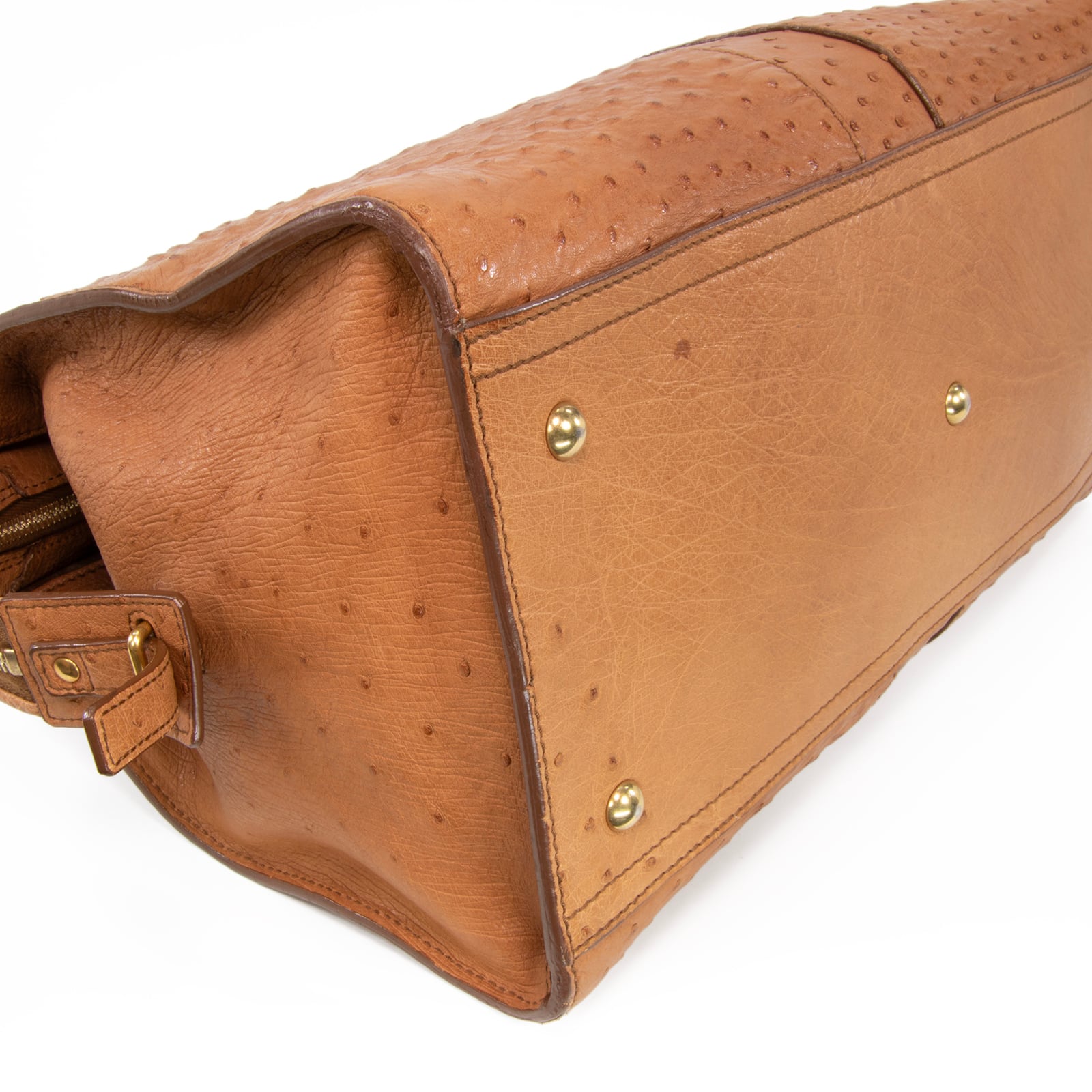 本物 送料無料 サンローラン ハンドバッグ メンズ レディース オーストリッチ カバス シック ラージ 茶色 YSLロゴ マーク 鞄 バック I235