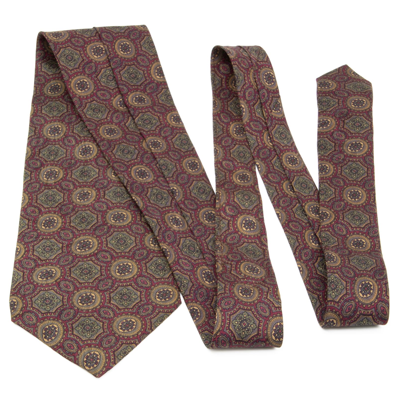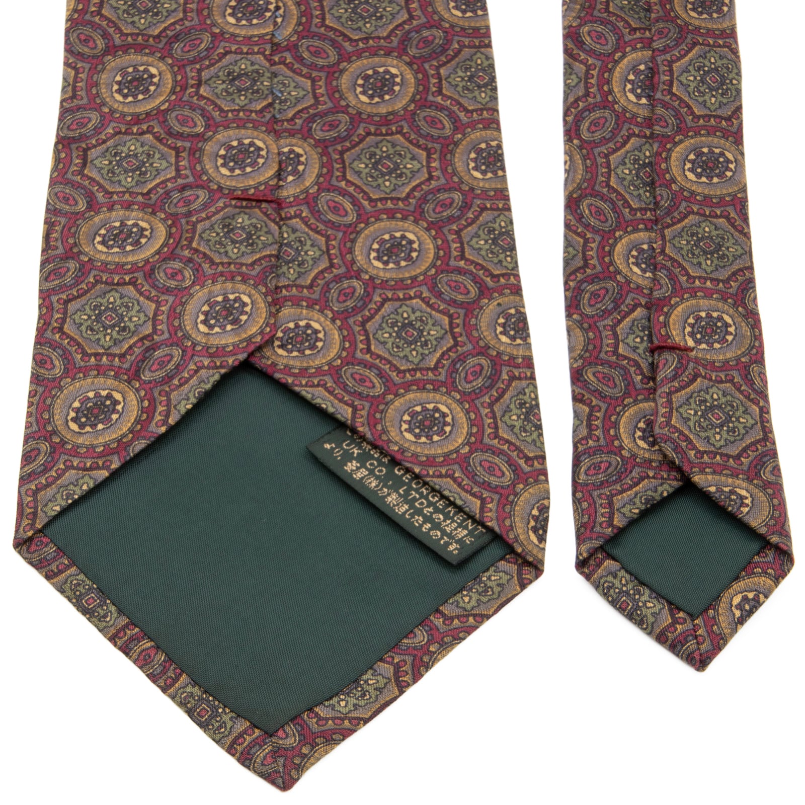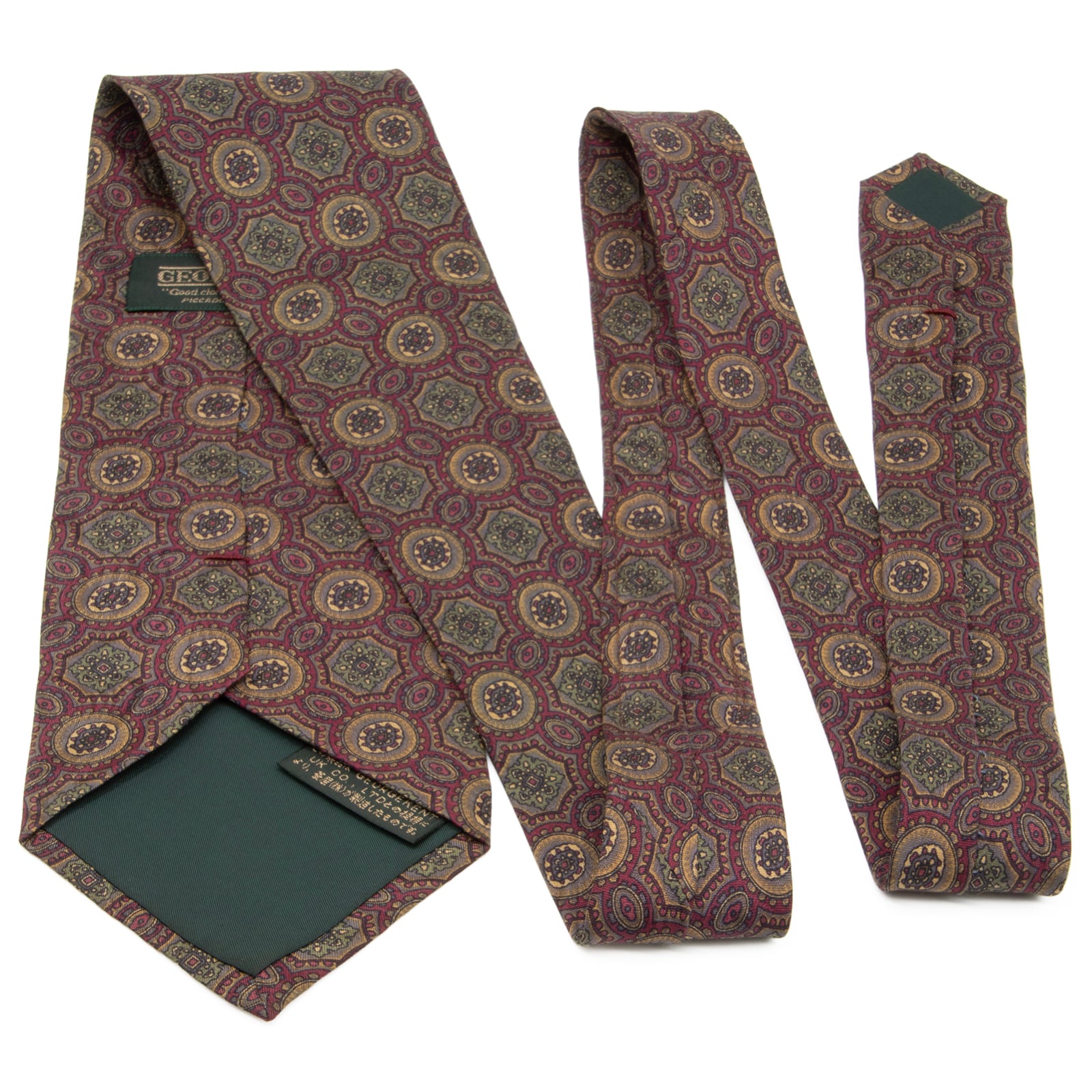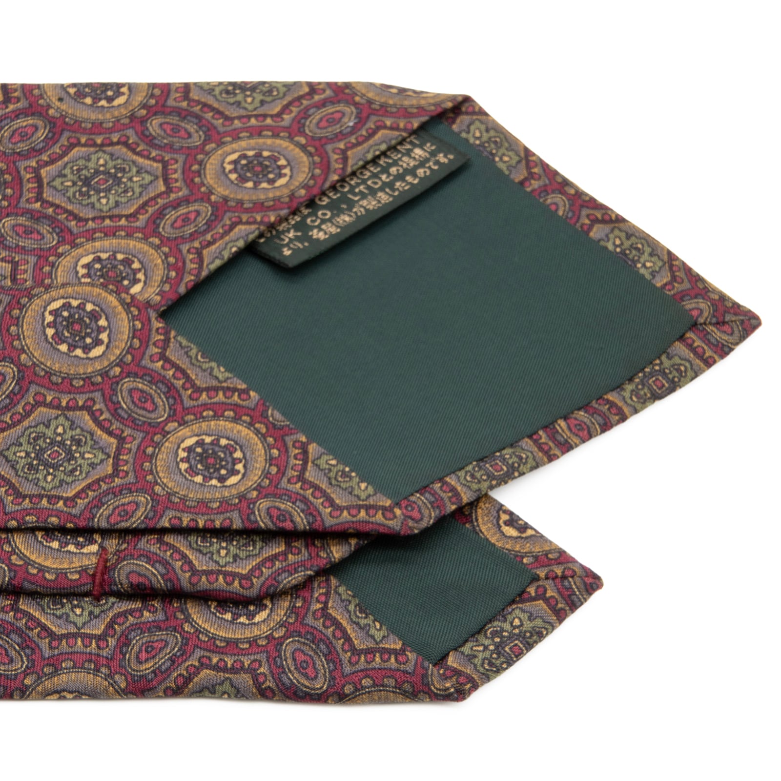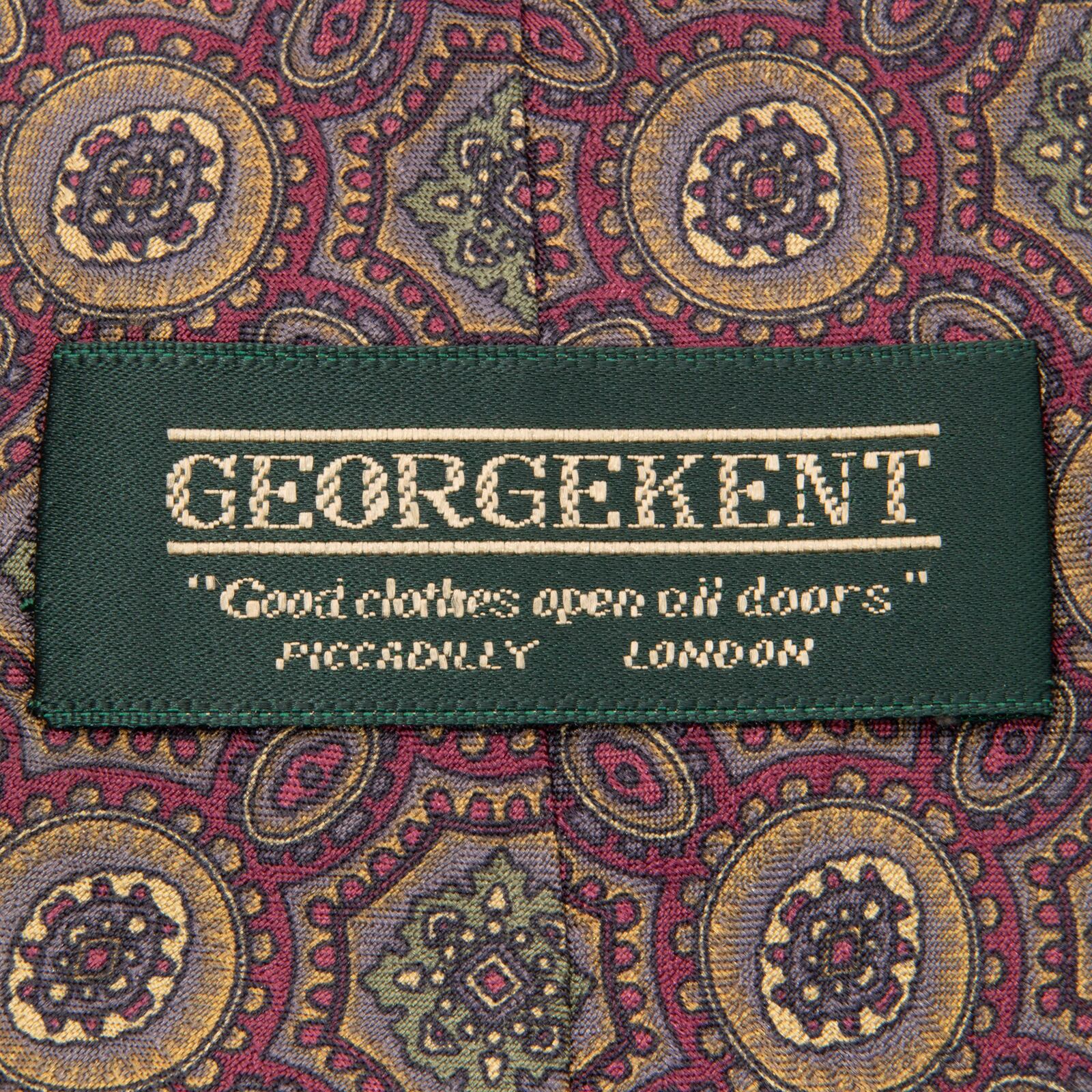 送料無料 ジョージケント ネクタイ 新品 シルク 赤 ボルドー 緑 グレーグリーン 黄土色 ビジネス エスニック 紋様 マーク ブランド N951