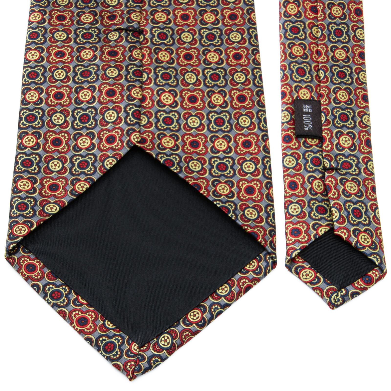 送料無料 Chief Officer ネクタイ 新品 シルク 青 ネイビーブルー グレー 赤 黄色 花 フラワー 紋様 マーク 光沢 ブランド おしゃれ N957