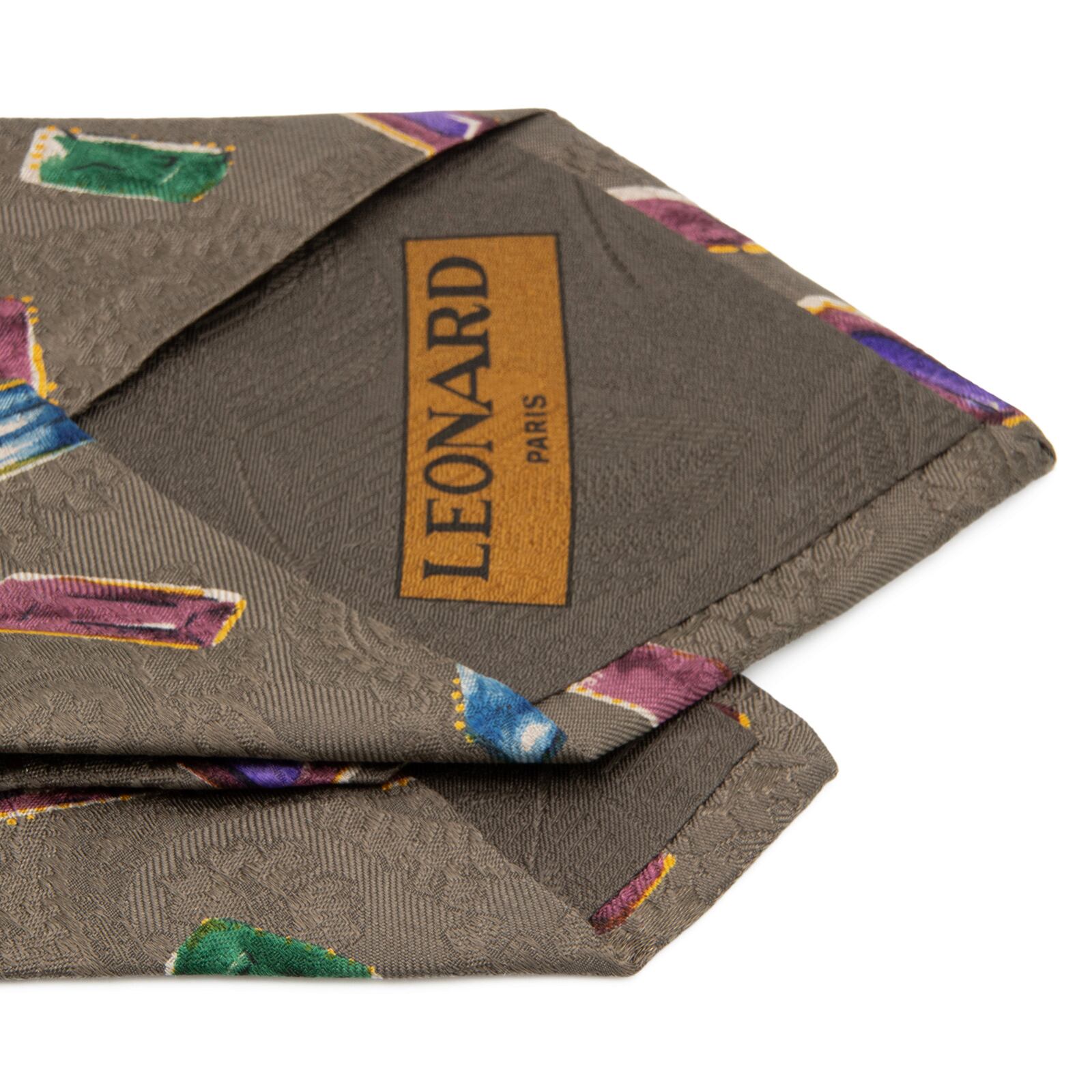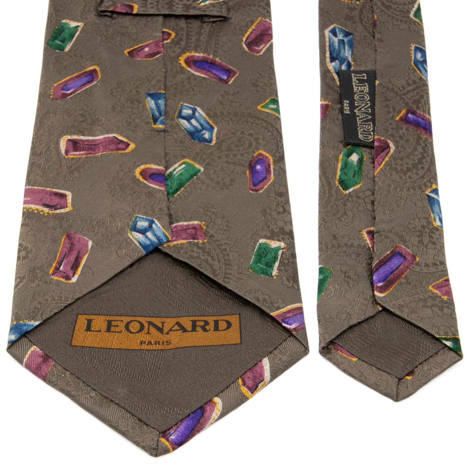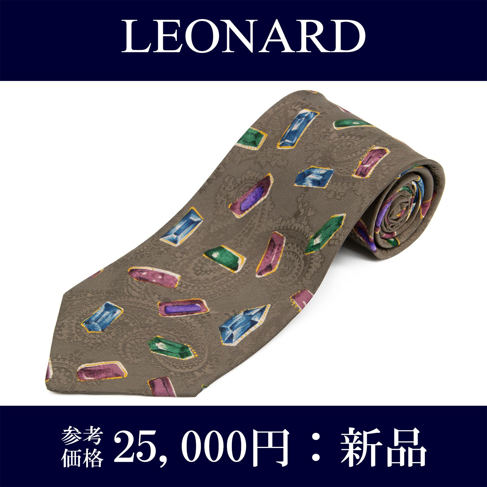 送料無料 レオナール ネクタイ レギュラータイ 新品 シルク グレーベージュ 紫 青 緑 宝石 ペイズリー 光沢 ブランド イタリア製 綺麗 N807