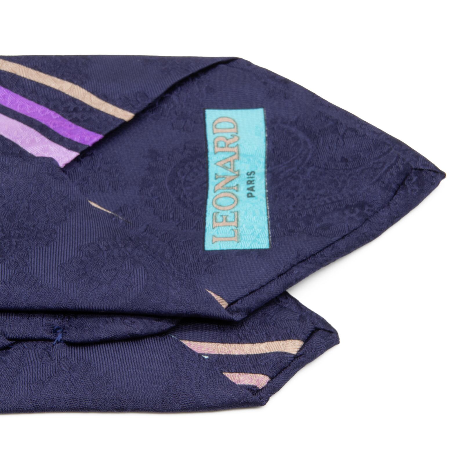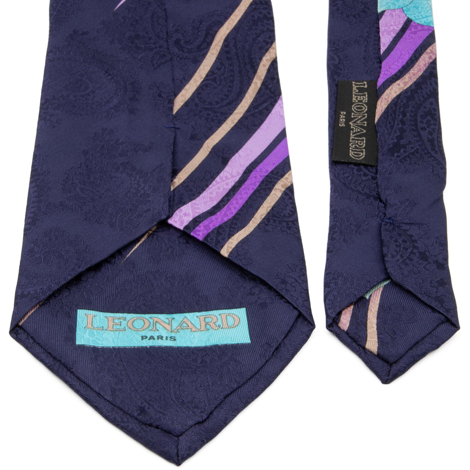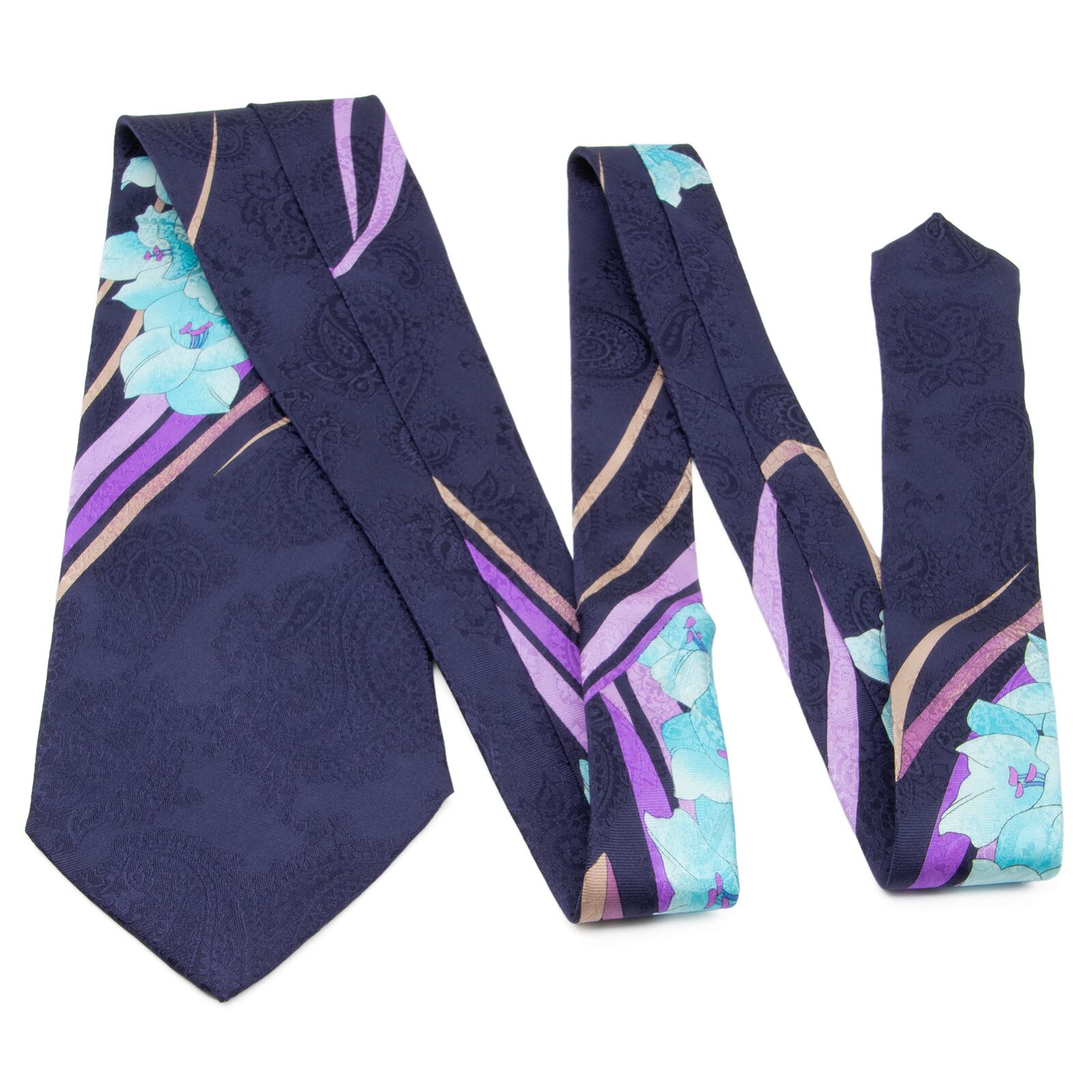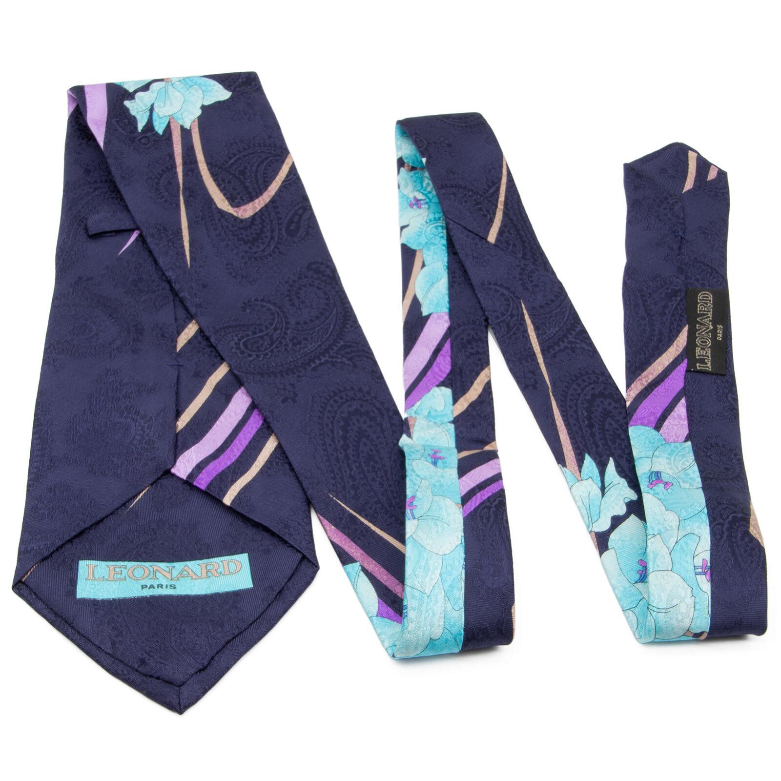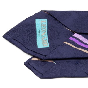 送料無料 レオナール ネクタイ レギュラータイ 新品 シルク ネイビーブルー 水色 紫 花 ペイズリー 光沢 ブランド 珍しい イタリア製 N857