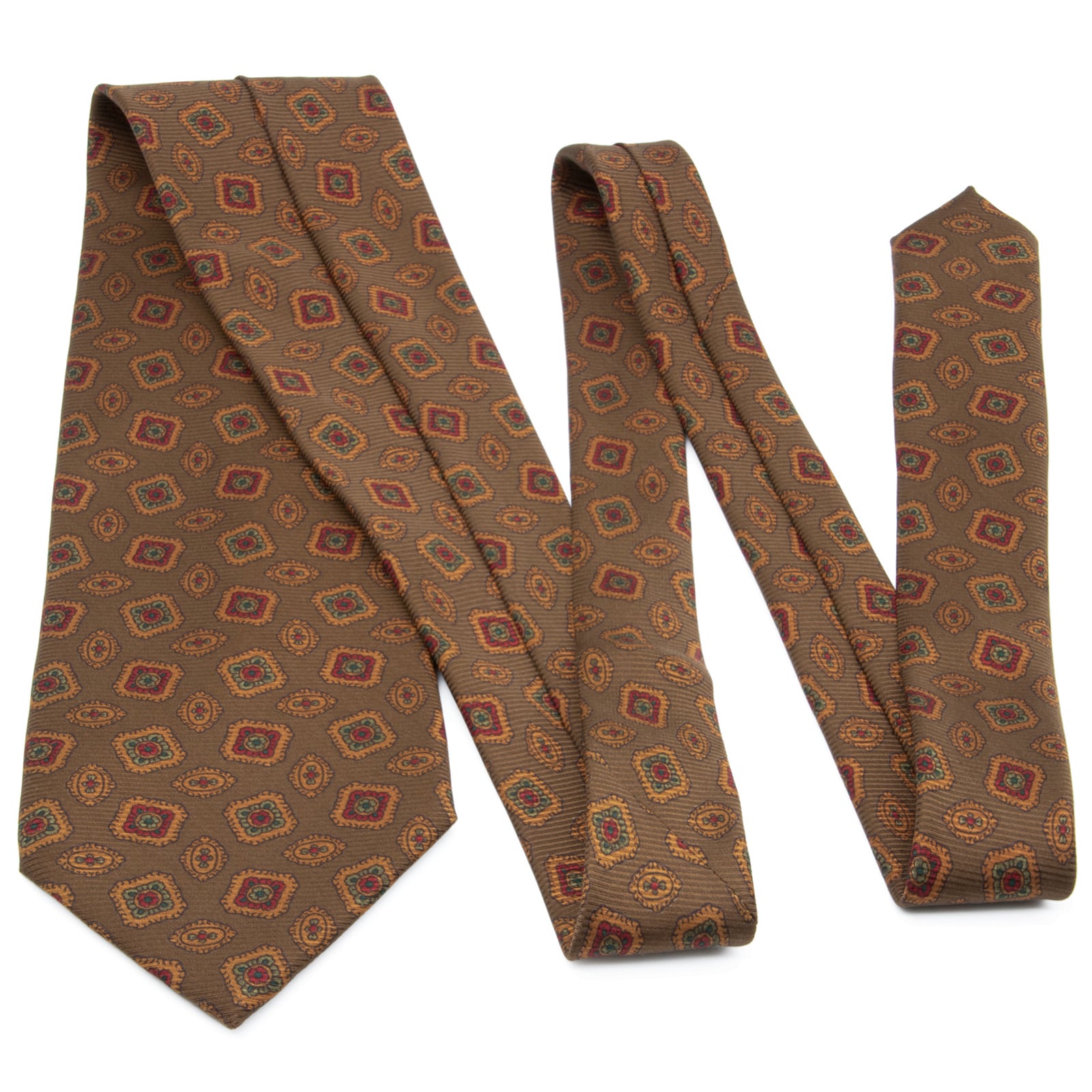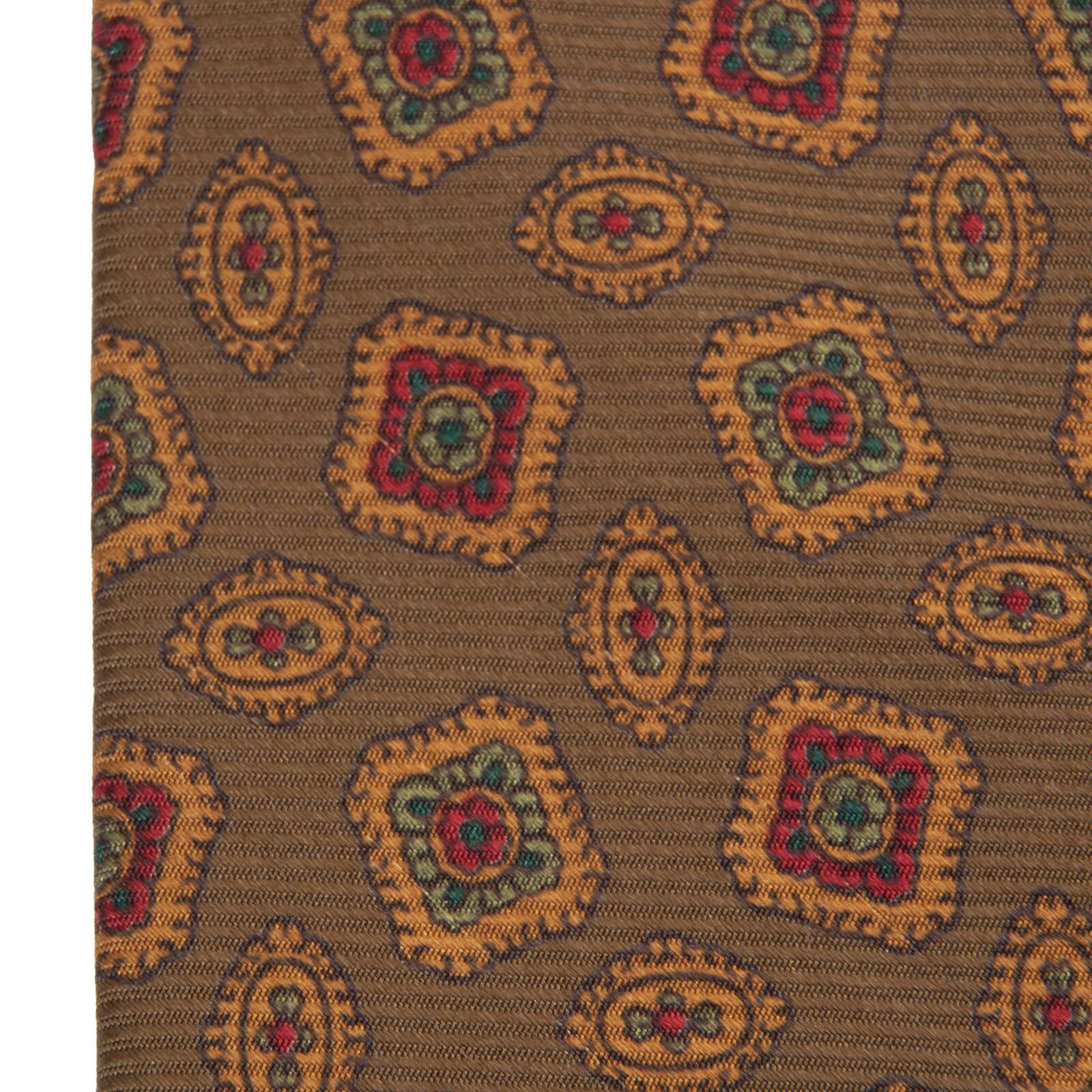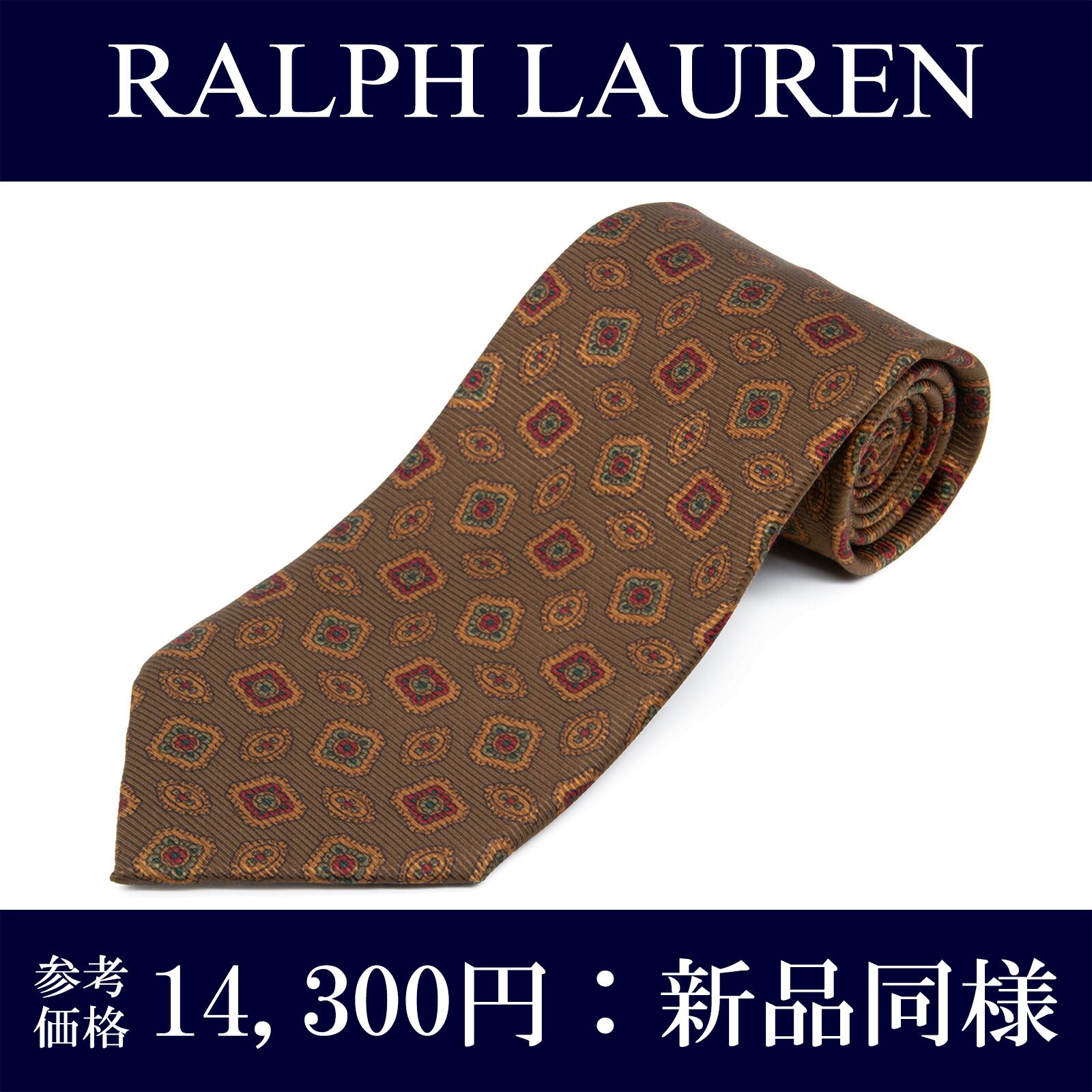 送料無料 ラルフローレン ネクタイ レギュラータイ 新品同様 シルク 茶色 ボルドー オレンジ 紋様 光沢 花 フラワー マーク ブランド N930