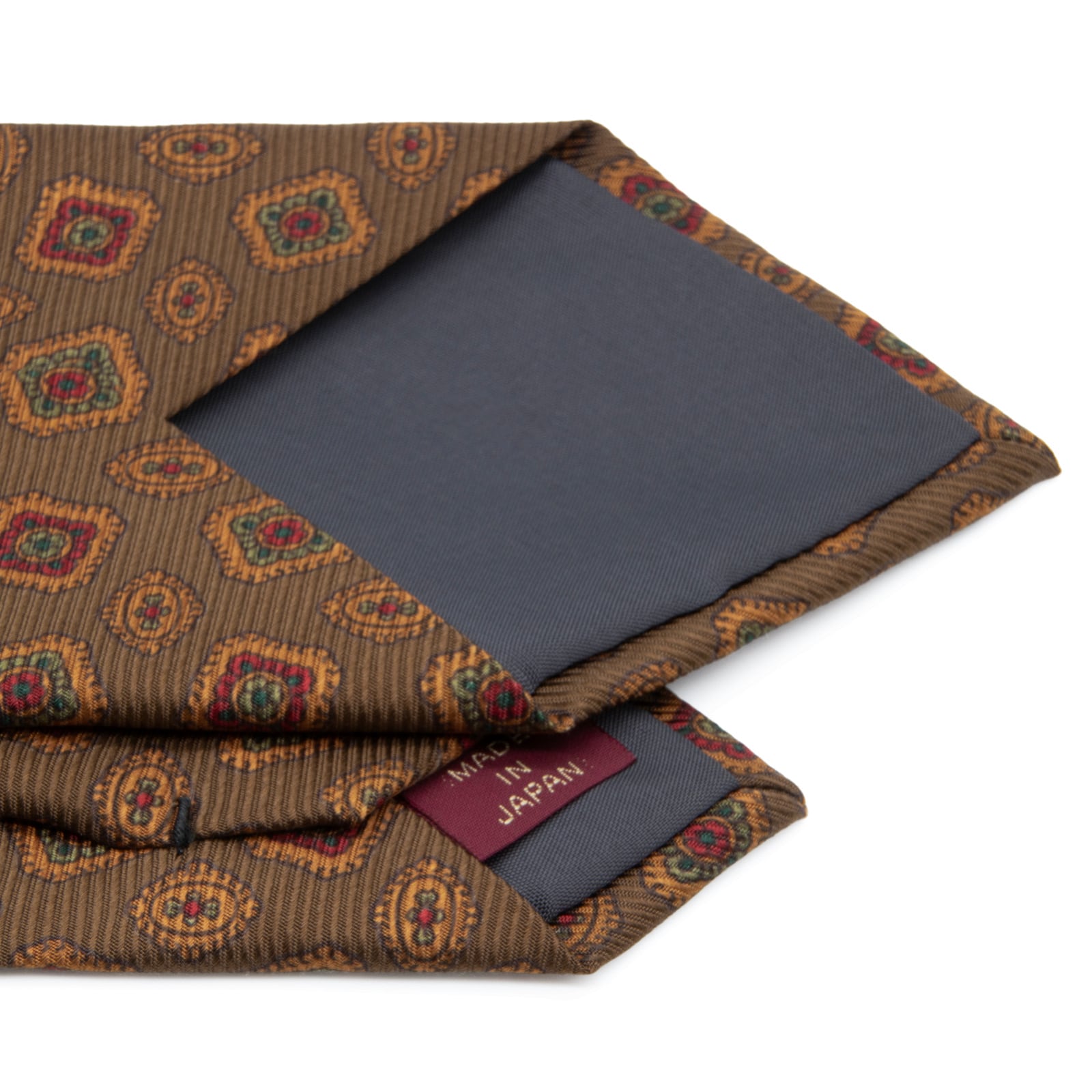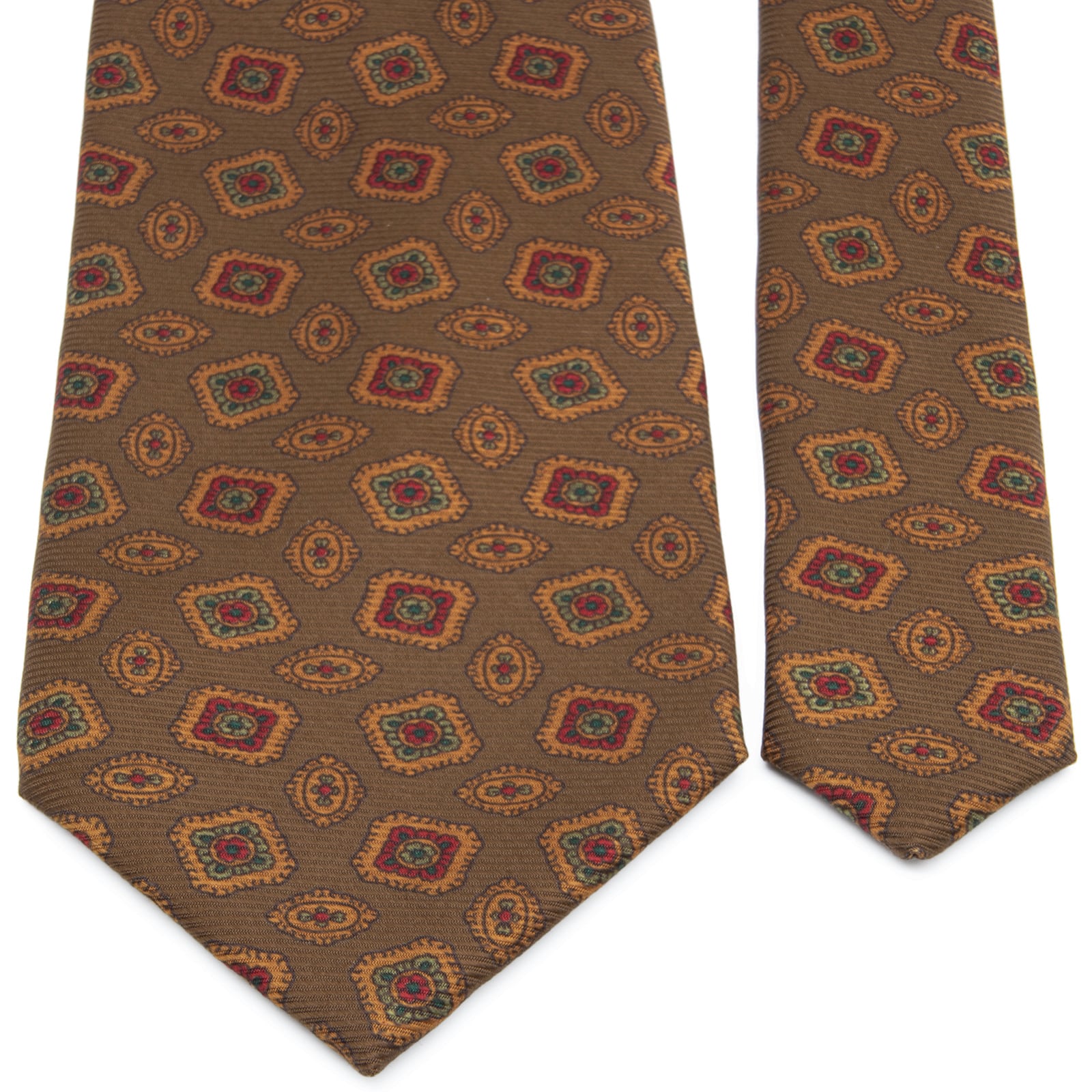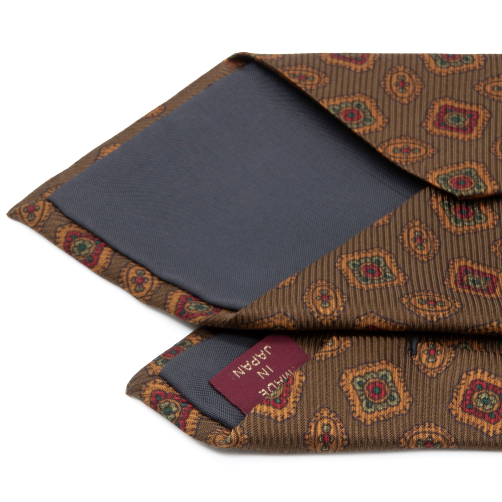 送料無料 ラルフローレン ネクタイ レギュラータイ 新品同様 シルク 茶色 ボルドー オレンジ 紋様 光沢 花 フラワー マーク ブランド N930