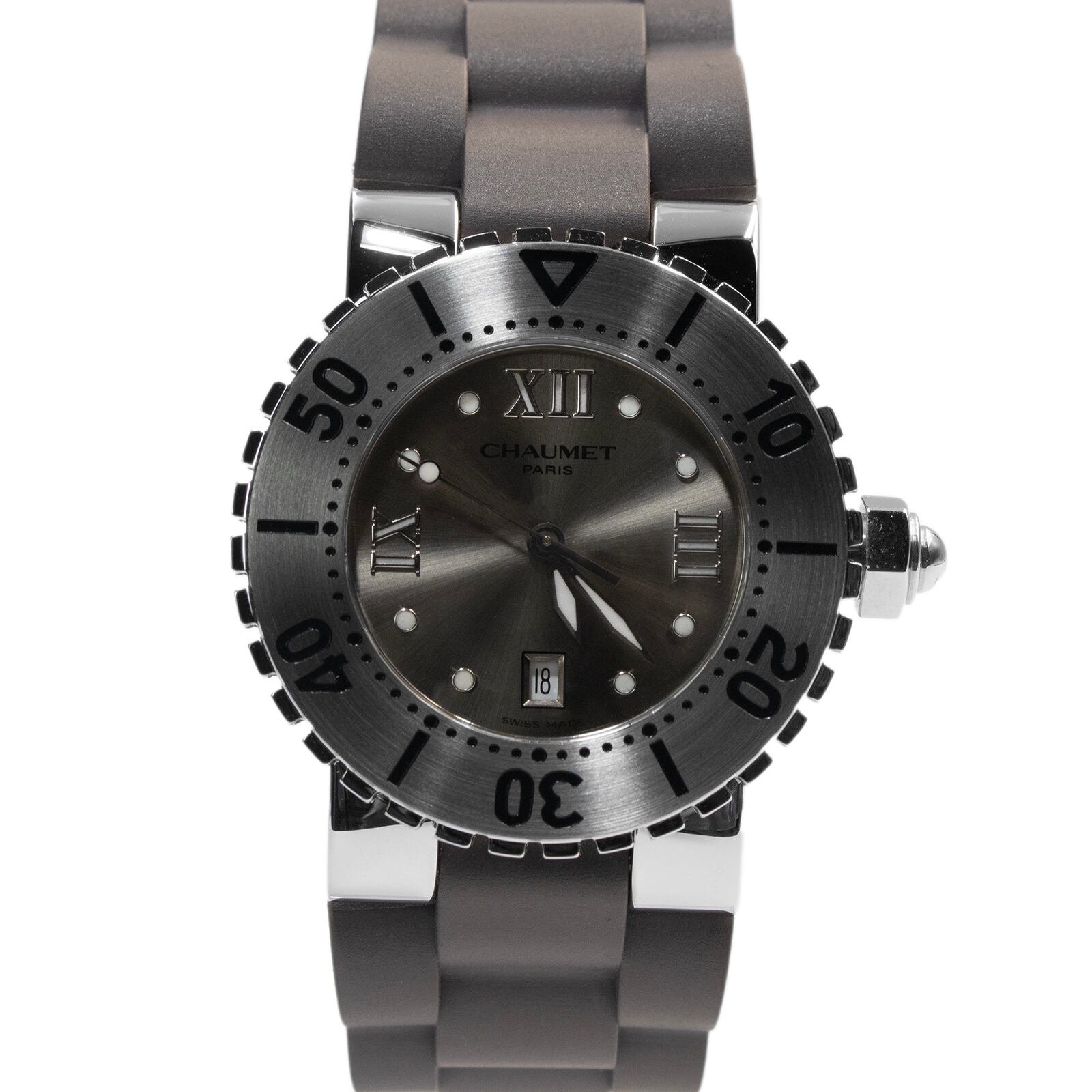 送料無料 ショーメ 腕時計 新品同様 レディース クラスワン メタリックグレー 珍しい レアカラー 目立つ ロゴ ブランド スイス製 綺麗 Q108