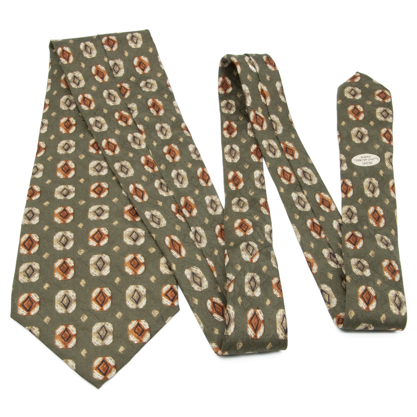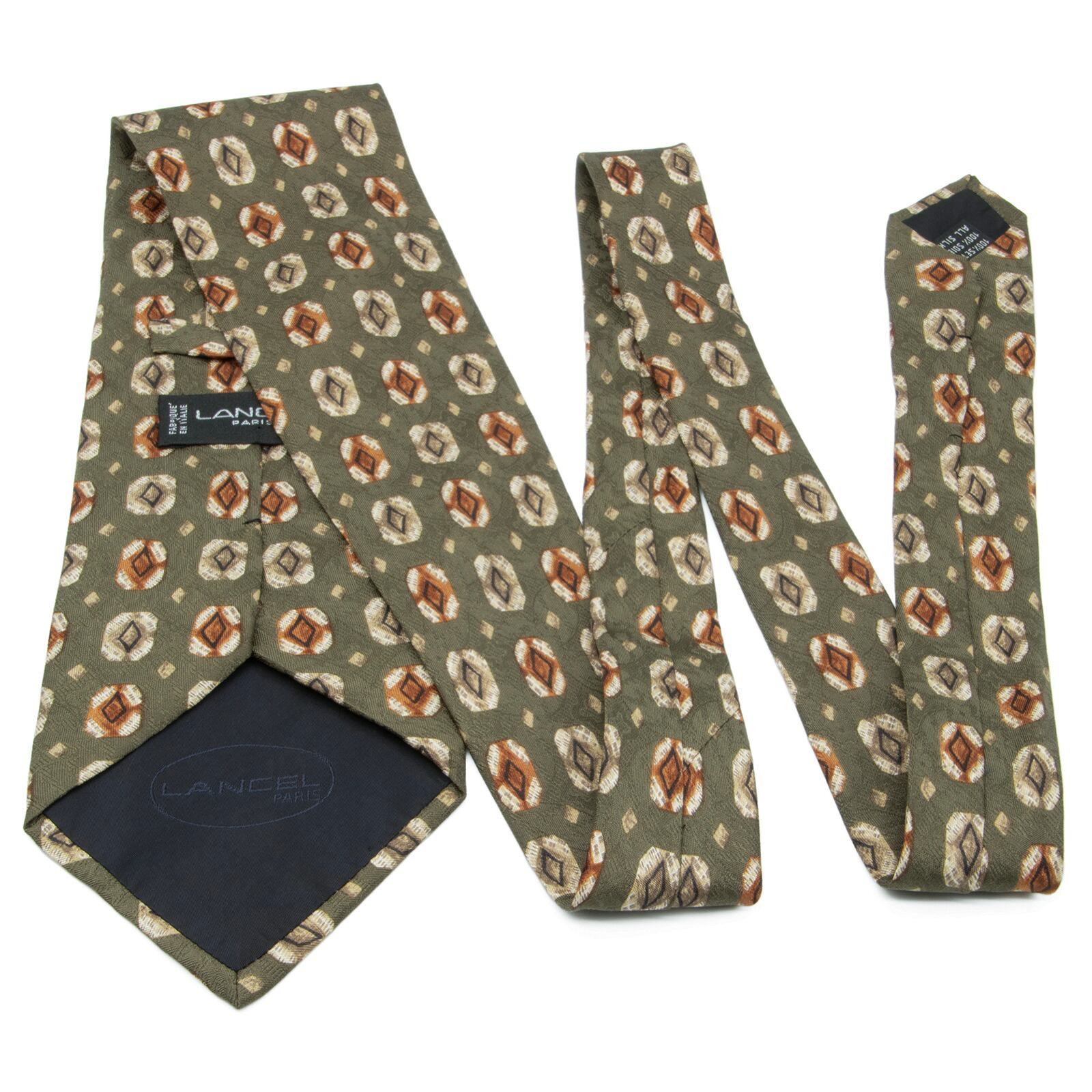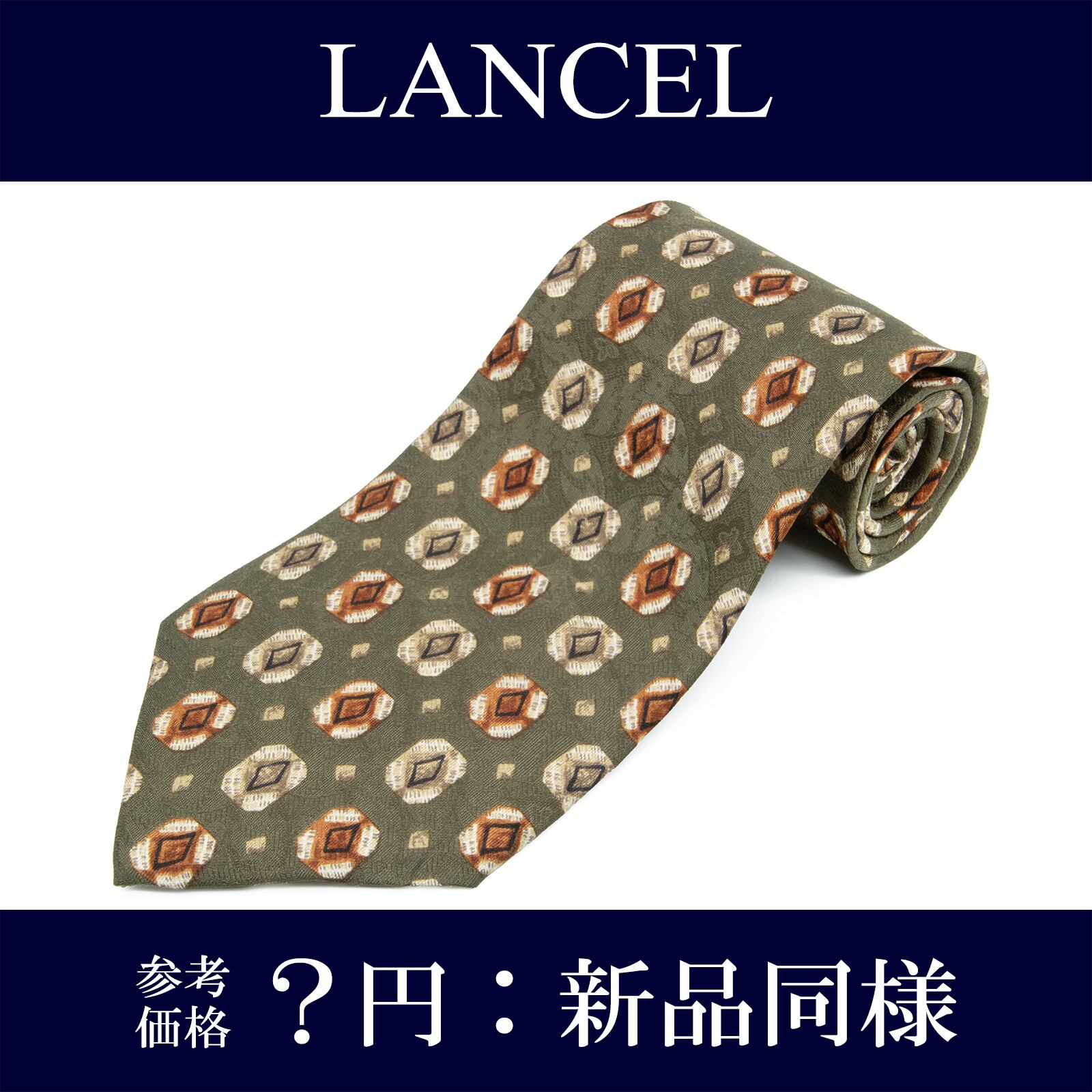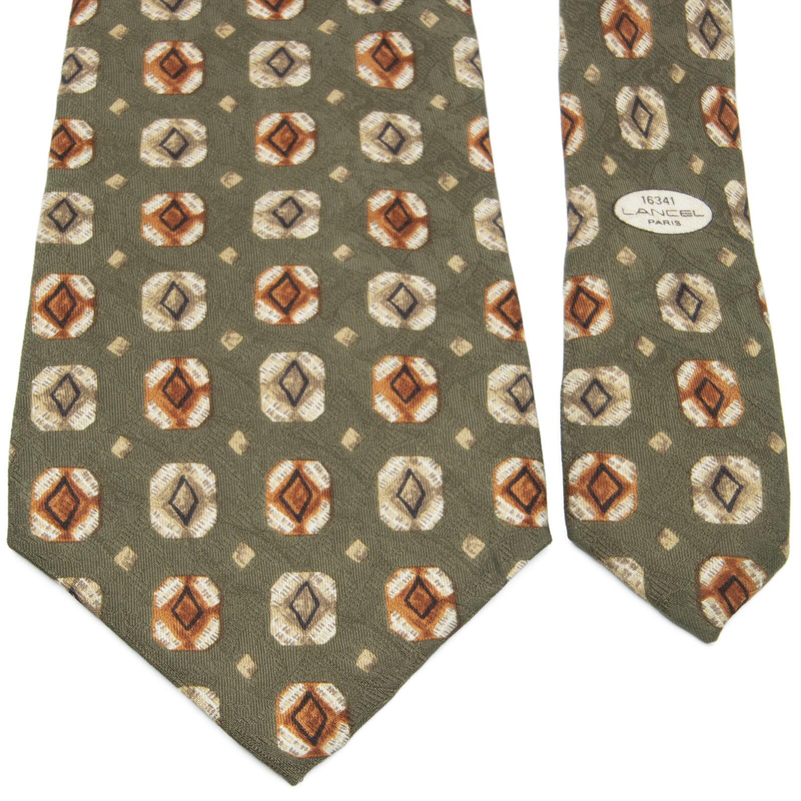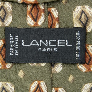 送料無料 ランセル ネクタイ 新品同様 シルク 緑 グレーベージュ 茶色 ビジネス 四角 ひし形 ダイヤ型 マーク ブランド イタリア製 N926