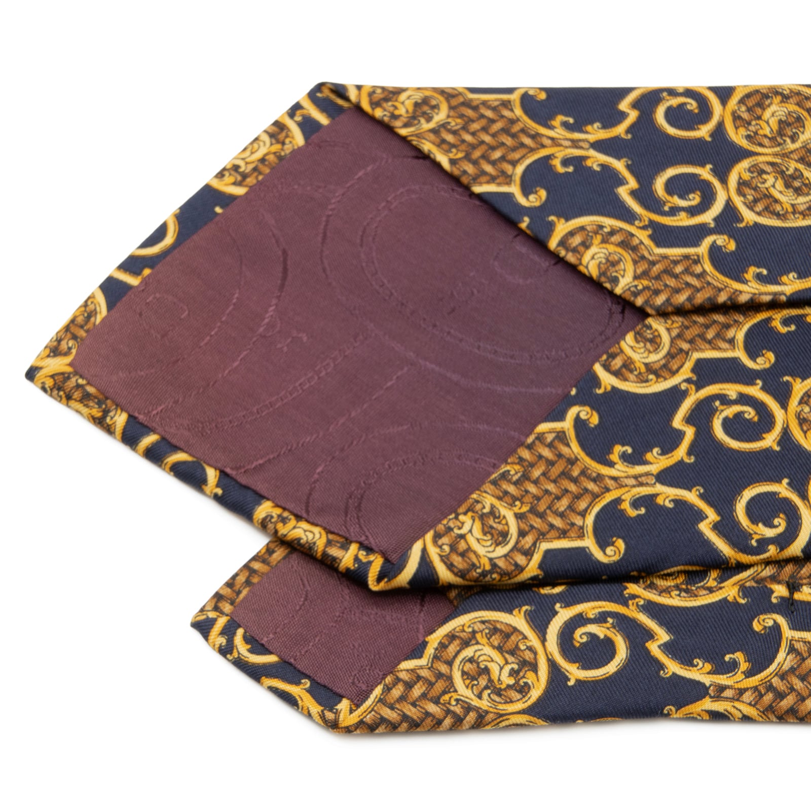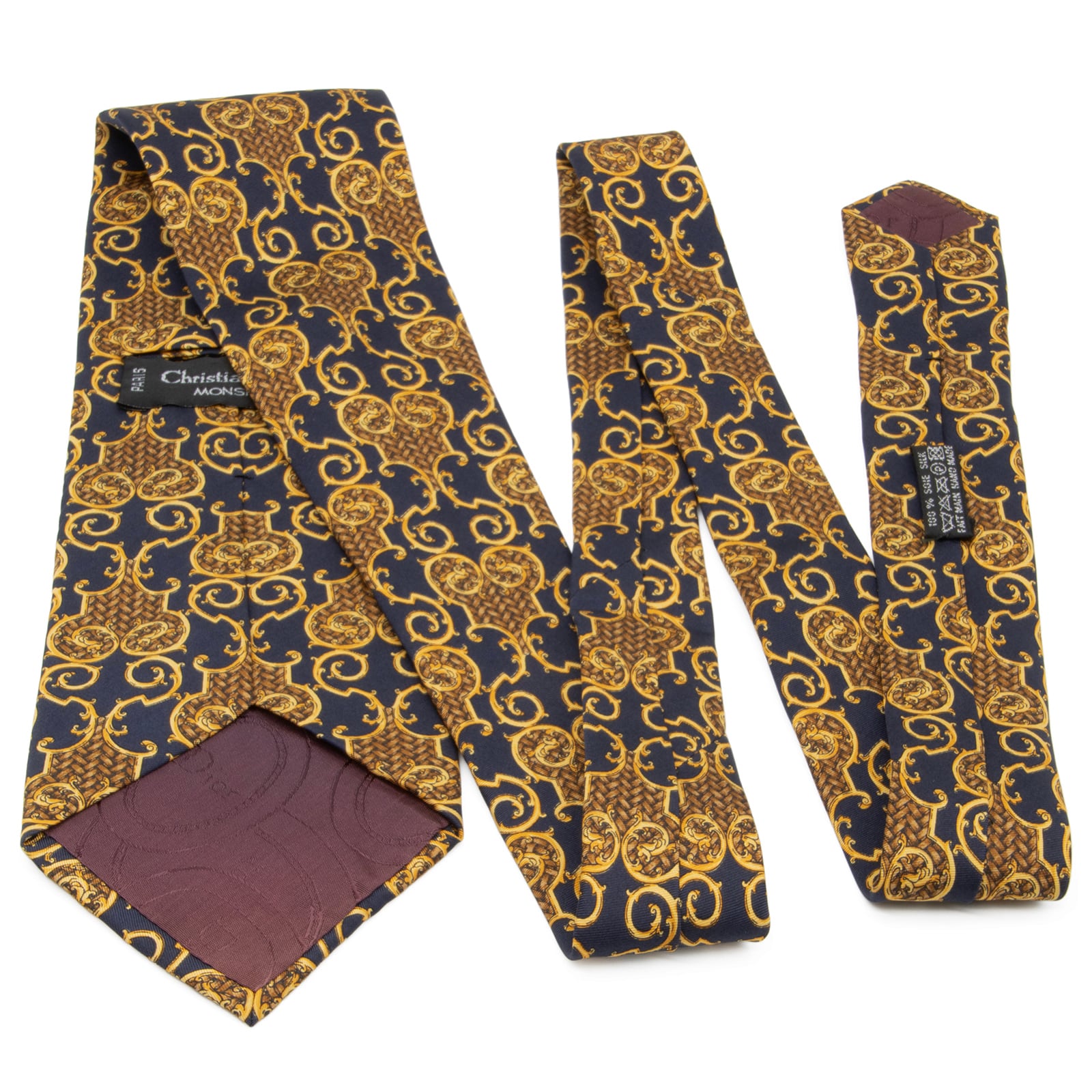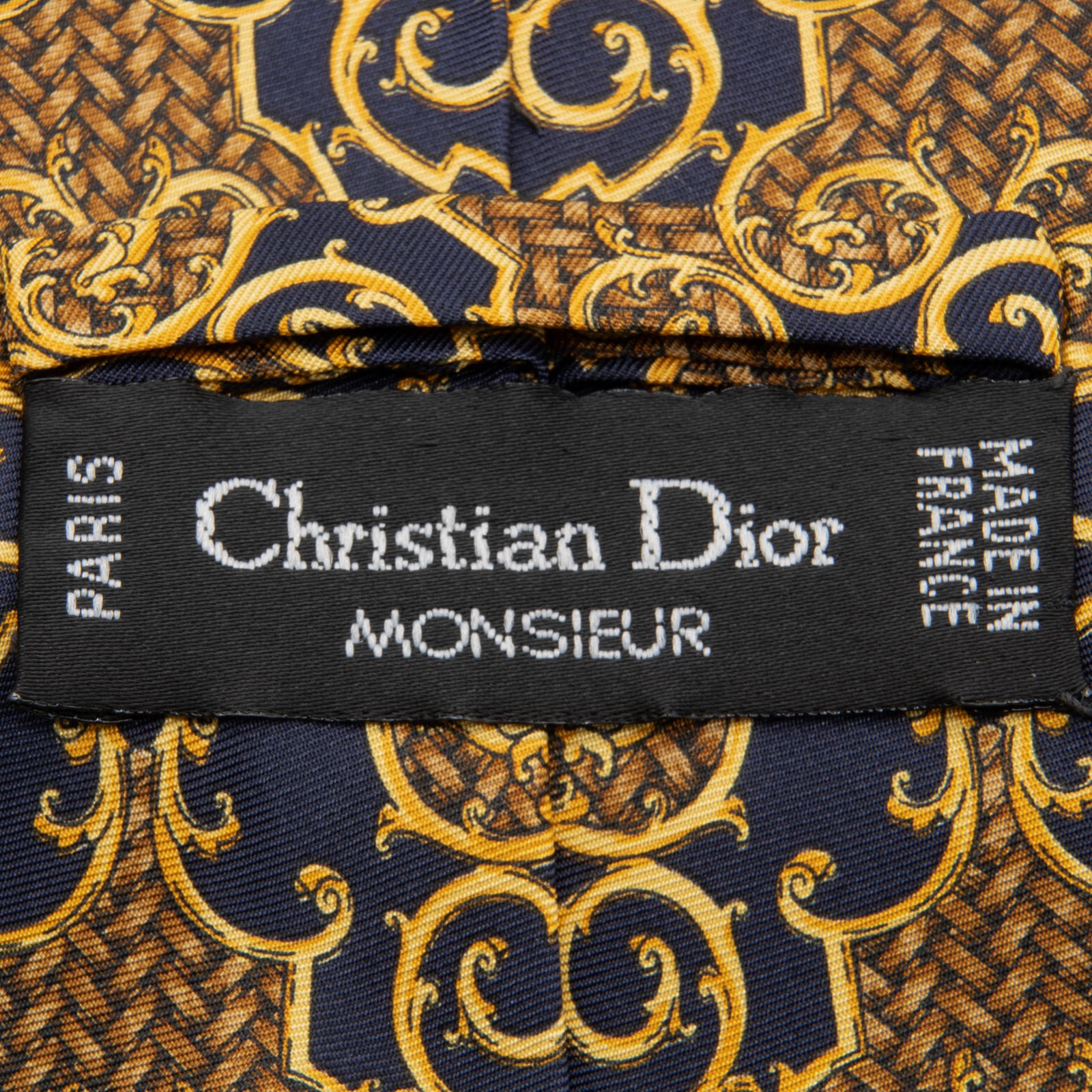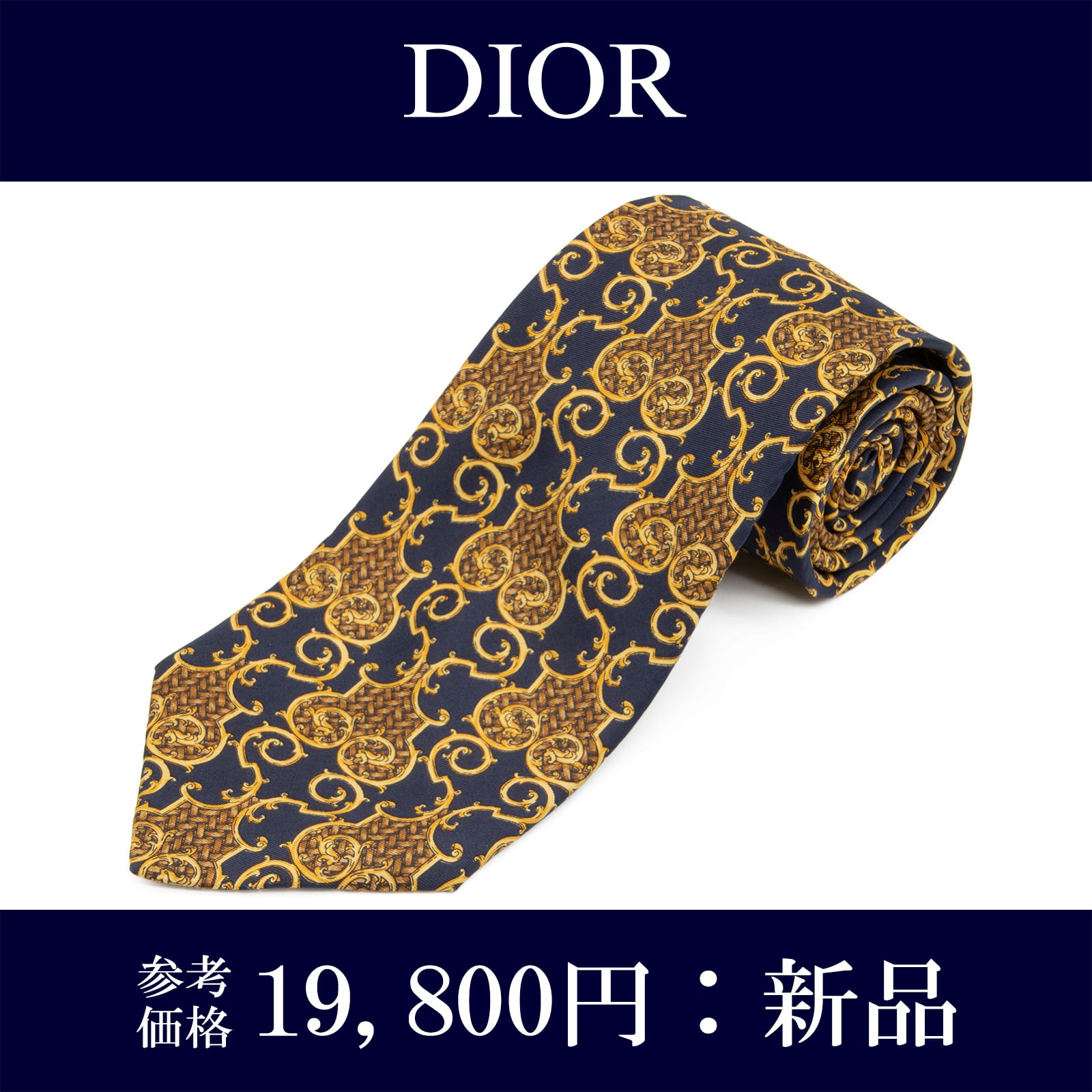 送料無料 ディオール ネクタイ レギュラータイ 新品 シルク ネイビーブルー 茶色 黄色 橙 ビジネス 紋様 マーク ブランド フランス製 N933