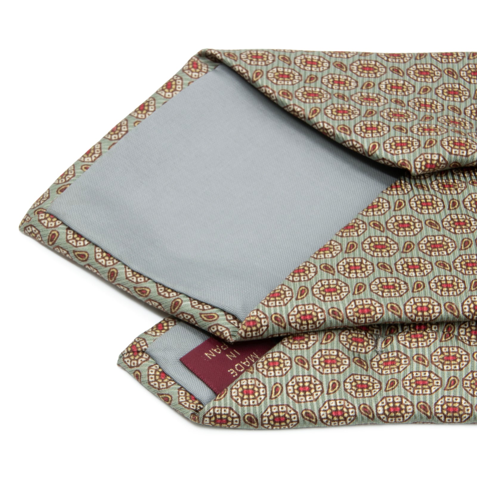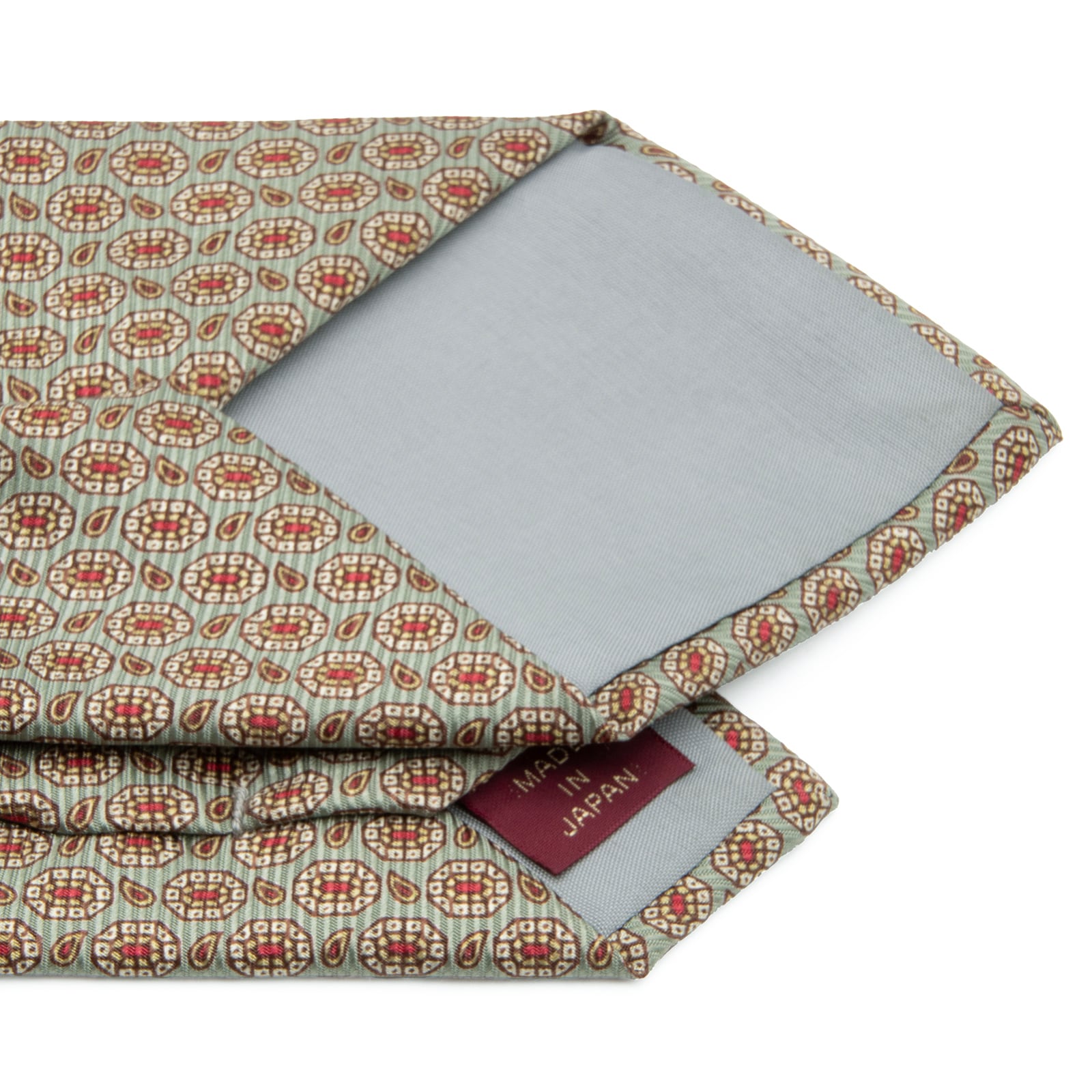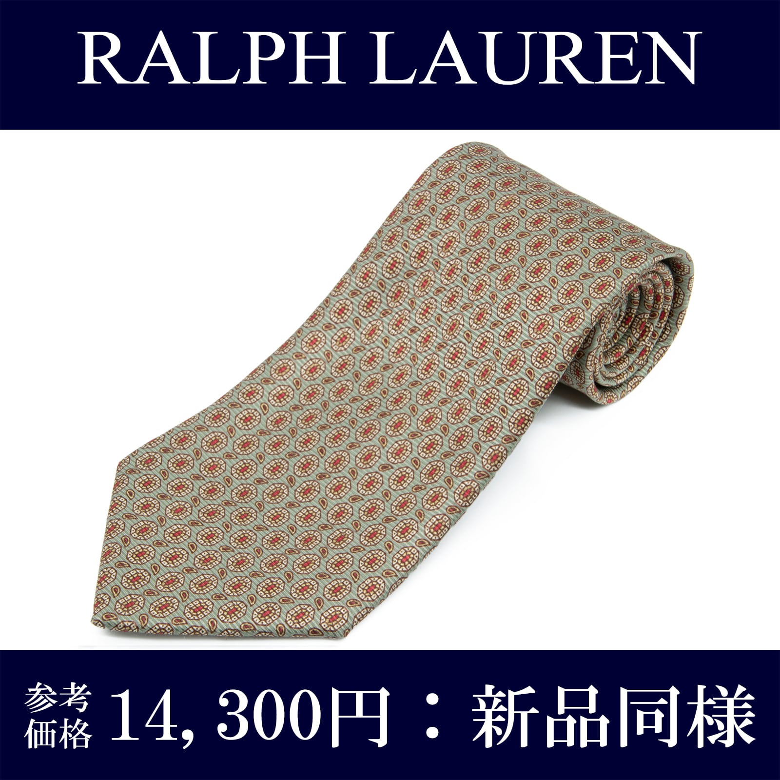 送料無料 ラルフローレン ネクタイ レギュラータイ 新品同様 シルク 緑 茶色 オレンジ 宝石 ペイズリー 光沢 マーク 珍しい ブランド N960