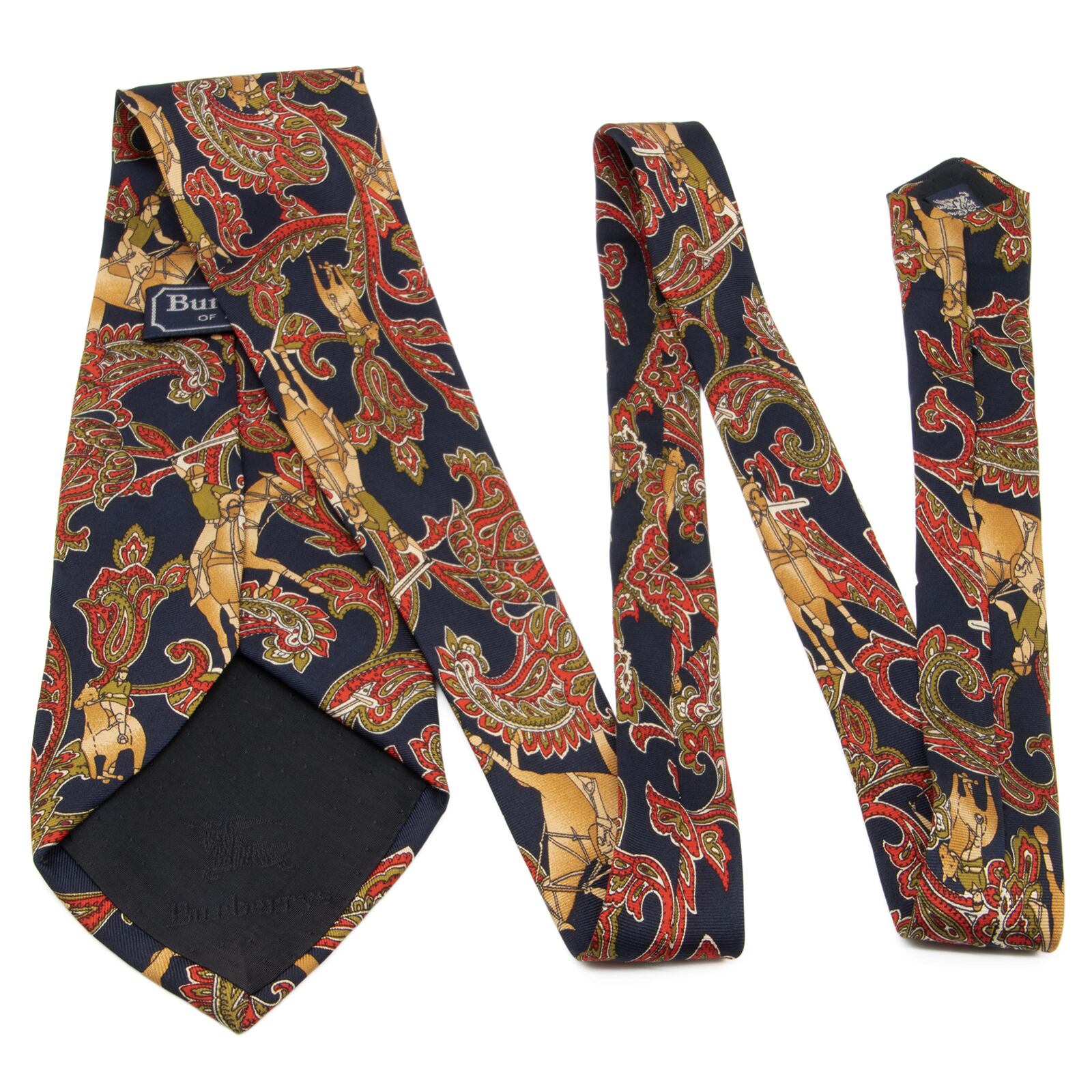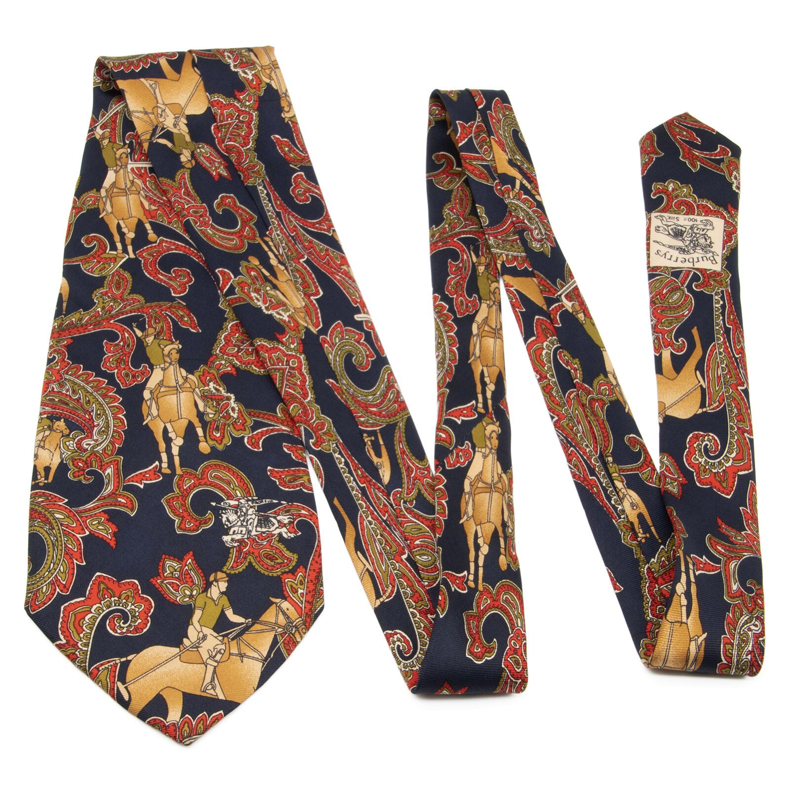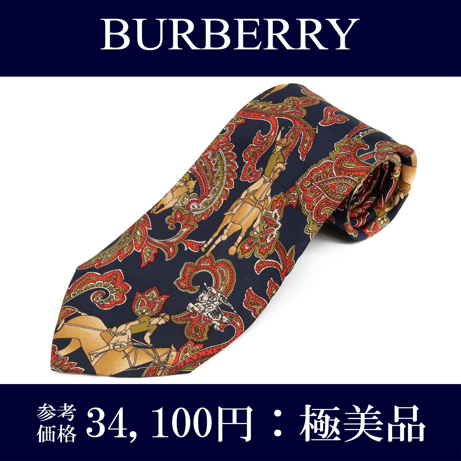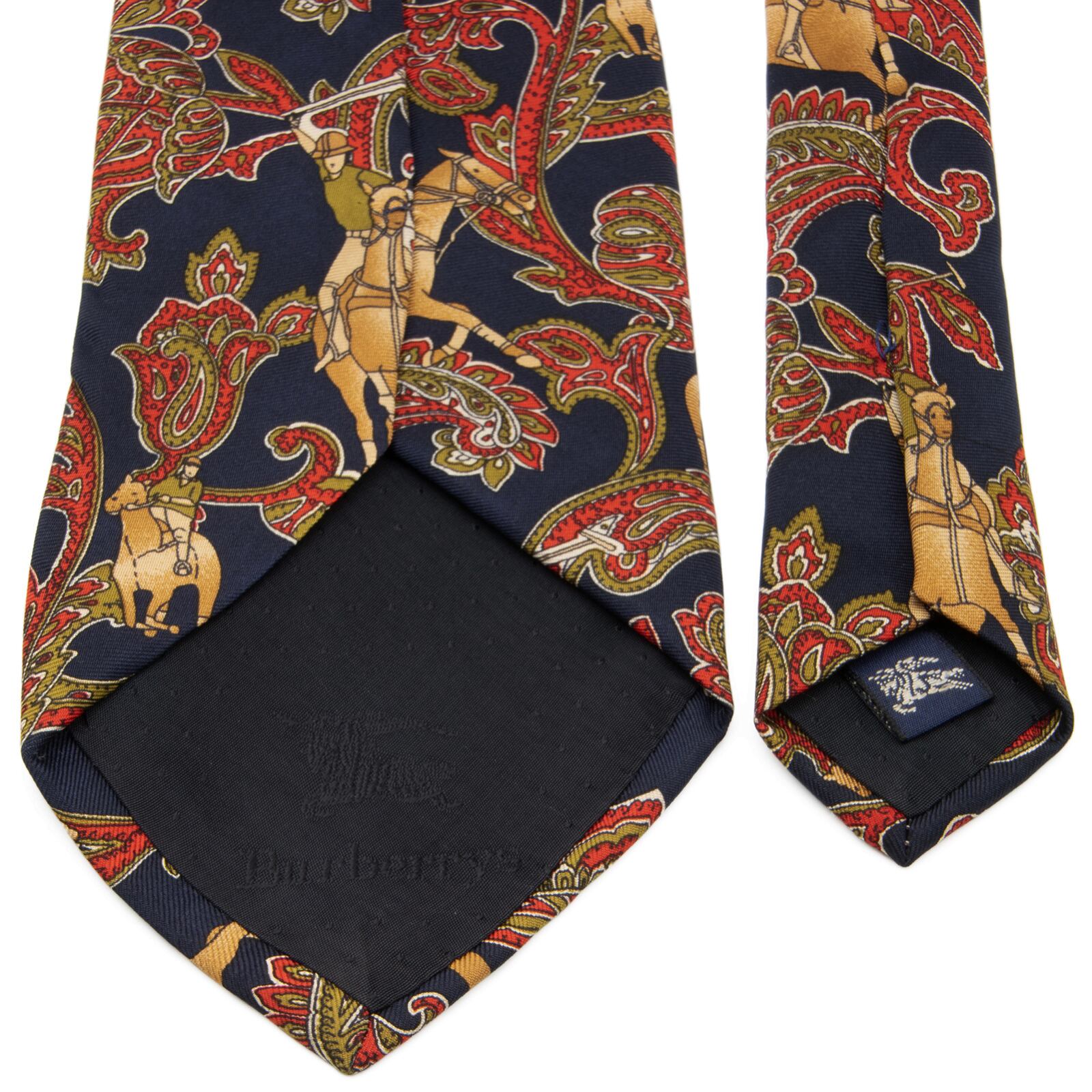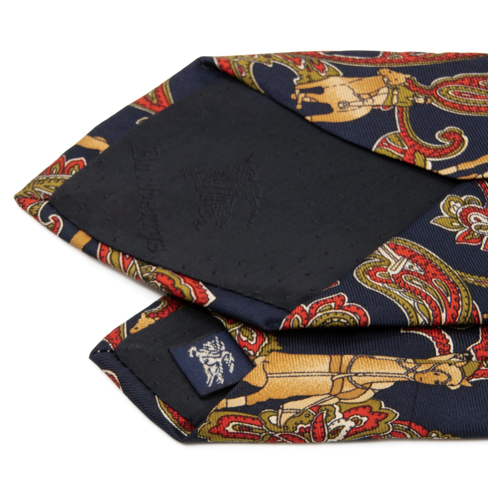 送料無料 バーバリー ネクタイ レギュラータイ シルク 青 ネイビーブルー 赤 茶色 乗馬 ホースロゴ マーク ヴィンテージ イタリア製 N962