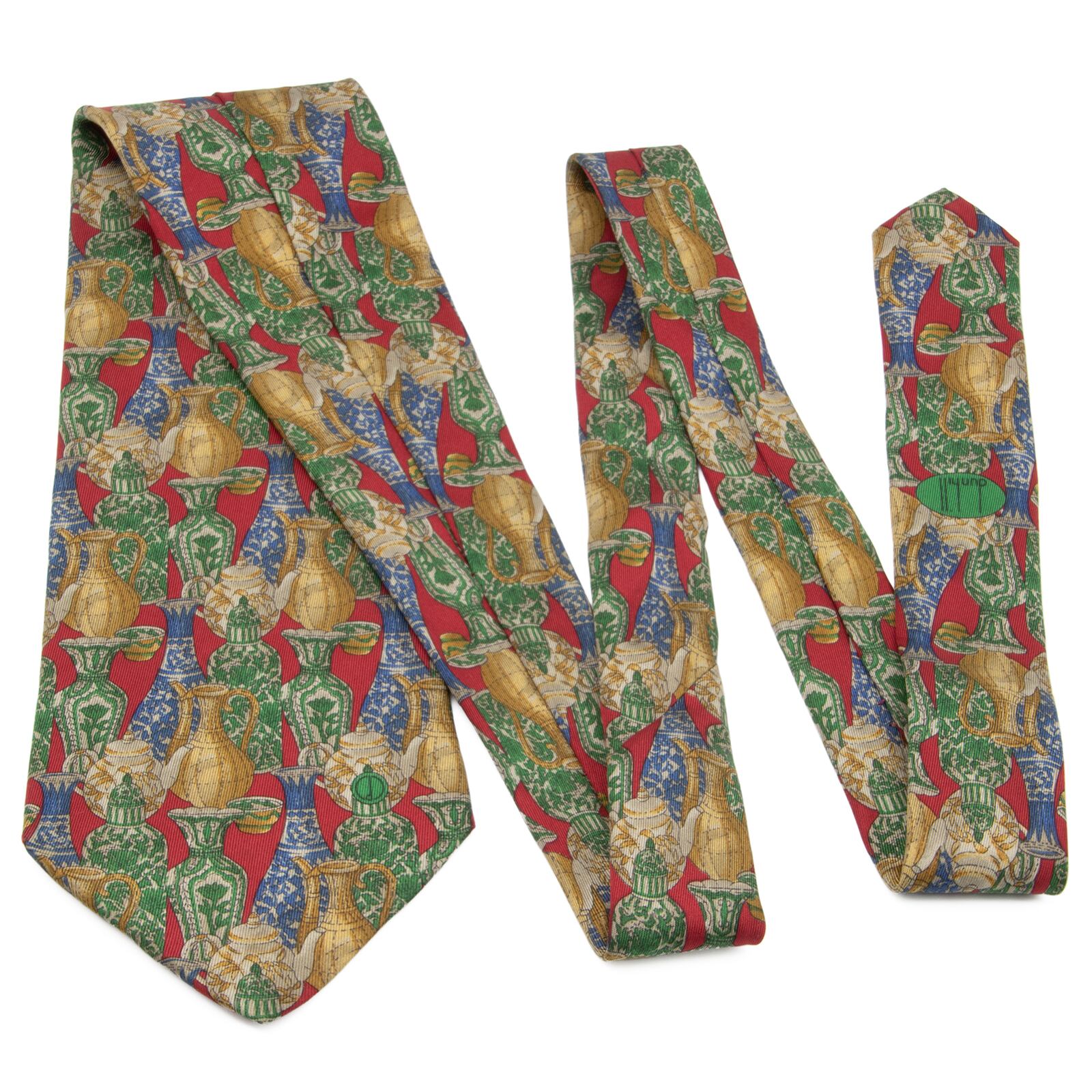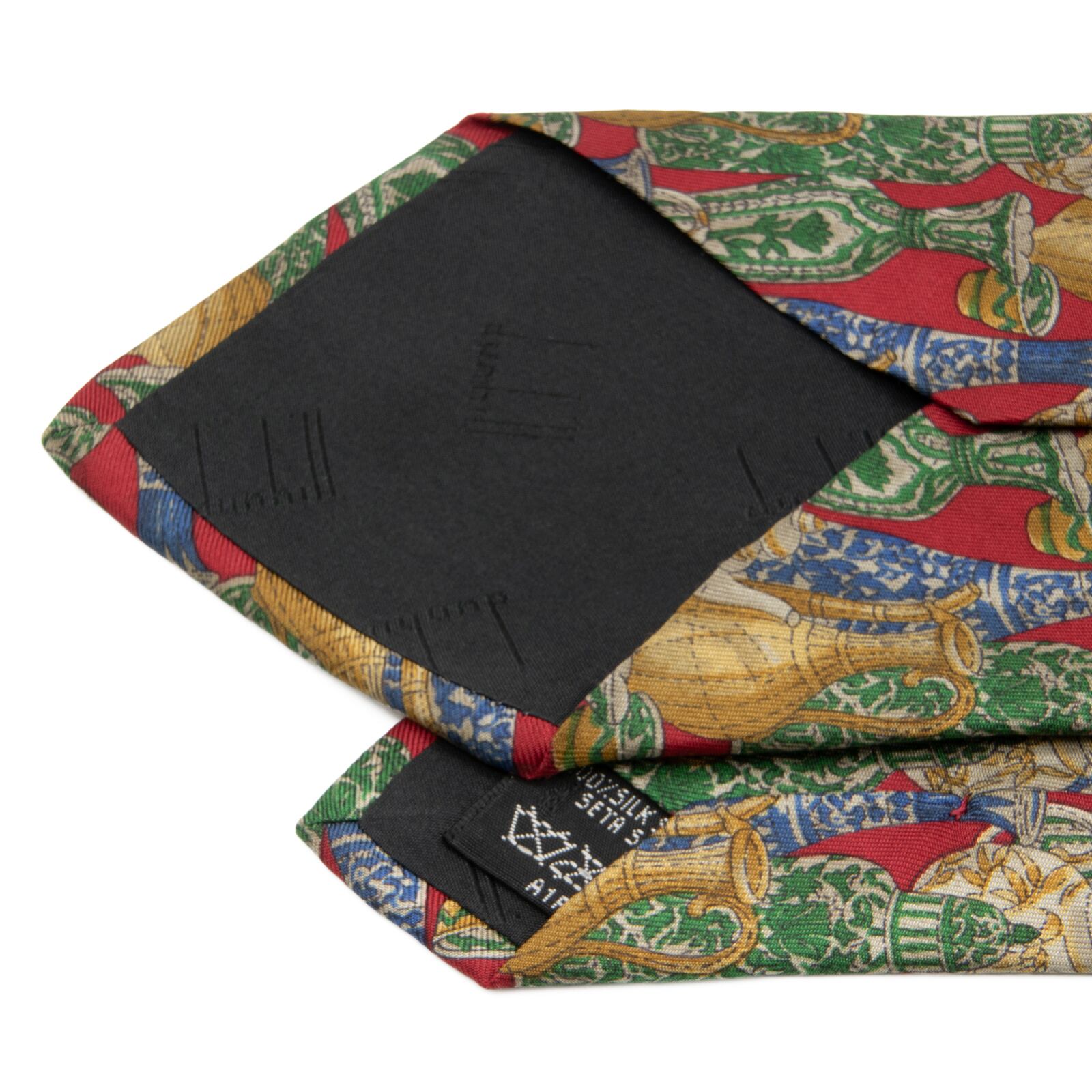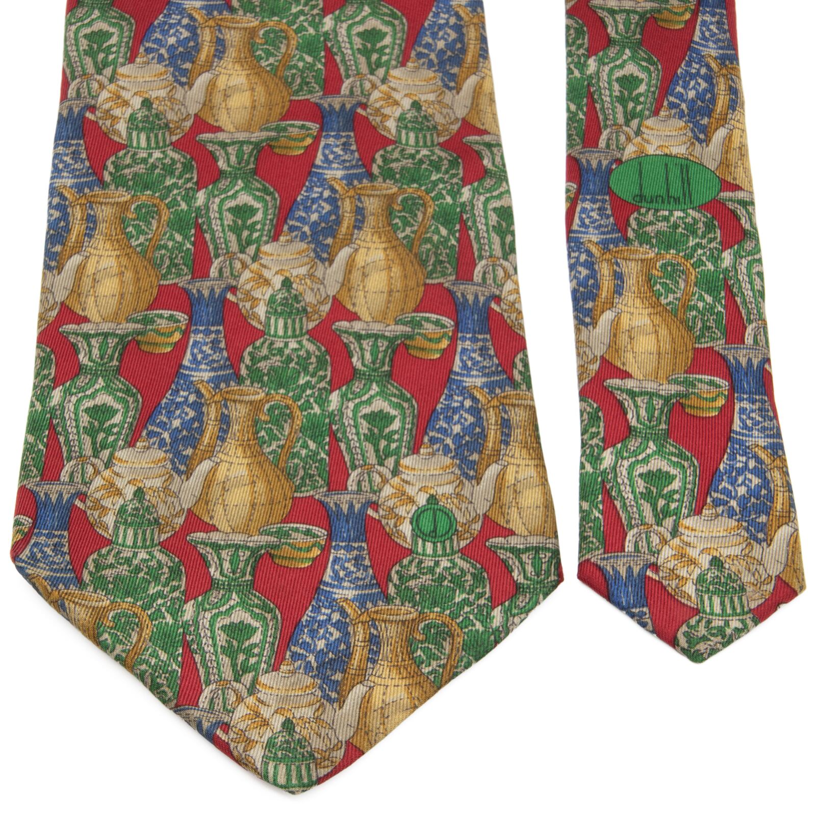 送料無料 ダンヒル ネクタイ シルク 赤 緑 青 黄色 グレー ビジネス カジュアル 花瓶 ポット 壺 西洋雑貨 ブランド イタリア製 綺麗 N985