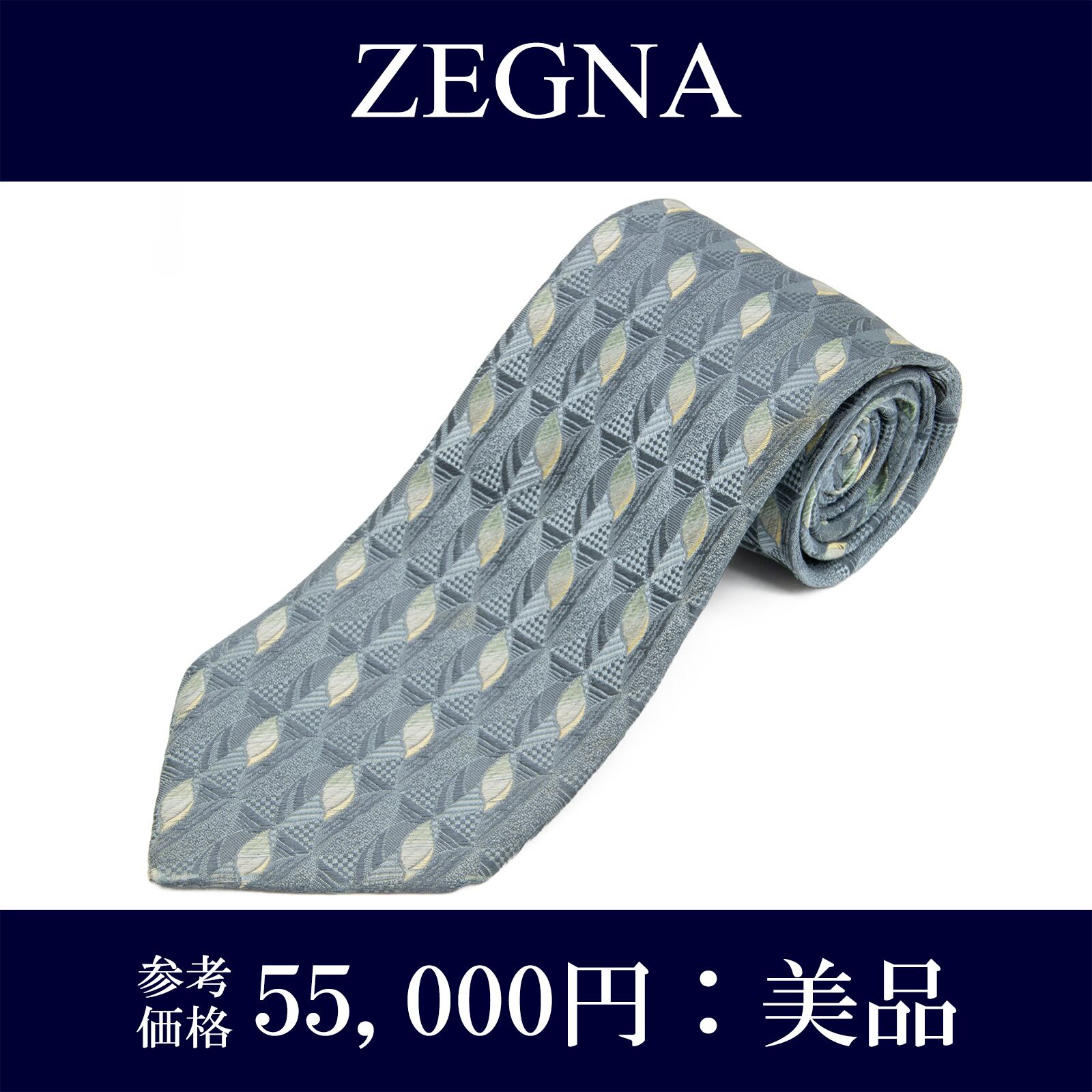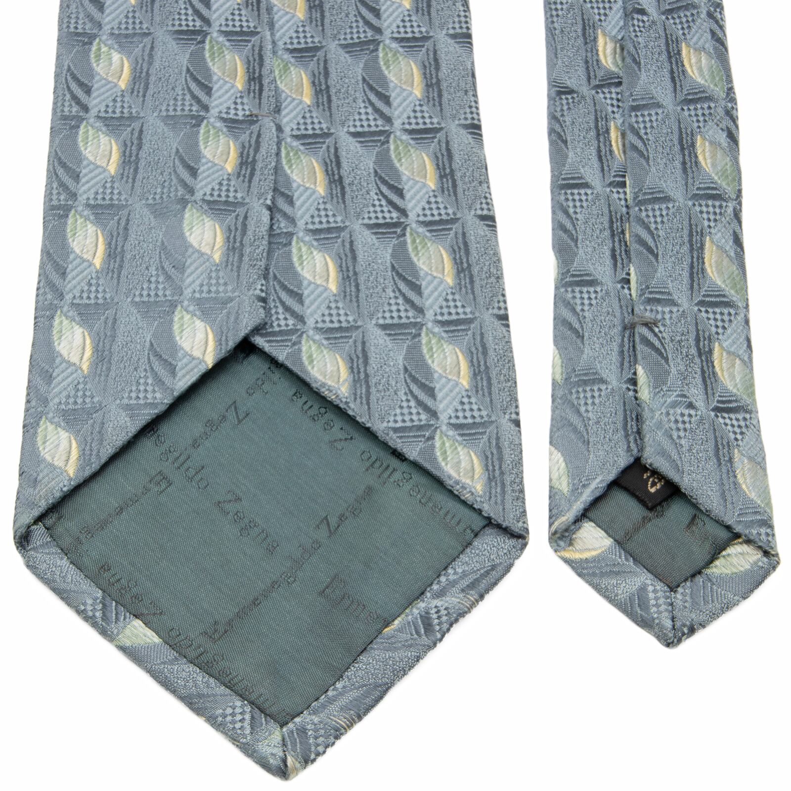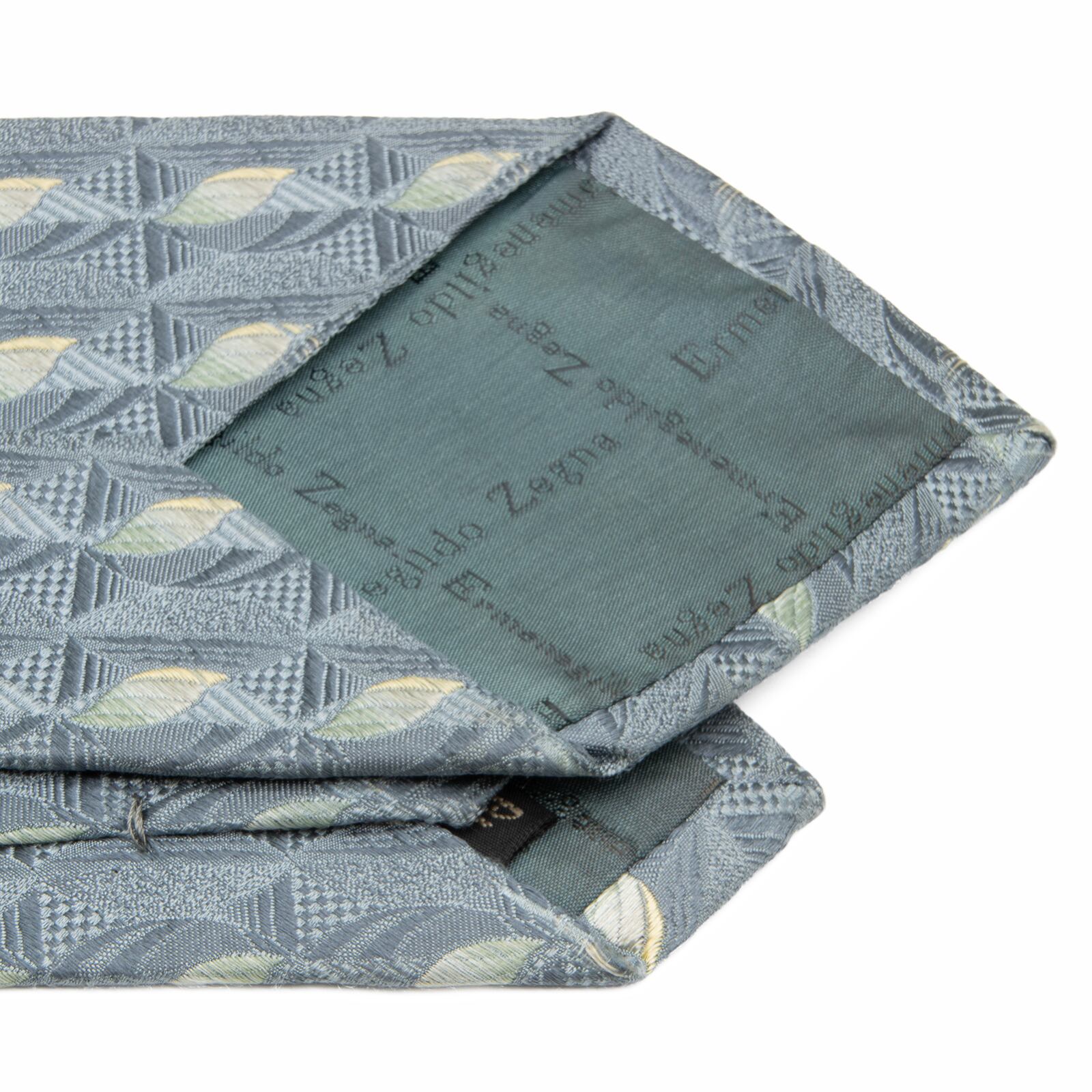 送料無料 ゼニア ネクタイ ジャガードタイ シルク グレーブルー アイボリー 緑 葉 リーフ 光沢 肉厚 マーク ブランド イタリア製 綺麗 P007