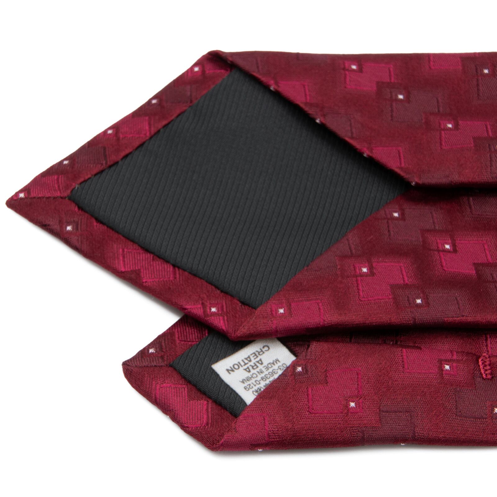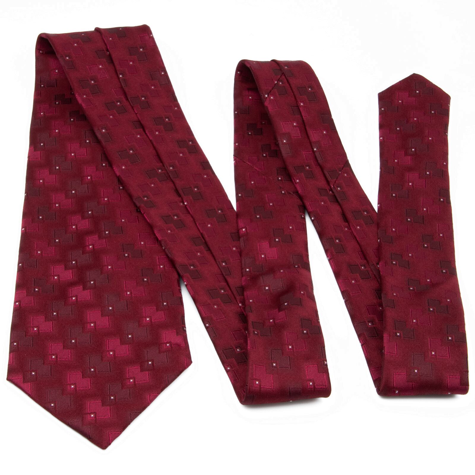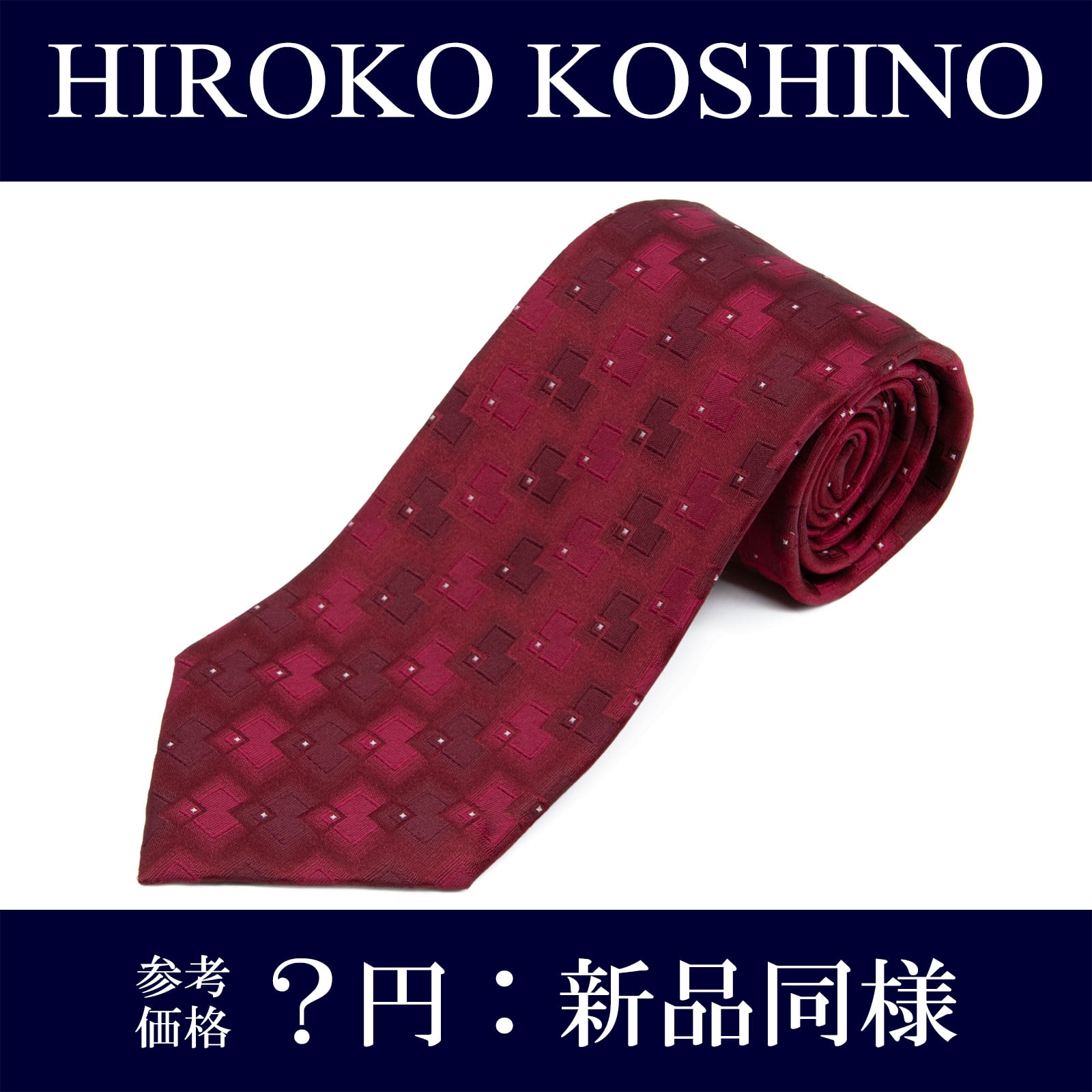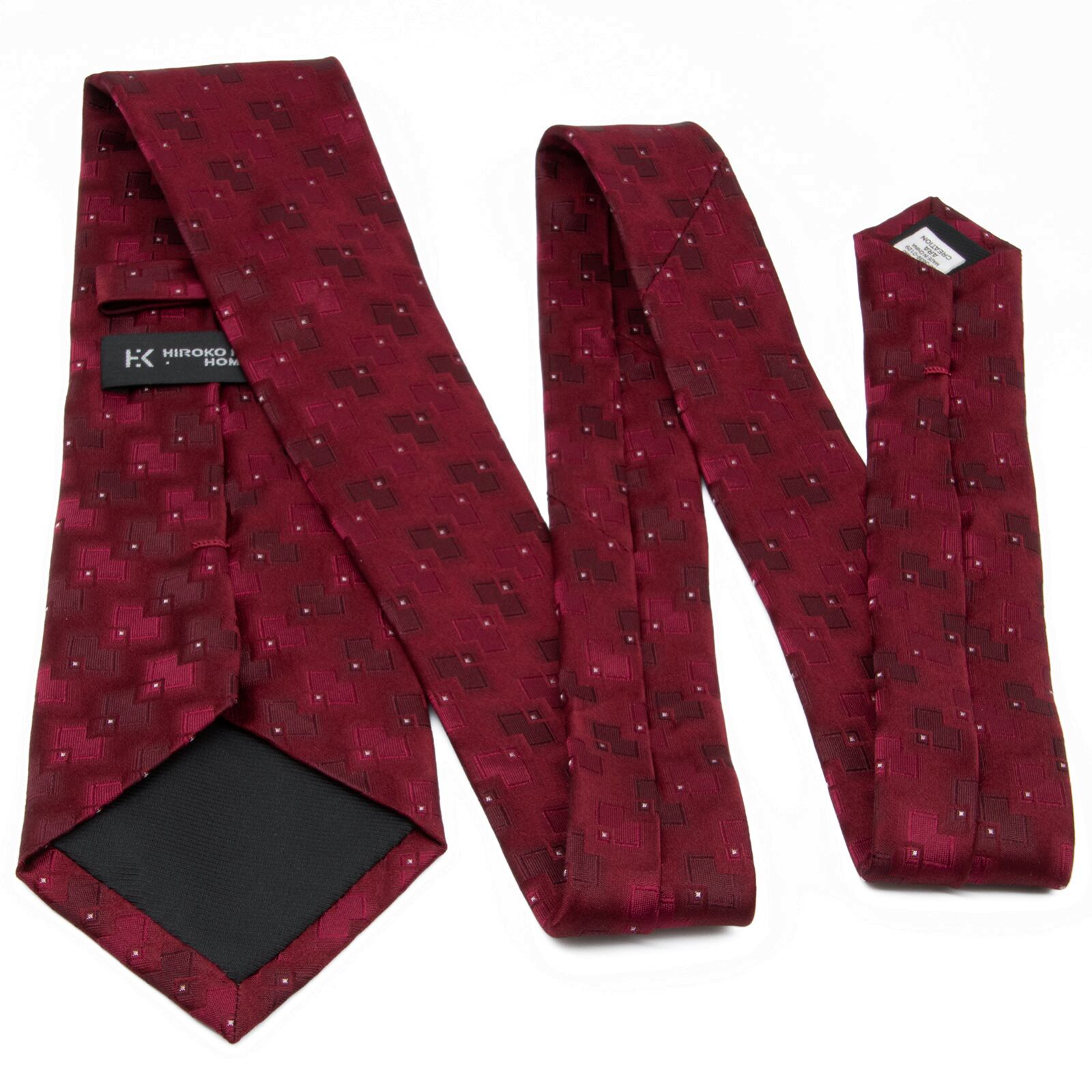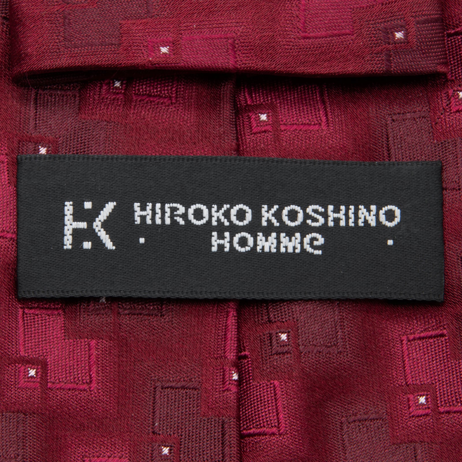 送料無料 ヒロココシノ ネクタイ レギュラータイ ジャガード 新品同様 シルク 赤紫 バーガンディー ボルドー 白 四角 ドット ブランド P015