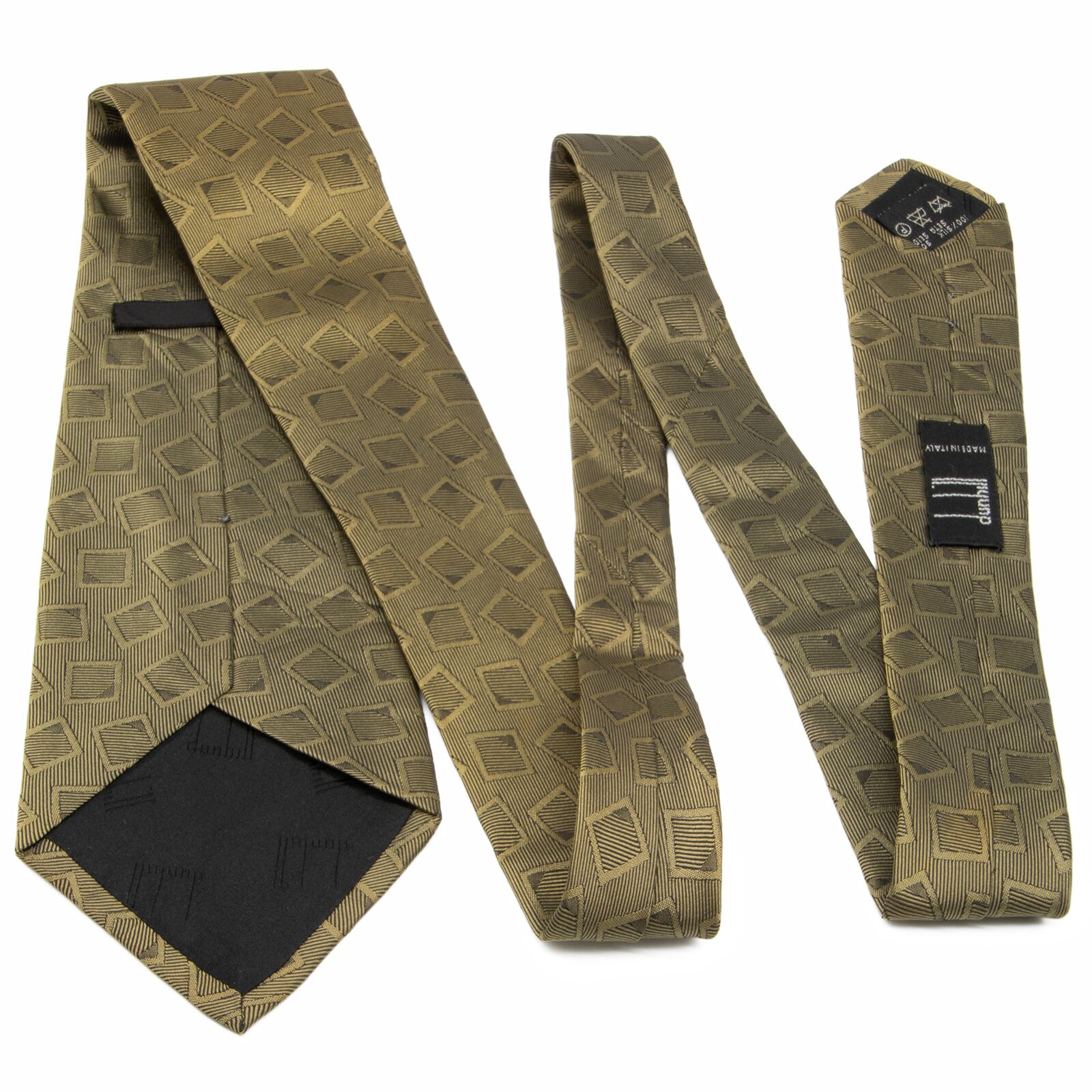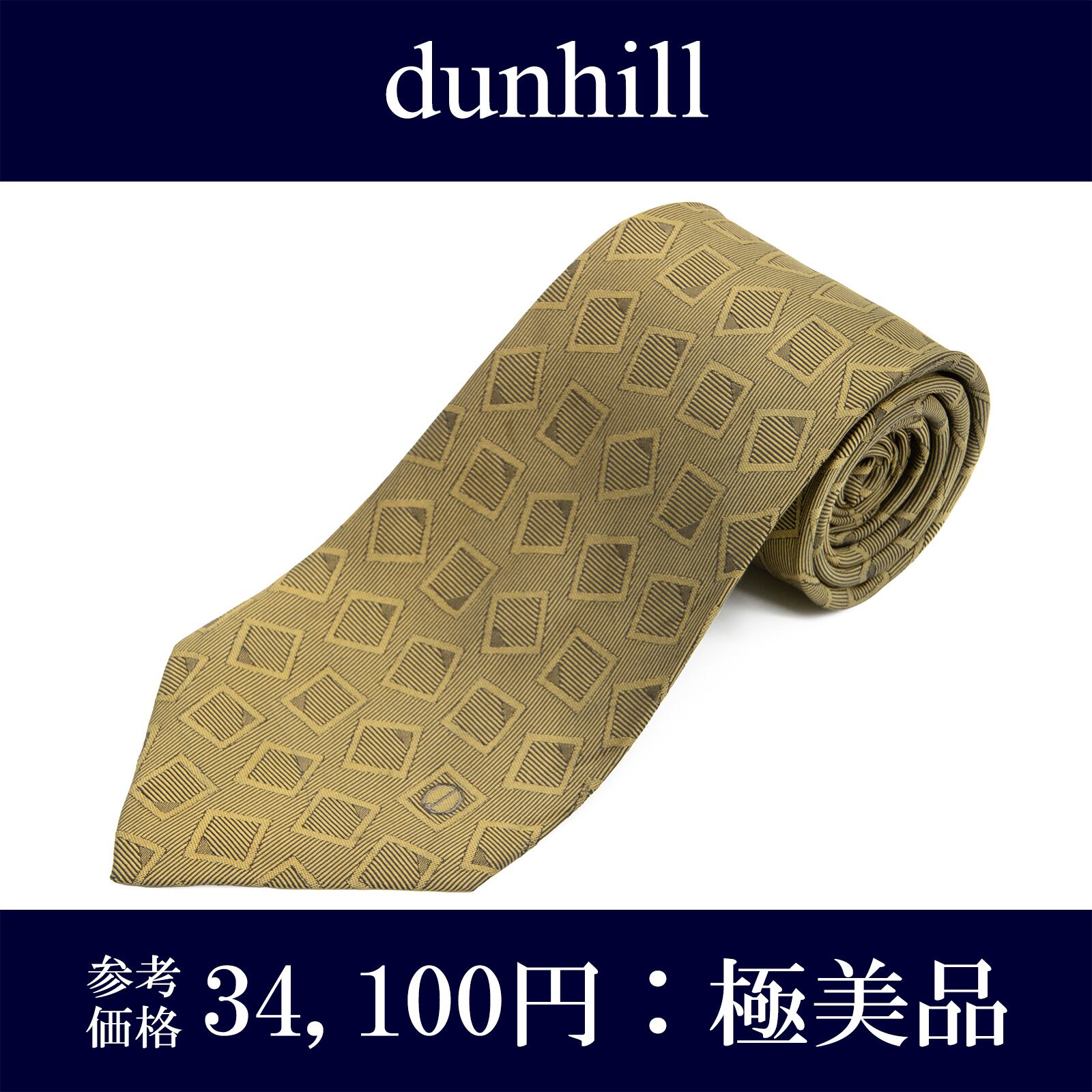 送料無料 ダンヒル ネクタイ レギュラータイ ジャガードタイ シルク 金色 ゴールド 四角 光沢 ロゴ マーク ブランド イタリア製 綺麗 P018
