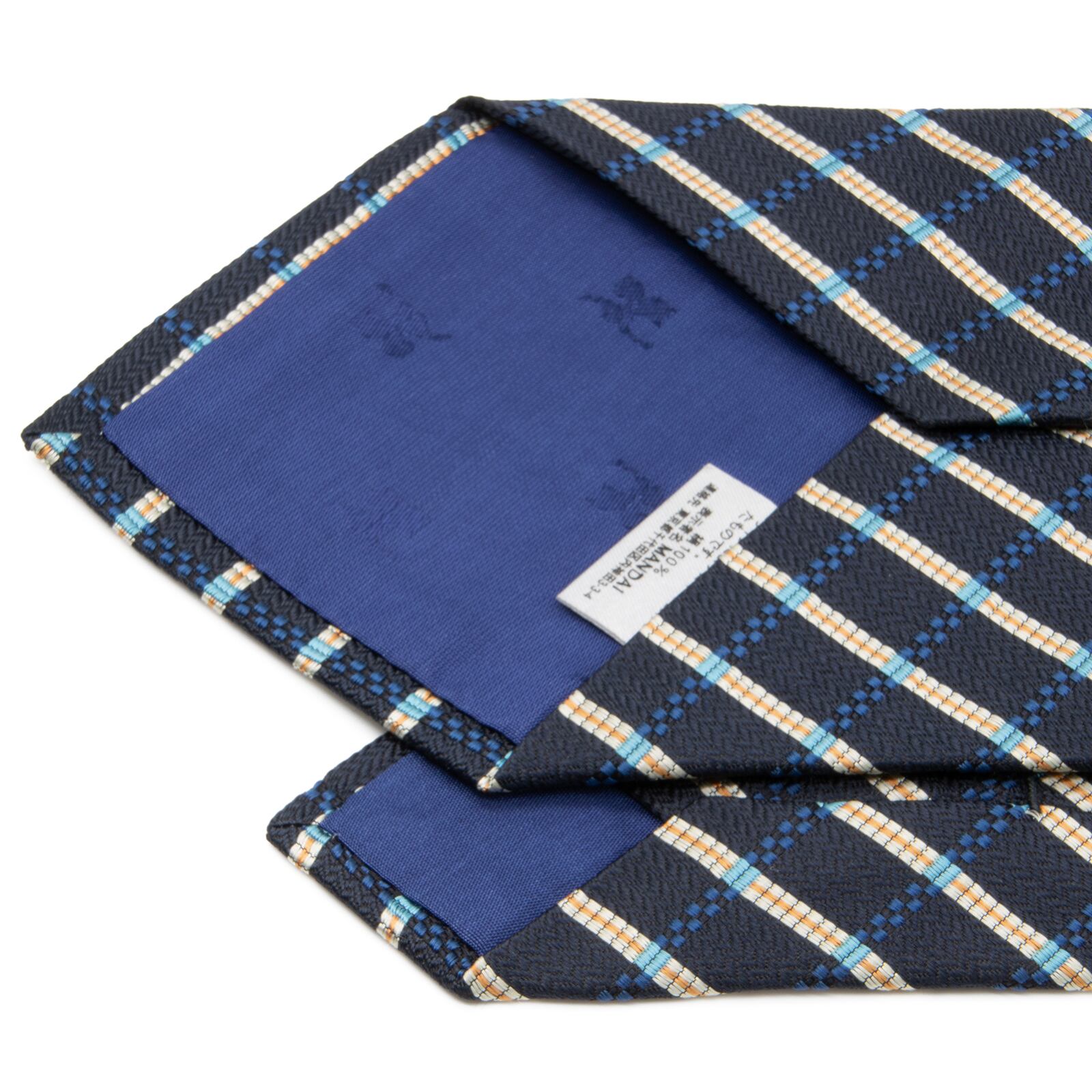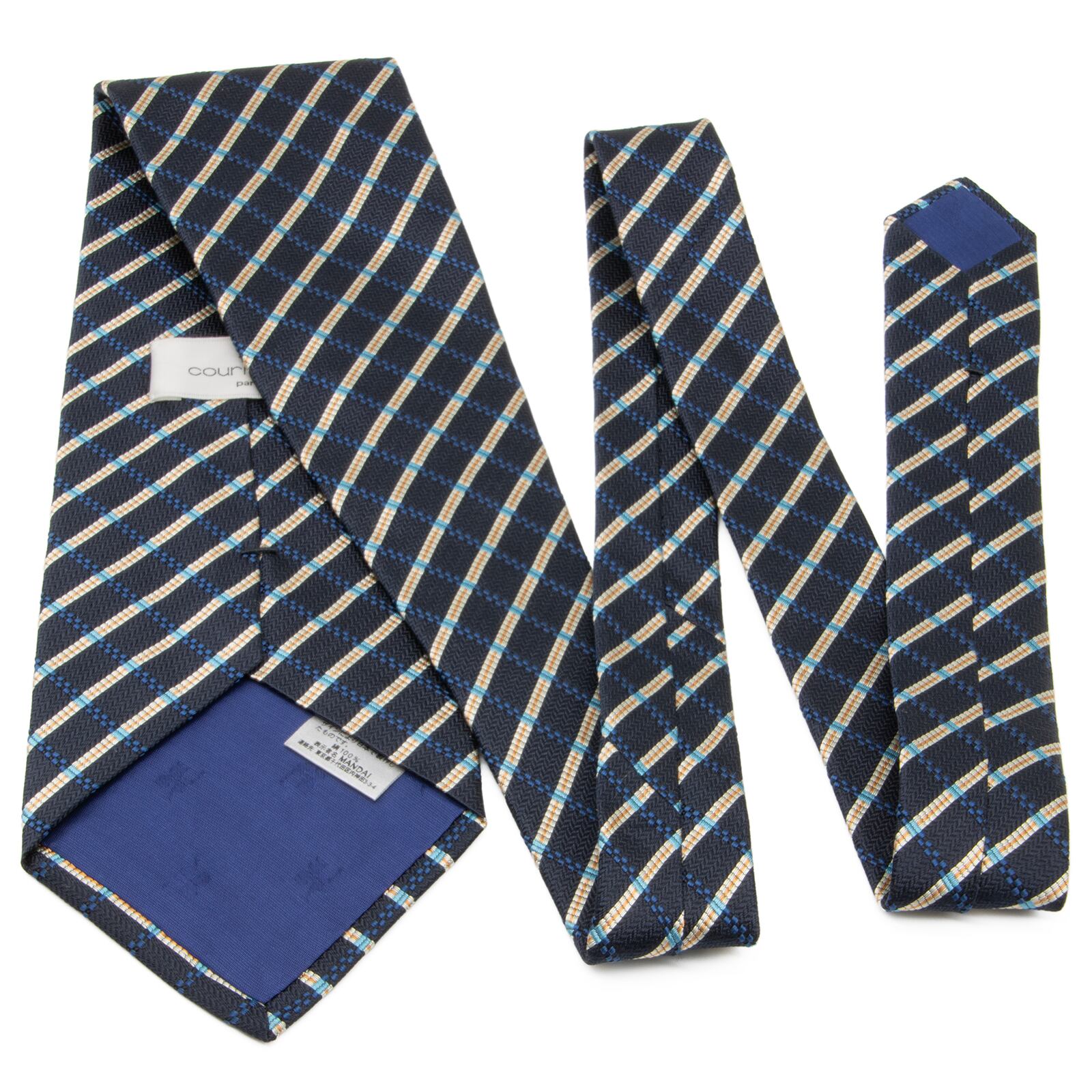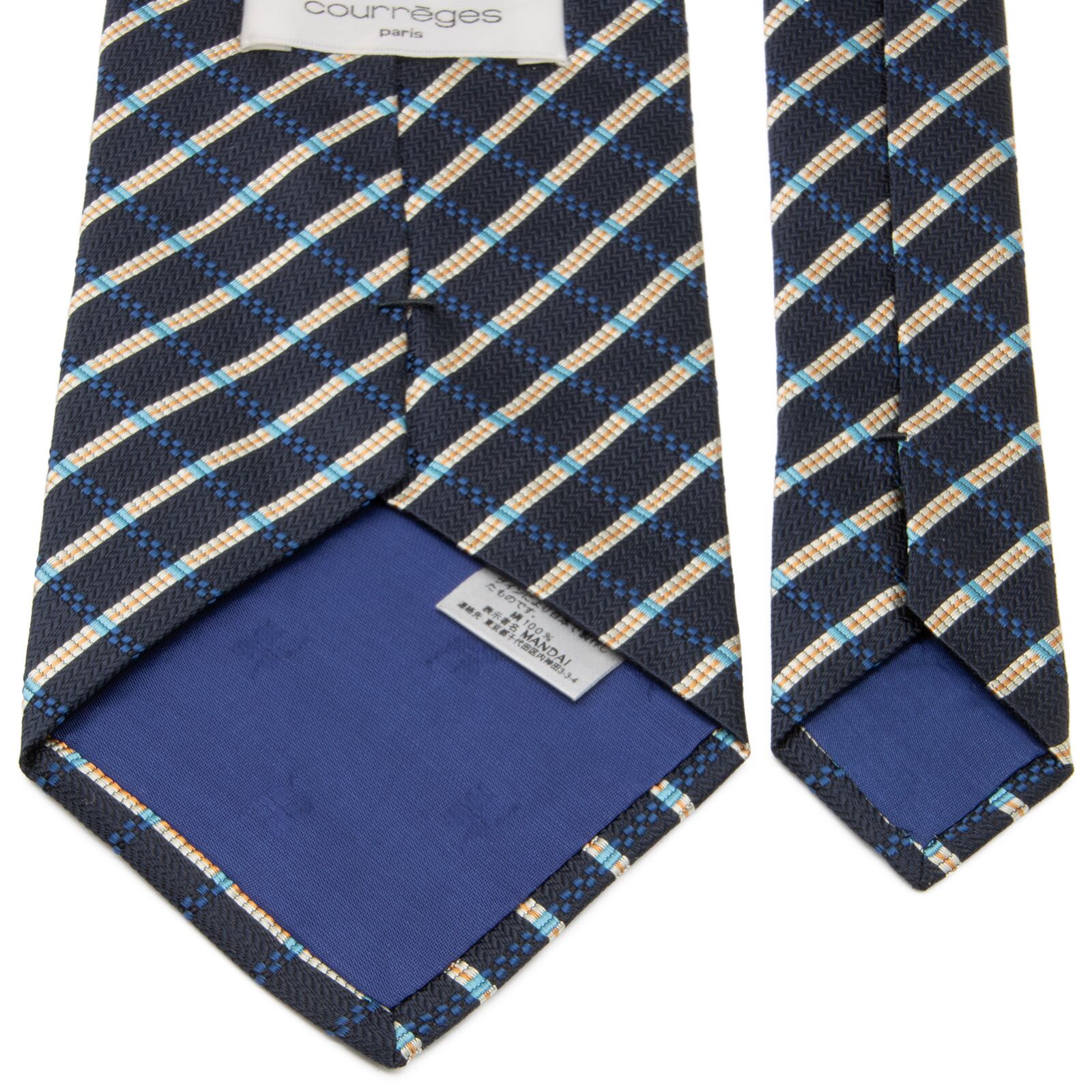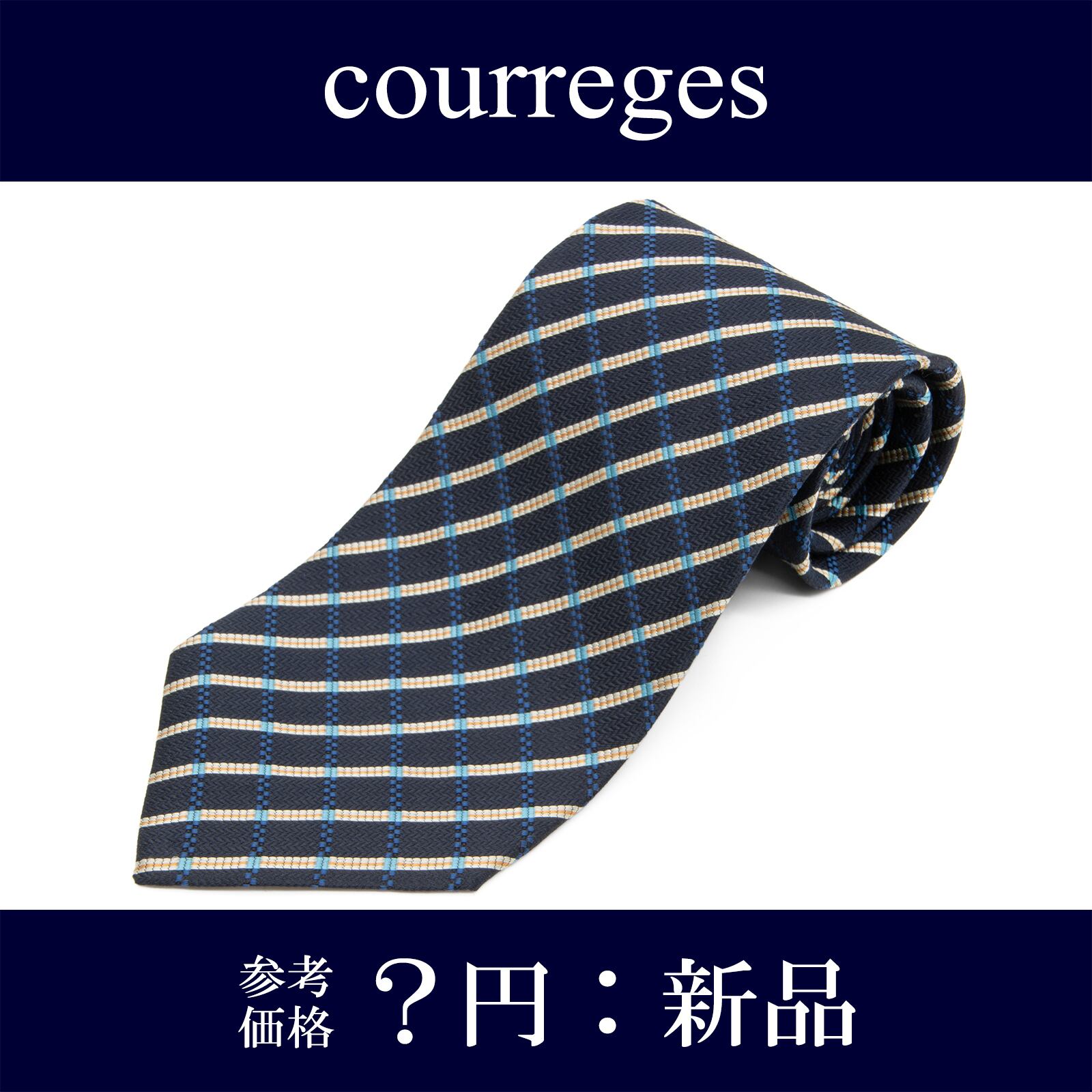 送料無料 クレージュ ネクタイ ジャガードタイ 新品 シルク 青 ネイビーブルー アイボリー オレンジ ビジネス チェック ブランド 綺麗 P028