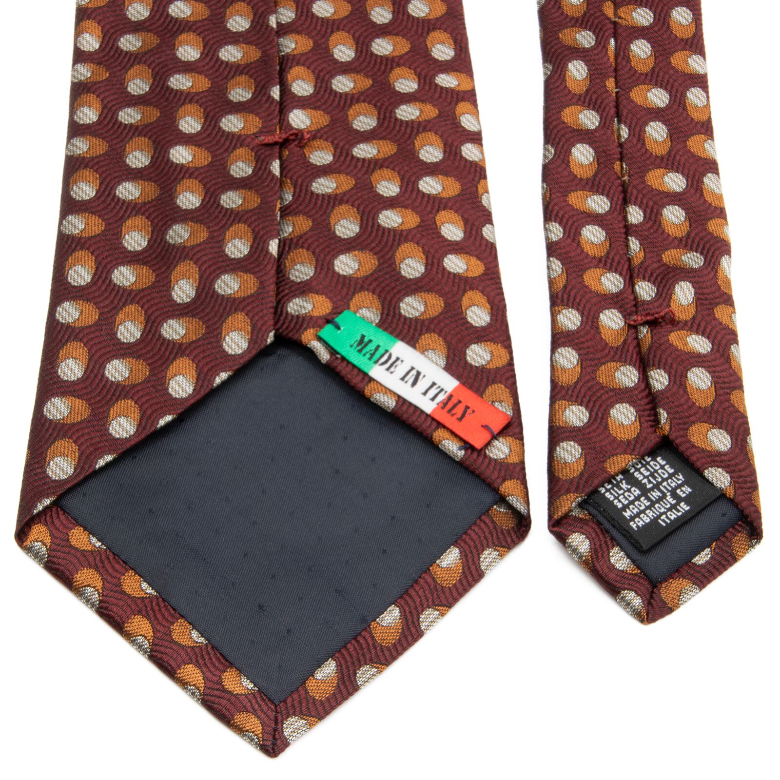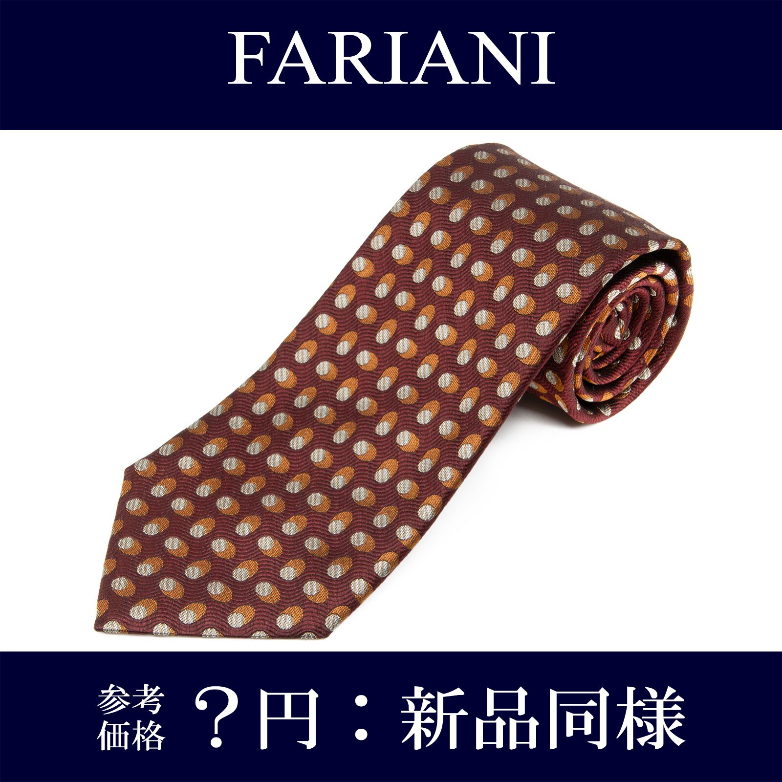送料無料 ファリアーニ ネクタイ ジャガード 新品同様 シルク バーガンディー オレンジ グレー サークル 波 光沢 ブランド イタリア製 P033