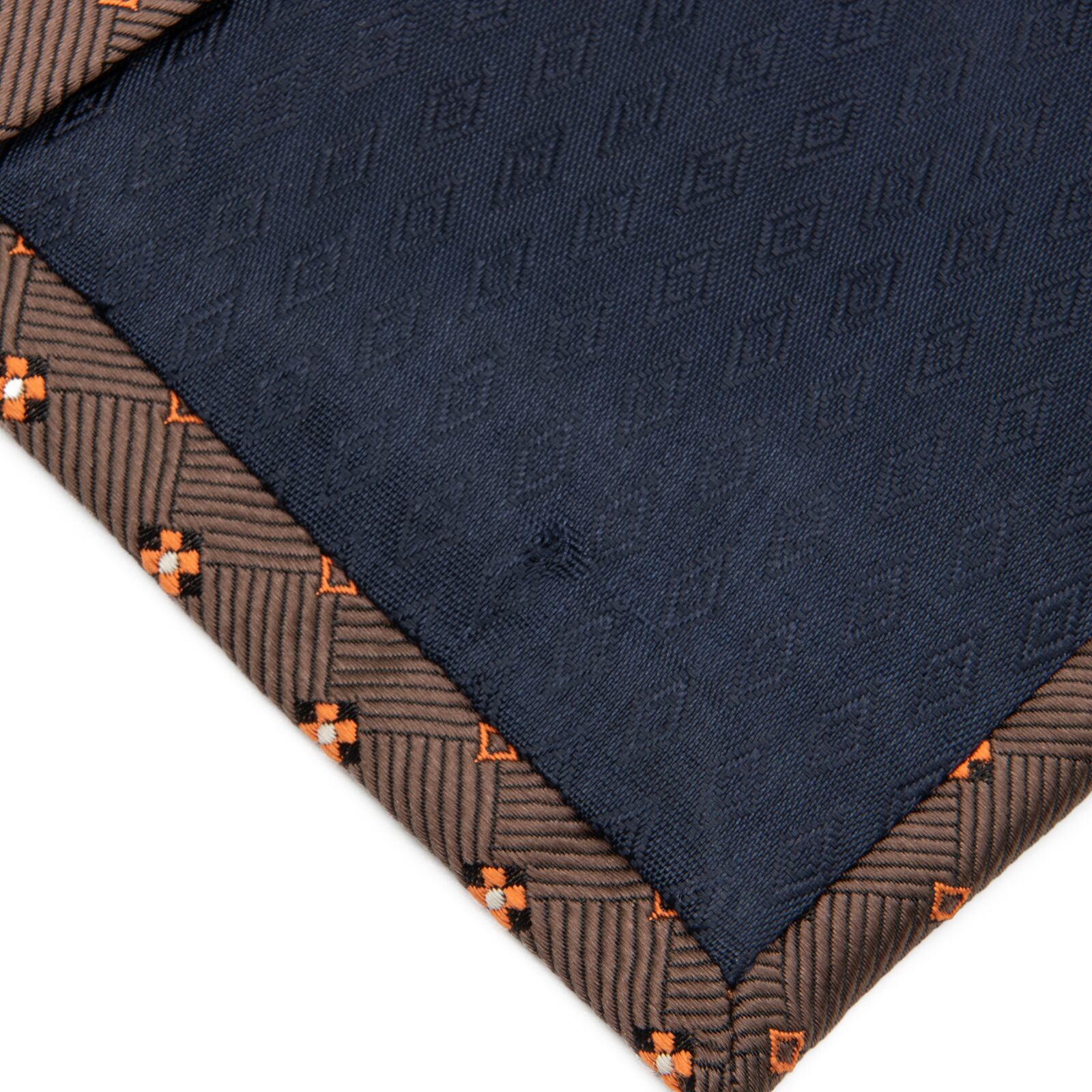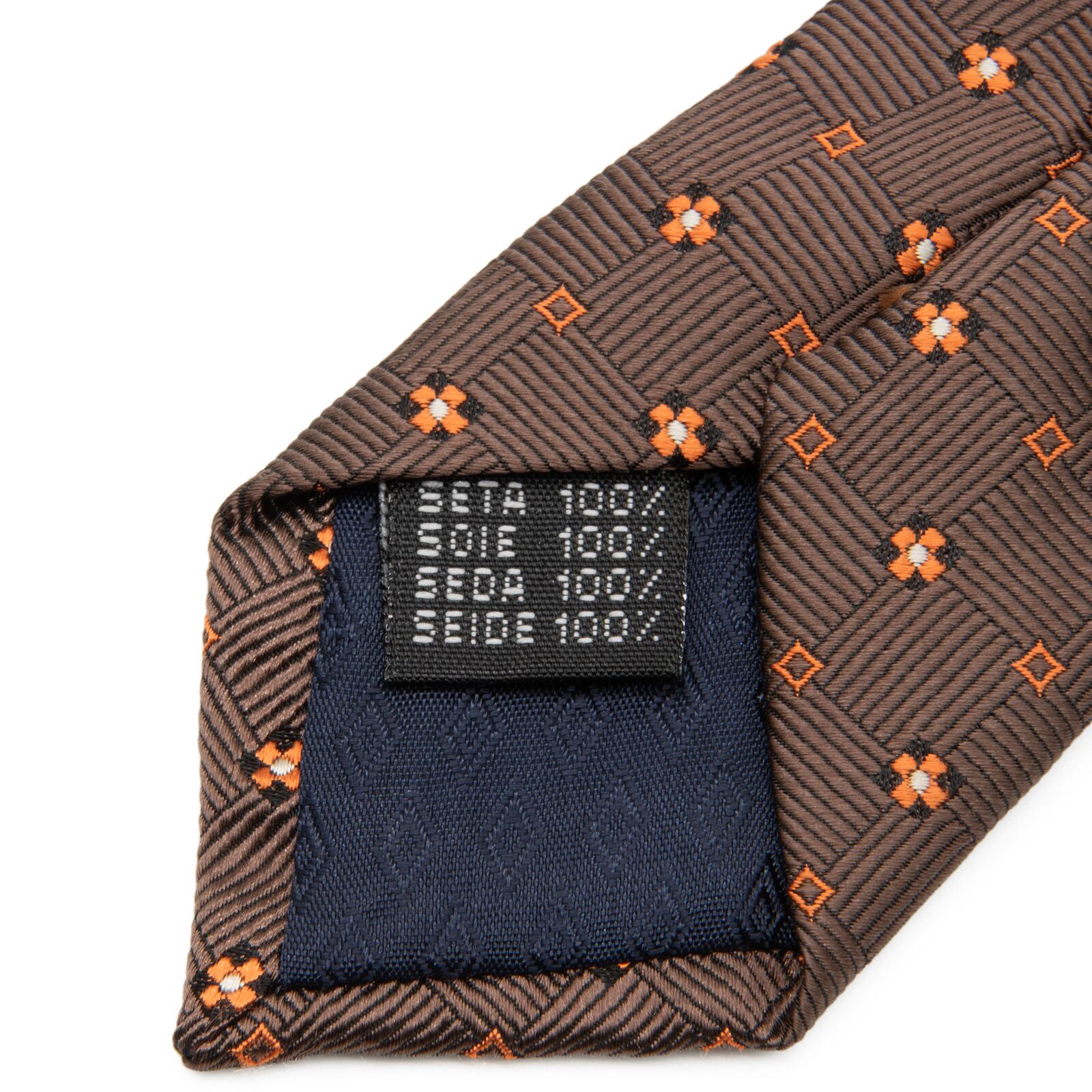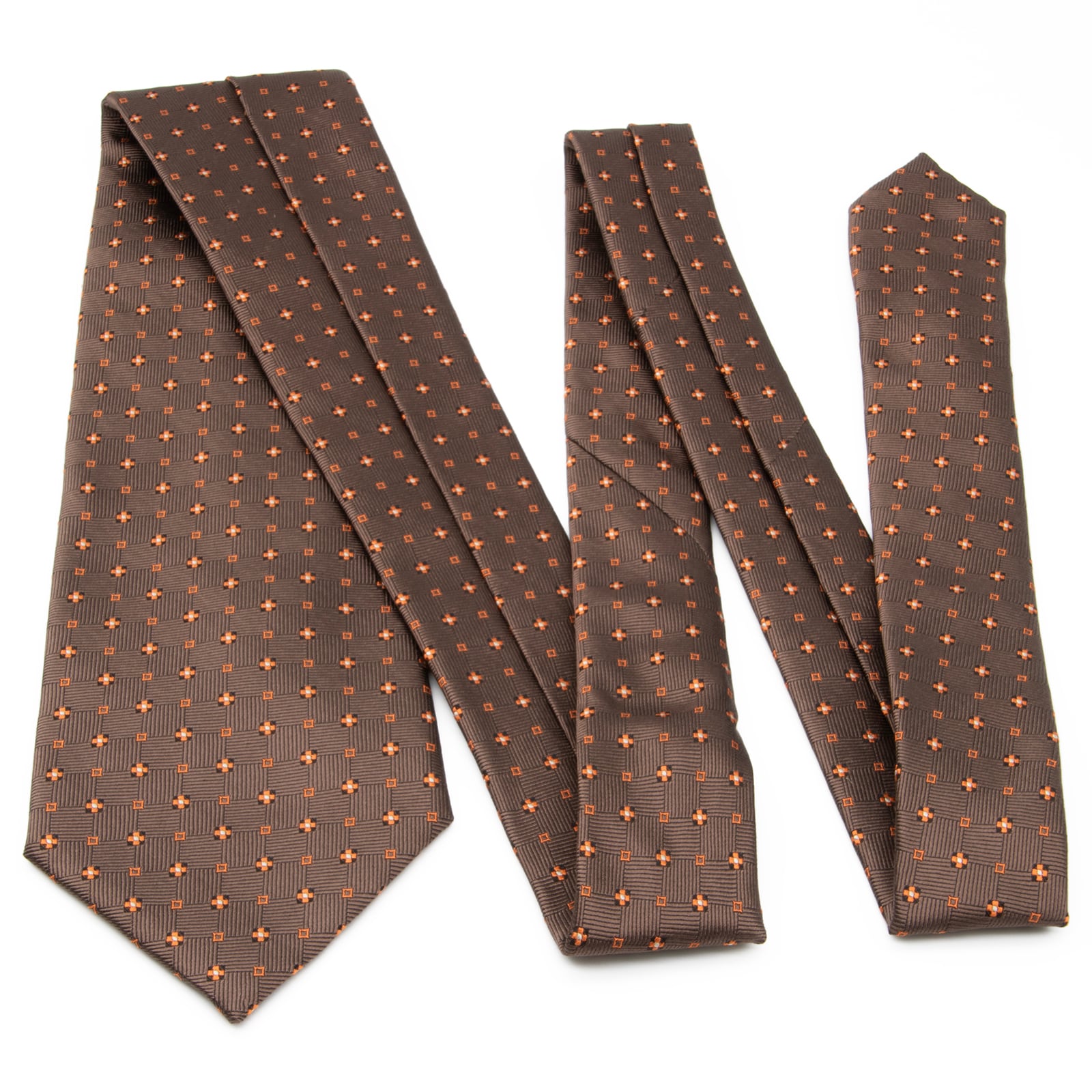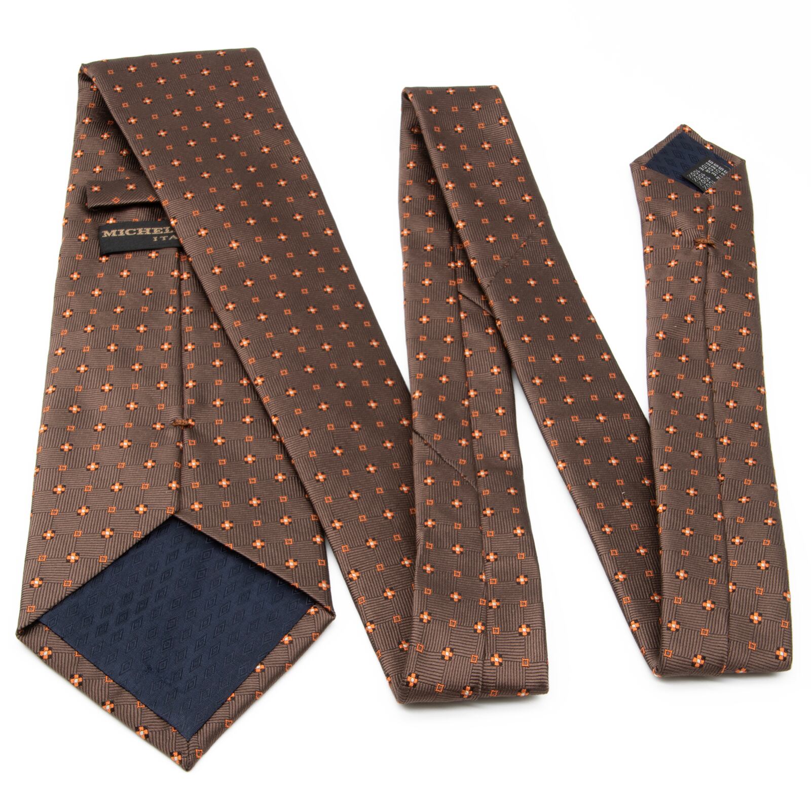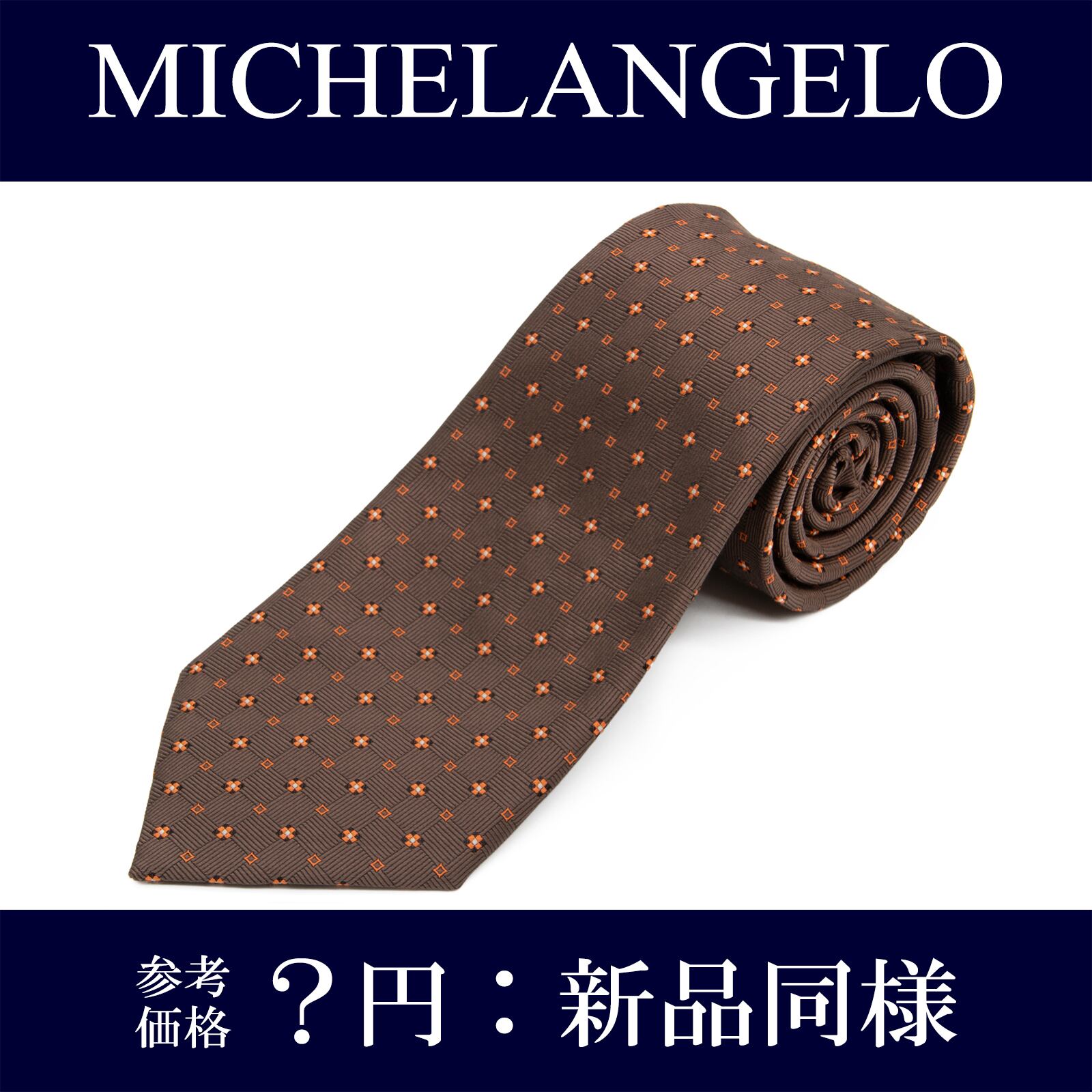 送料無料 ミケランジェロ ネクタイ レギュラータイ ジャガード 新品同様 シルク 茶色 オレンジ 白 四角 ドット 光沢 肉厚 ブランド P060
