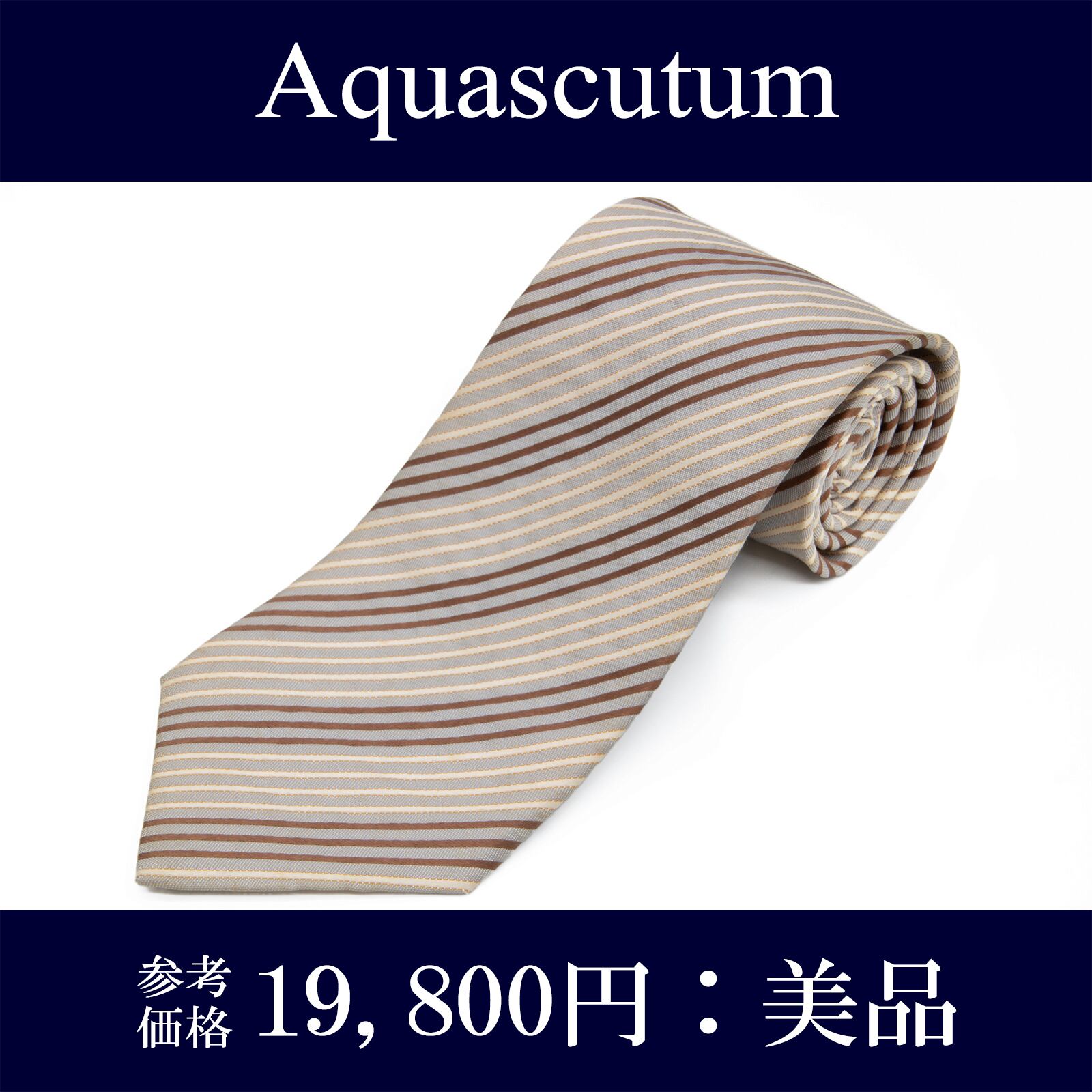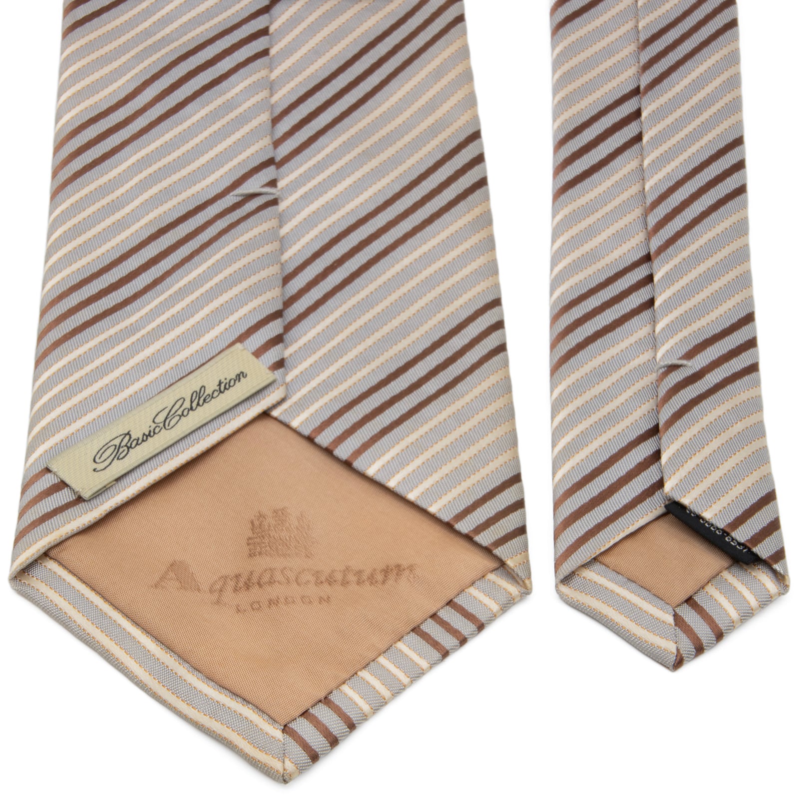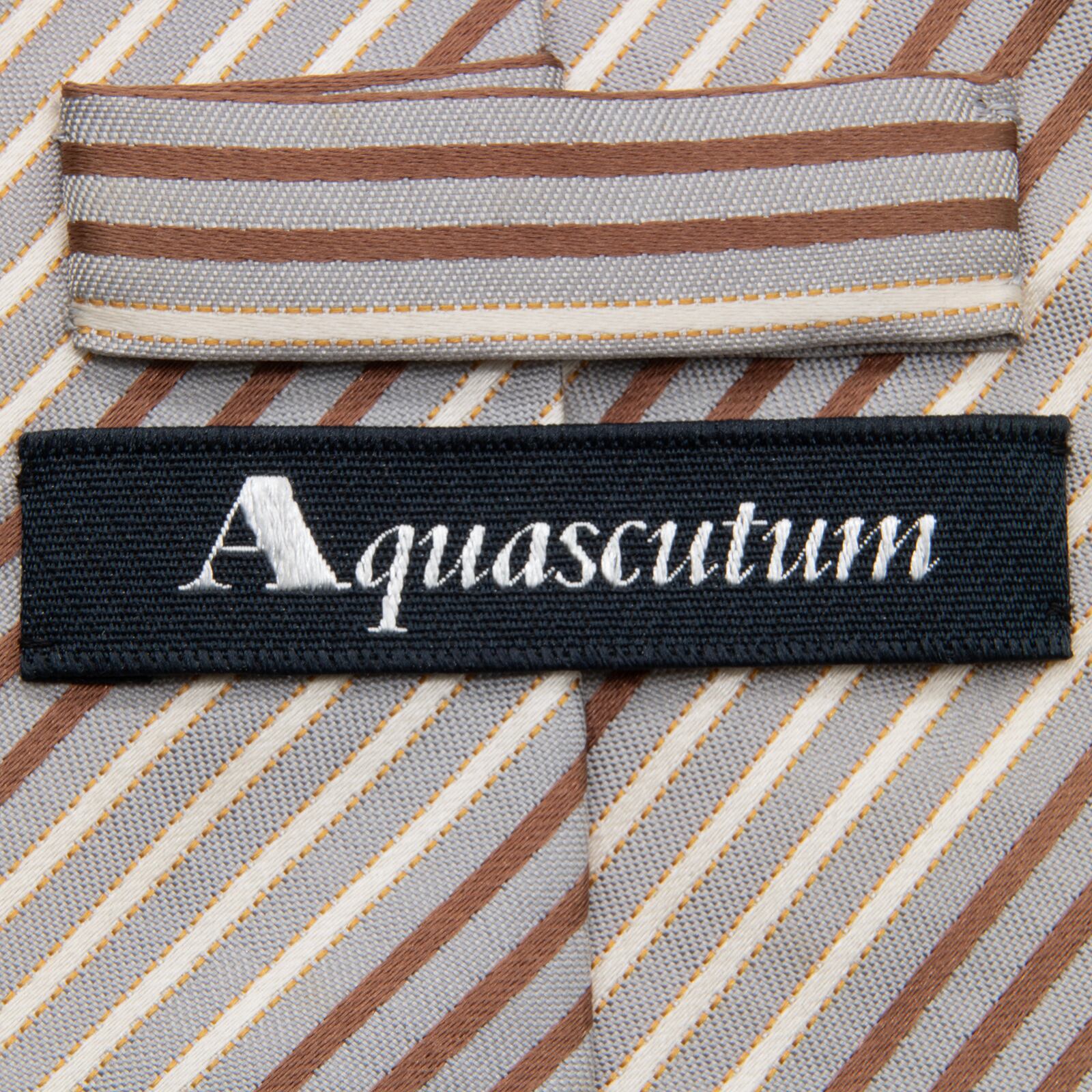 送料無料 アクアスキュータム ネクタイ レギュラータイ ジャガード シルク シャンパンゴールド 茶色 グレー ストライプ 光沢 ブランド P174