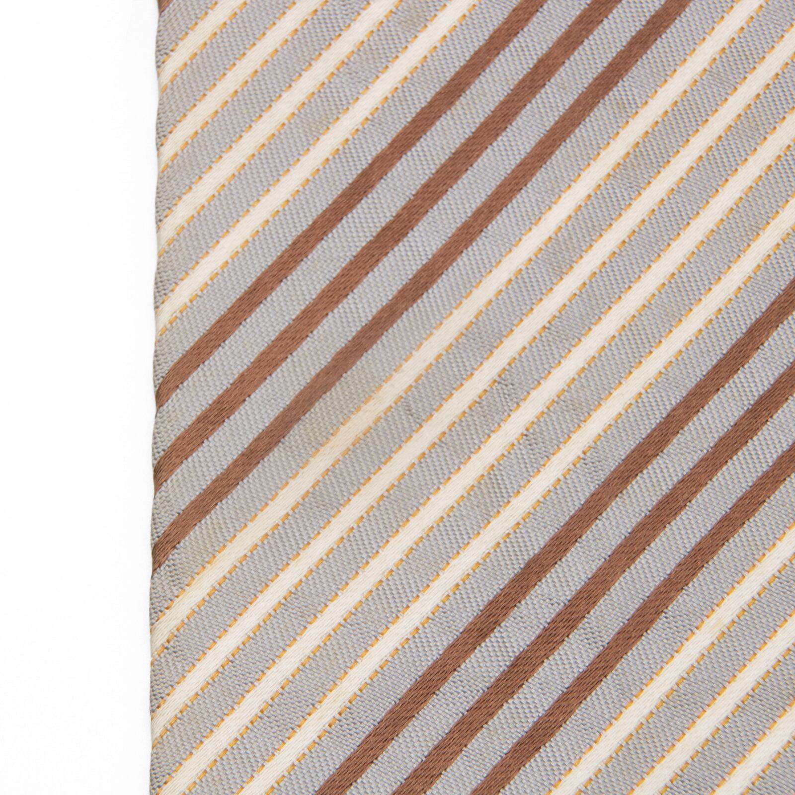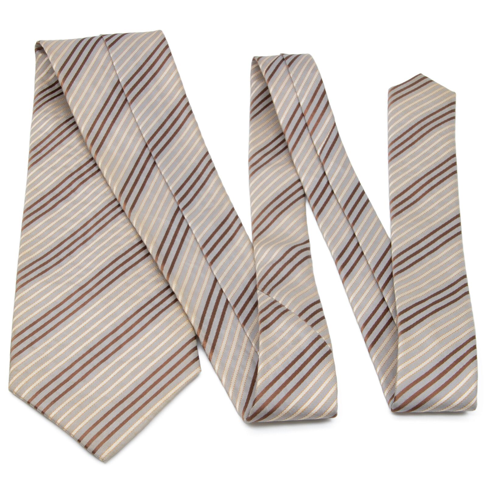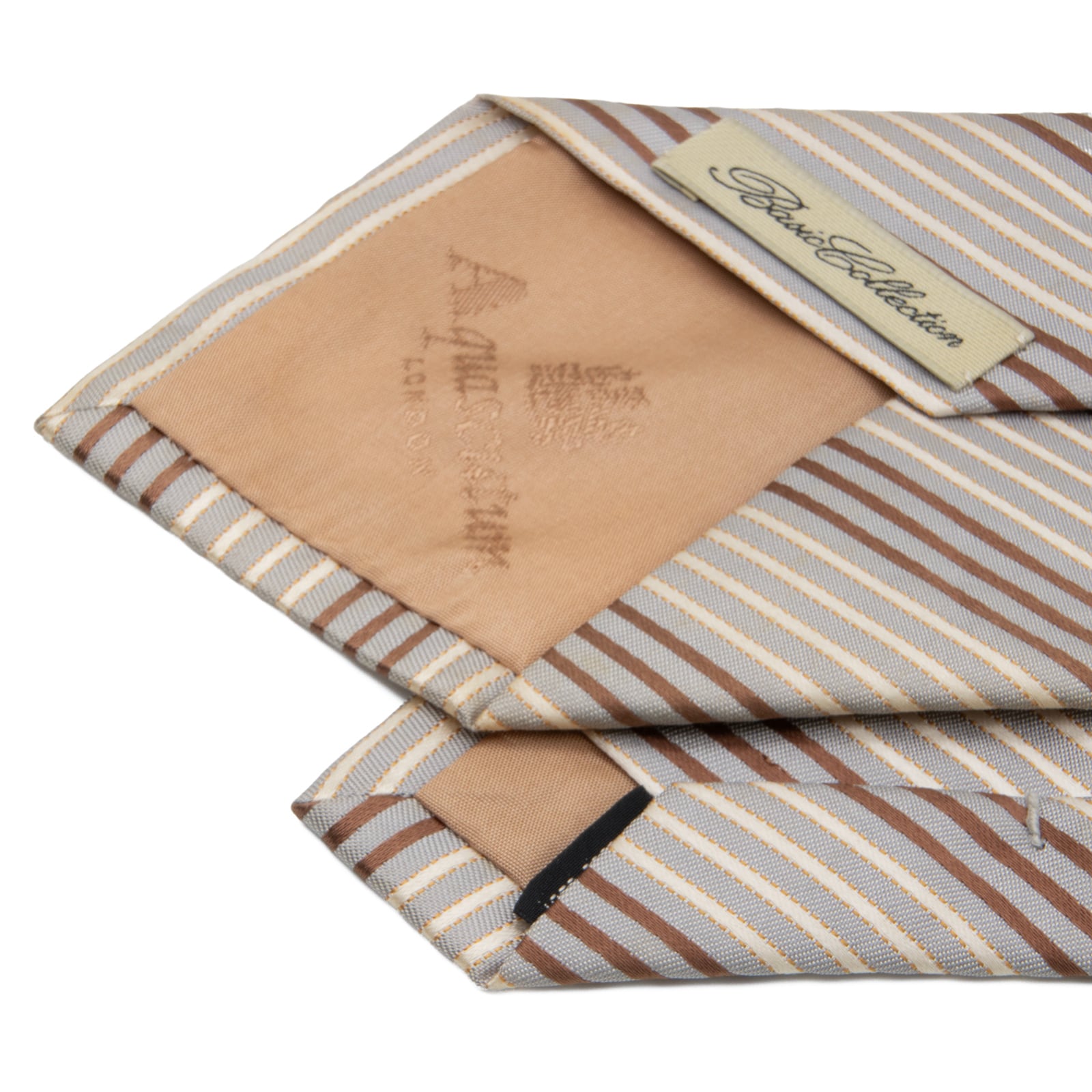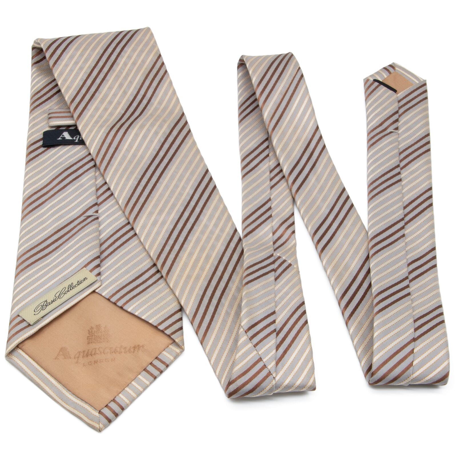 送料無料 アクアスキュータム ネクタイ レギュラータイ ジャガード シルク シャンパンゴールド 茶色 グレー ストライプ 光沢 ブランド P174
