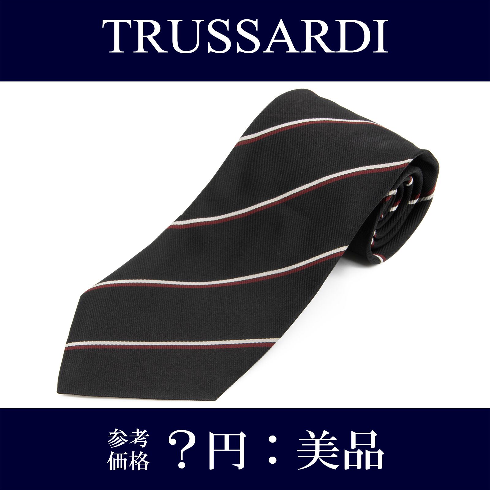 送料無料 トラサルディ ネクタイ ジャガード シルク 黒 白 赤 ビジネス フォーマル ストライプ シンプル ブランド イタリア製 綺麗 P185