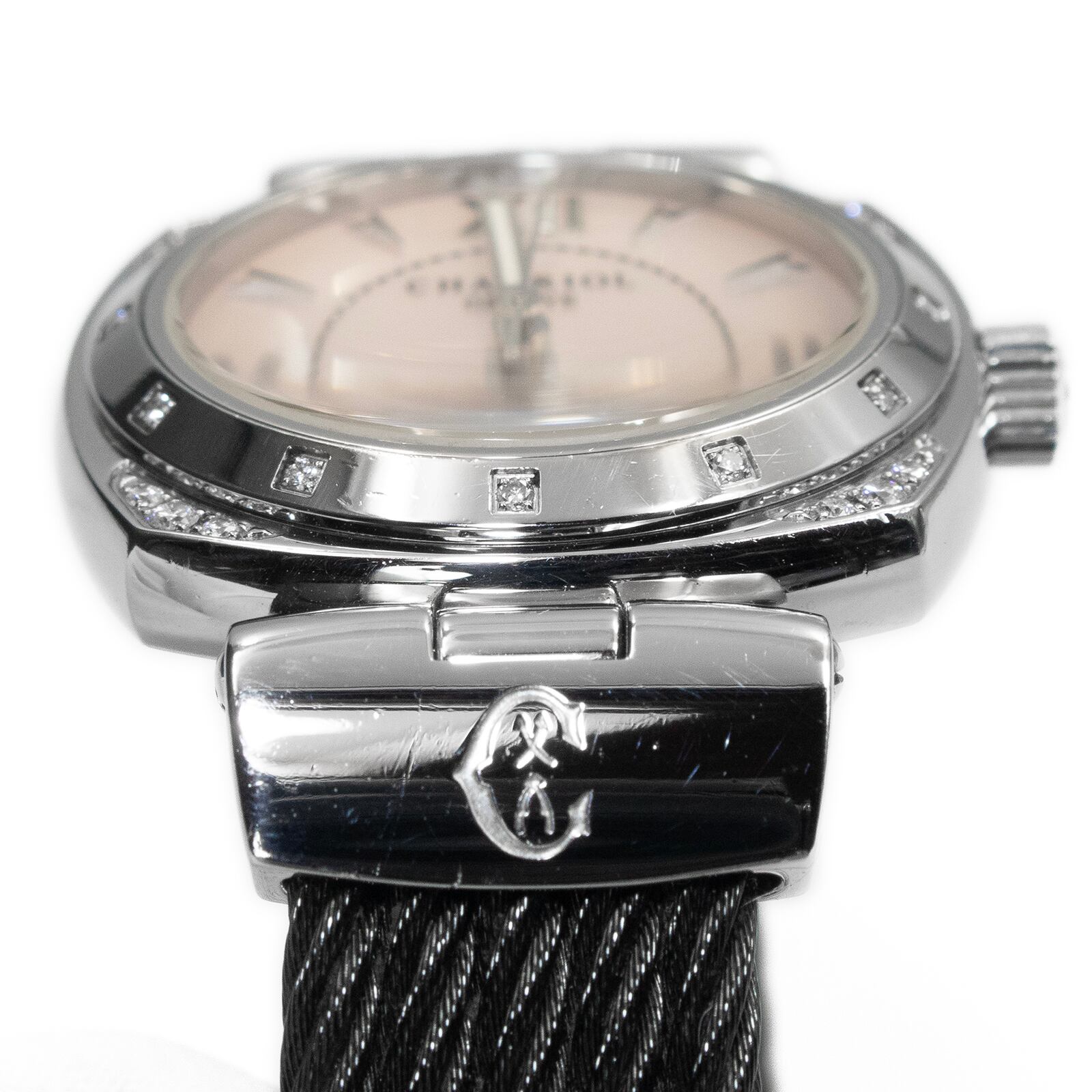 送料無料 シャリオール 腕時計 レディース アレキサンダー シェルピンク 黒 シルバー シェル盤 ダイヤモンド Cロゴ マーク ブランド X257