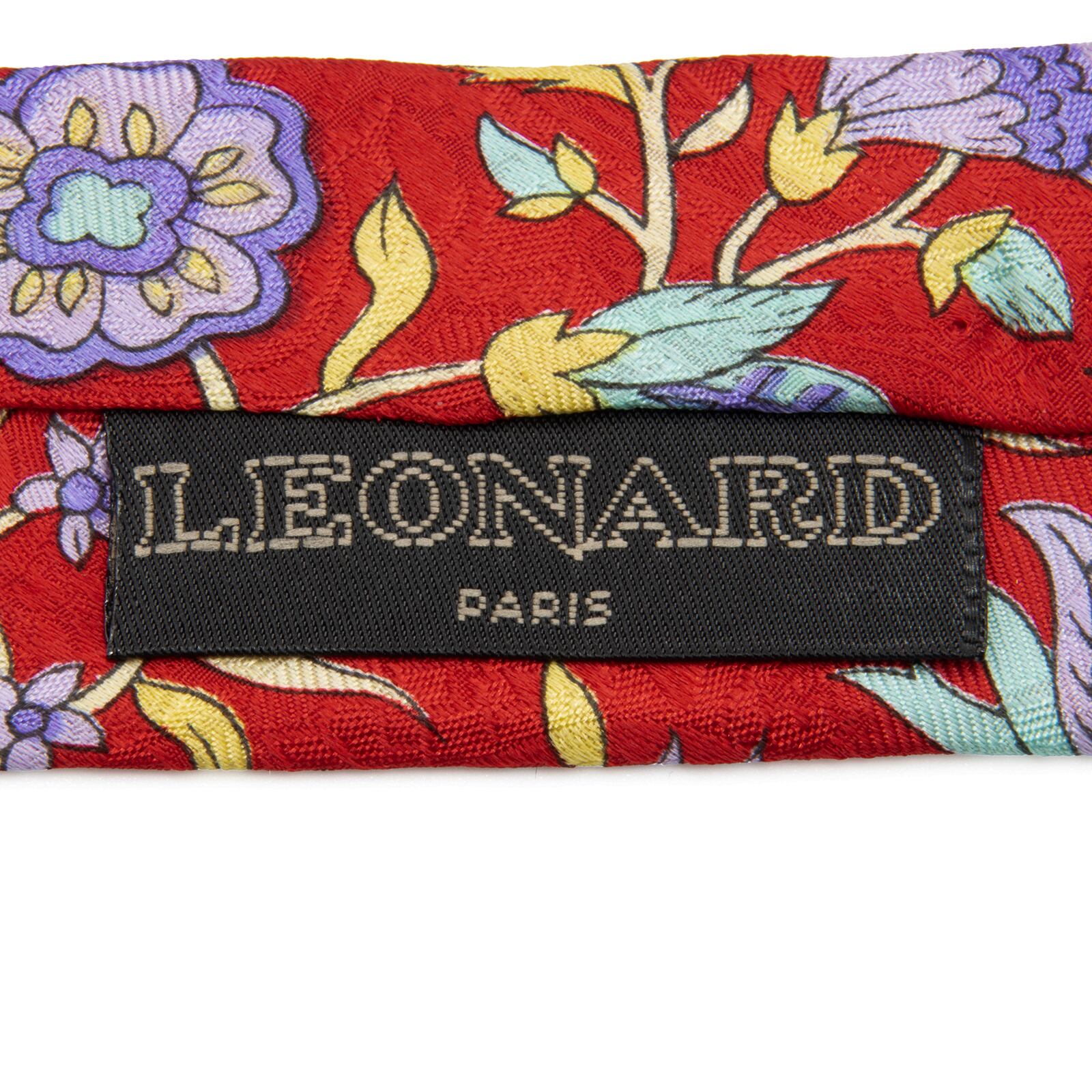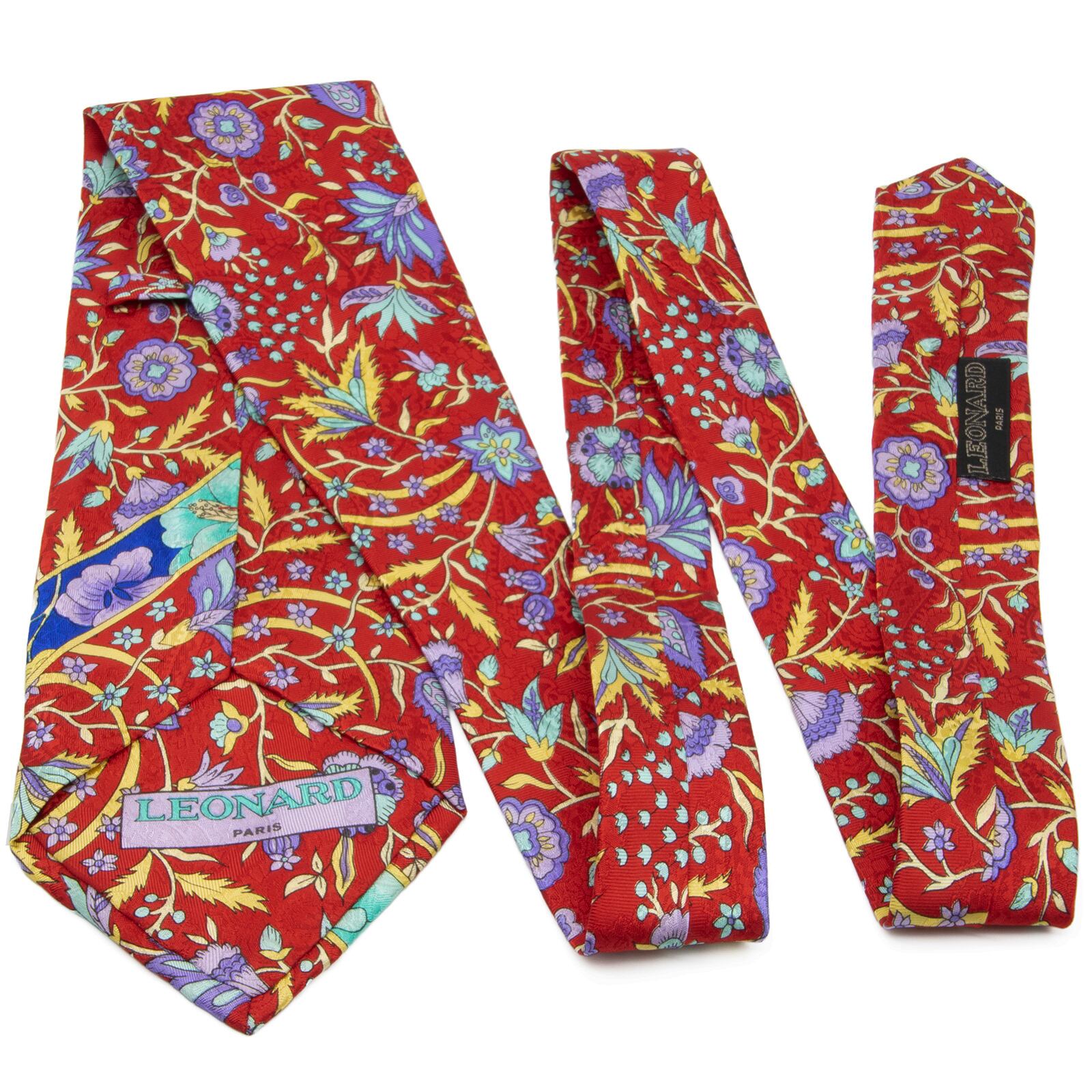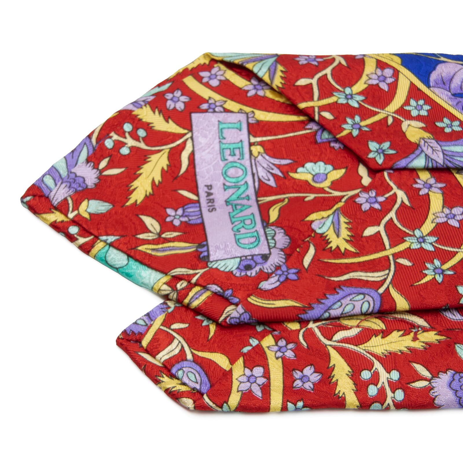 送料無料 レオナール ネクタイ レギュラータイ 新品 シルク 赤 黄色 紫 青緑 花 フラワー ペイズリー 光沢 ブランド イタリア製 綺麗 N736