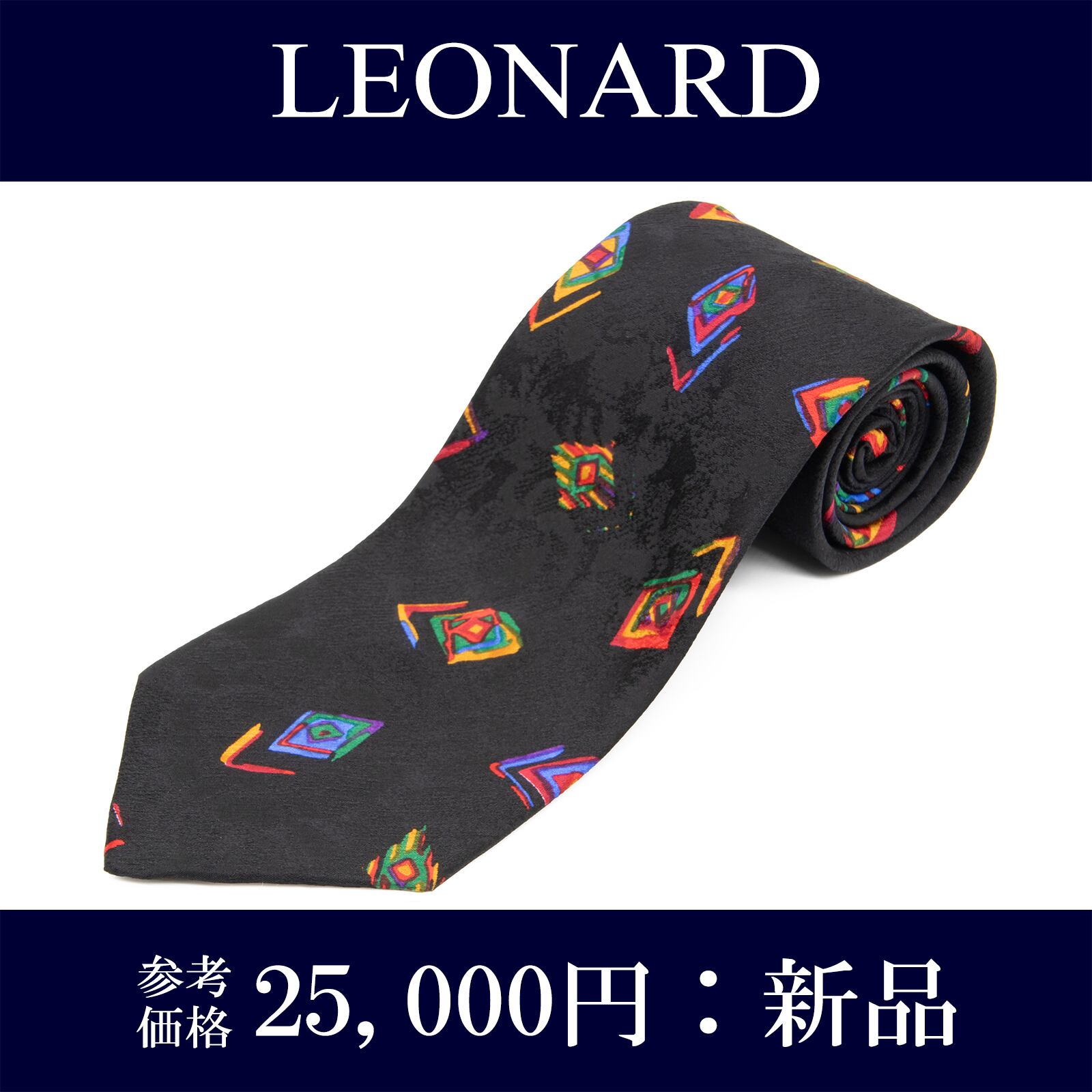 送料無料 レオナール ネクタイ レギュラータイ 新品 シルク 黒 赤 青 緑 オレンジ 紫 四角 ひし形 ダイヤ型 ブランド イタリア製 綺麗 N746