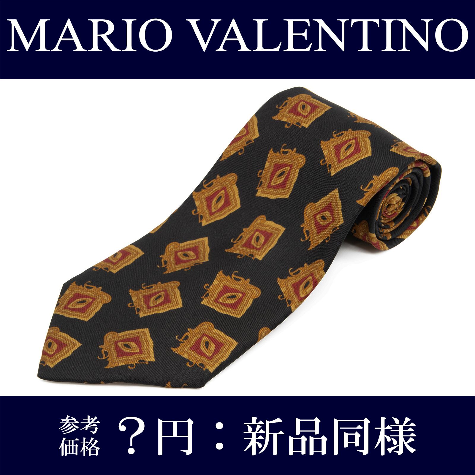 送料無料 マリオバレンチノ ネクタイ レギュラータイ 新品同様 シルク 黒 茶色 赤 ビジネス 四角 マーク ブランド イタリア製 綺麗 N833